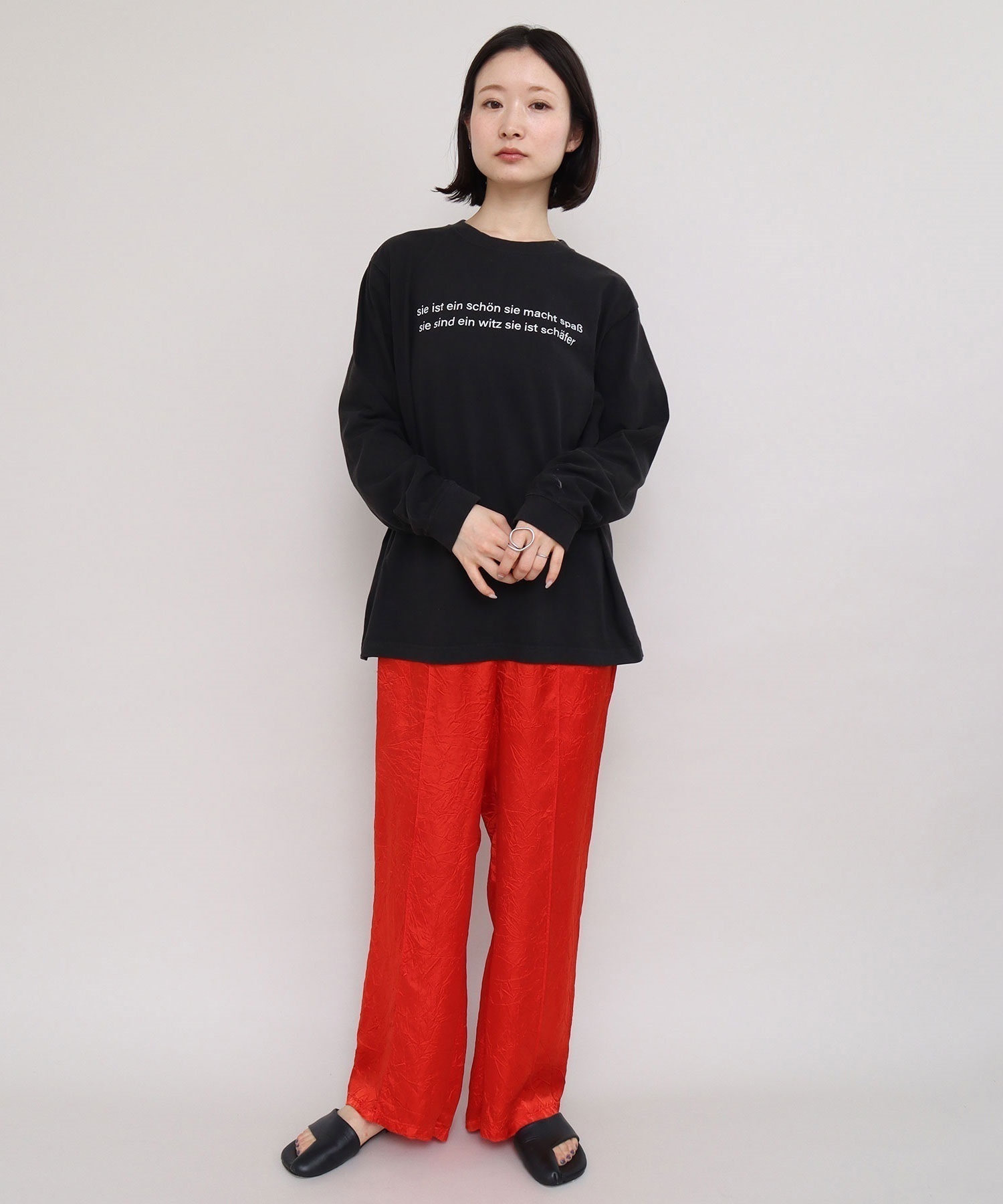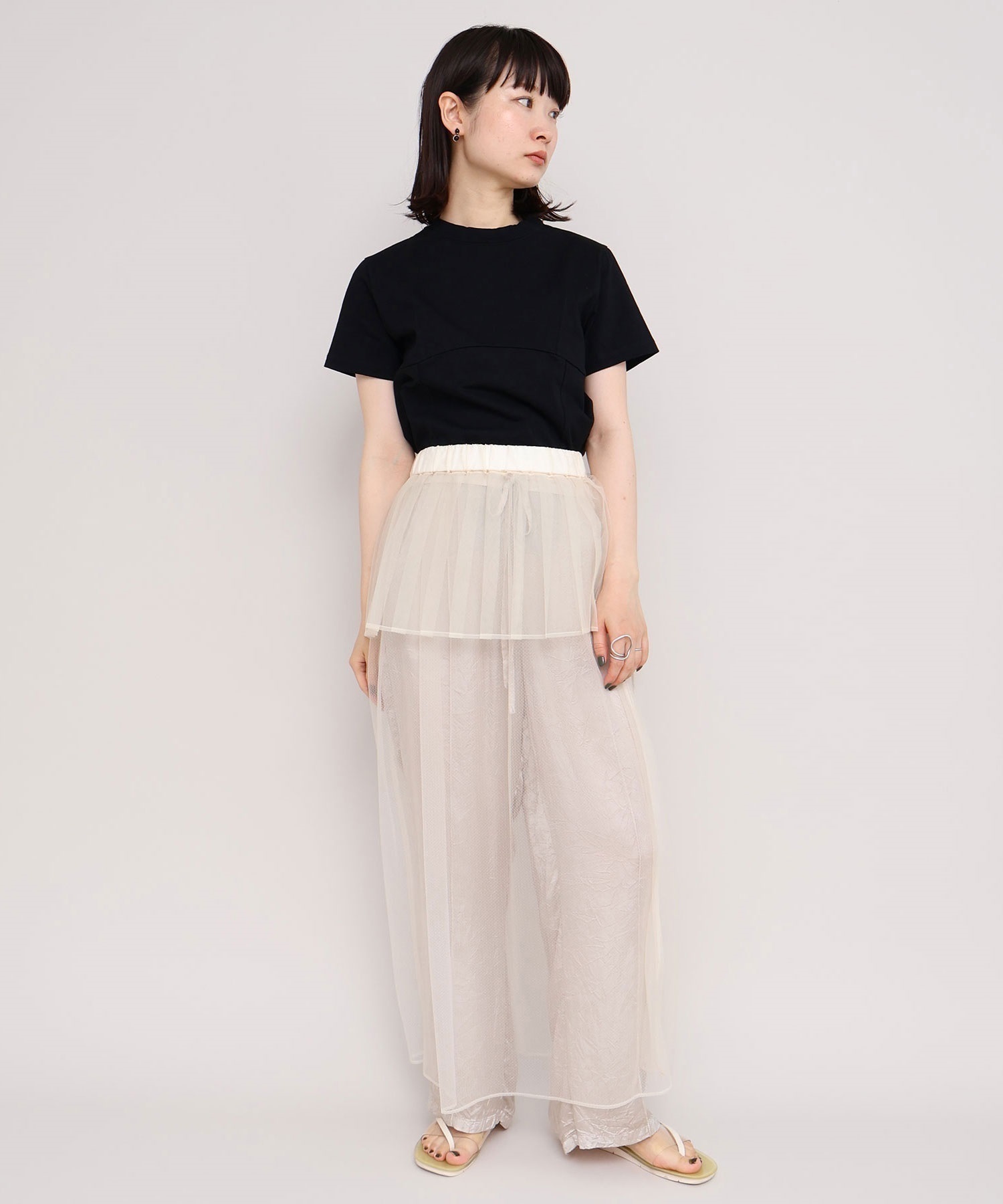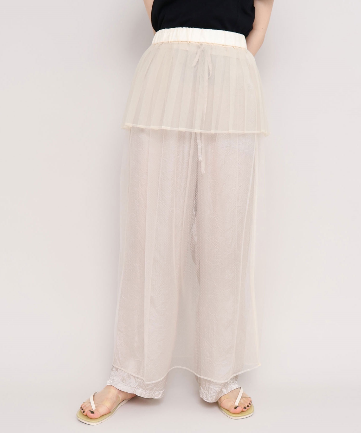 ペチパンツのような感じでワンピースやオーバーサイズのトップスと合わせたレイヤードスタイルにはもちろんのこと、 ワイドパンツとしても様々なコーディネートに合わせやすいパンツです。