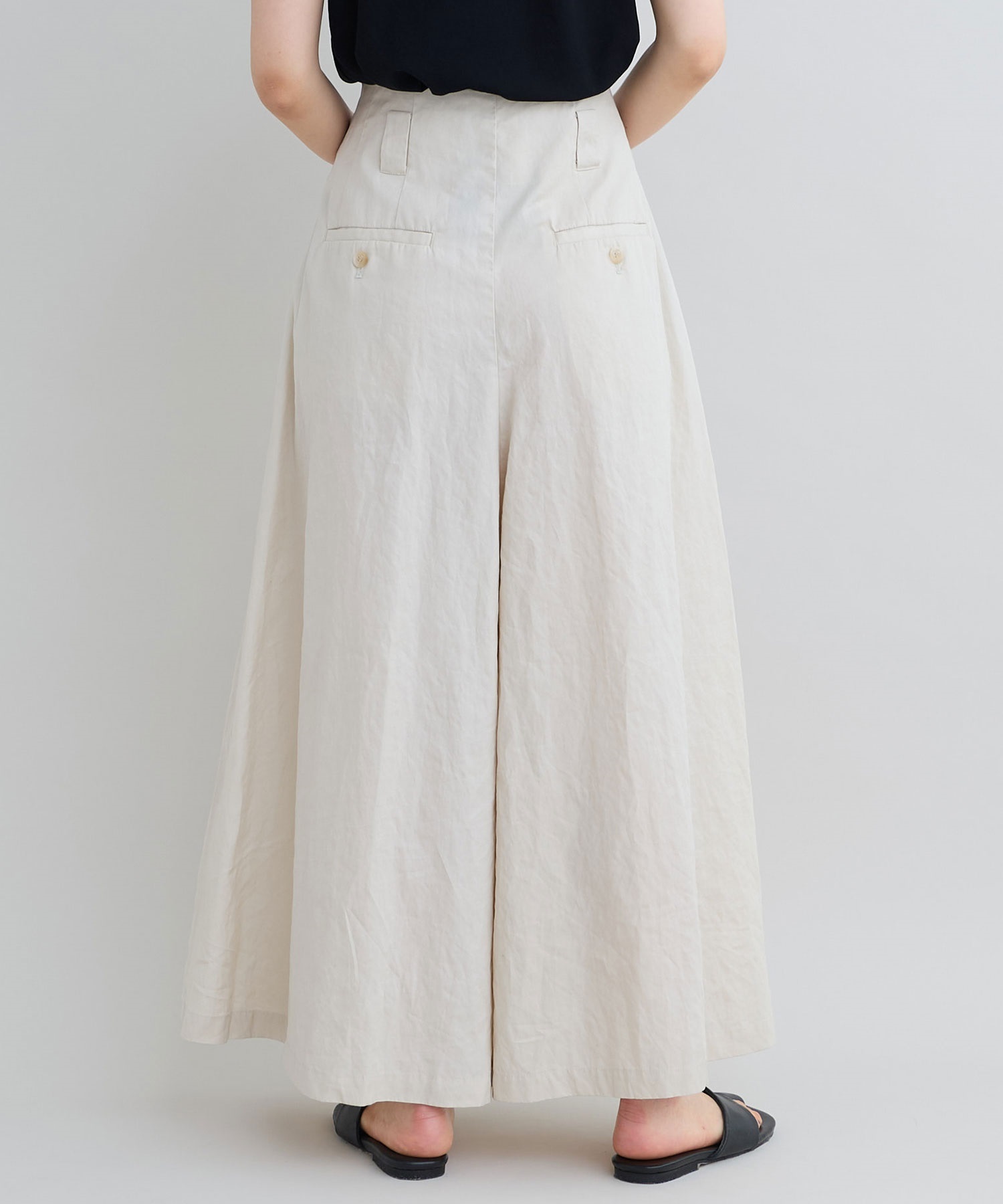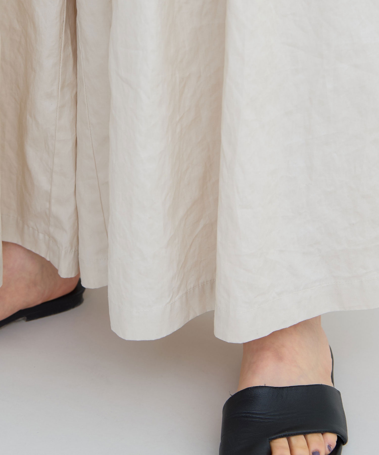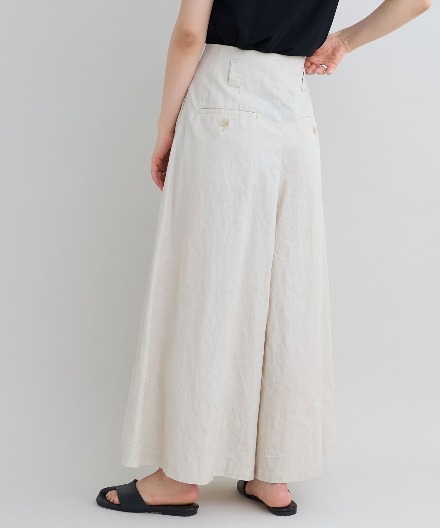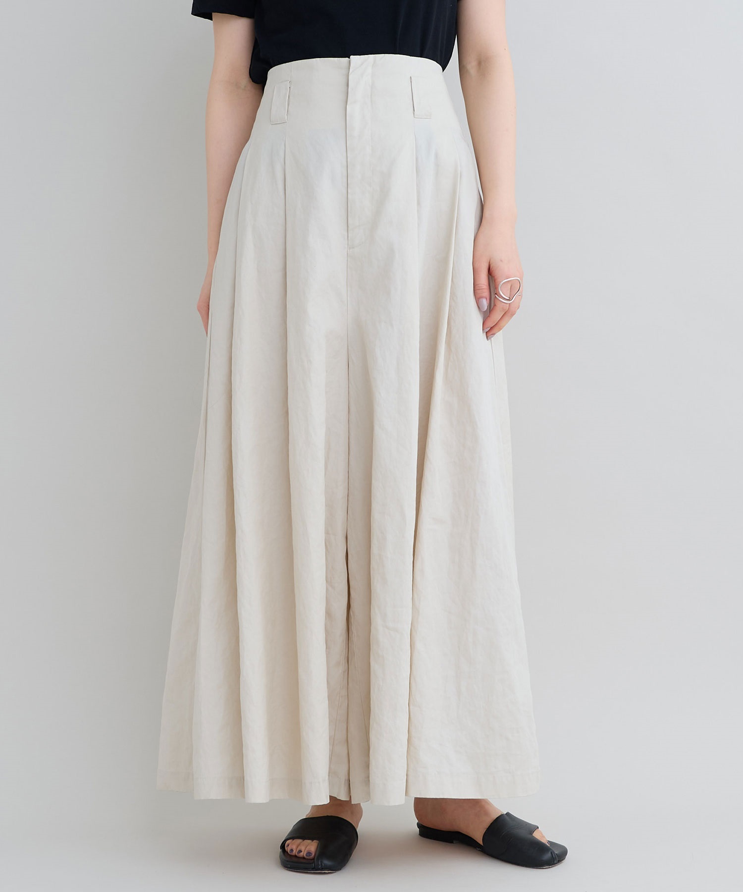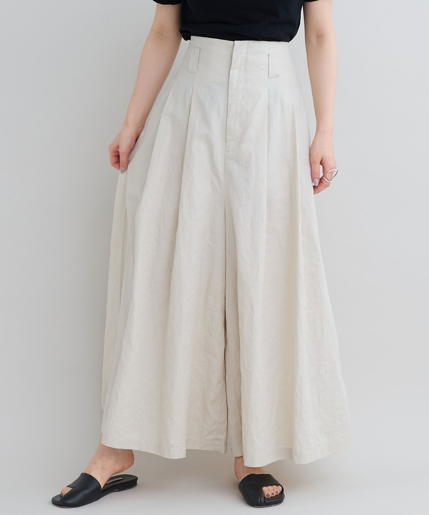 スカートのように見えするほどたっぷりのボリュームを入れつつ、ウエスト周りはハイウエストでスタイルアップするシルエットに。