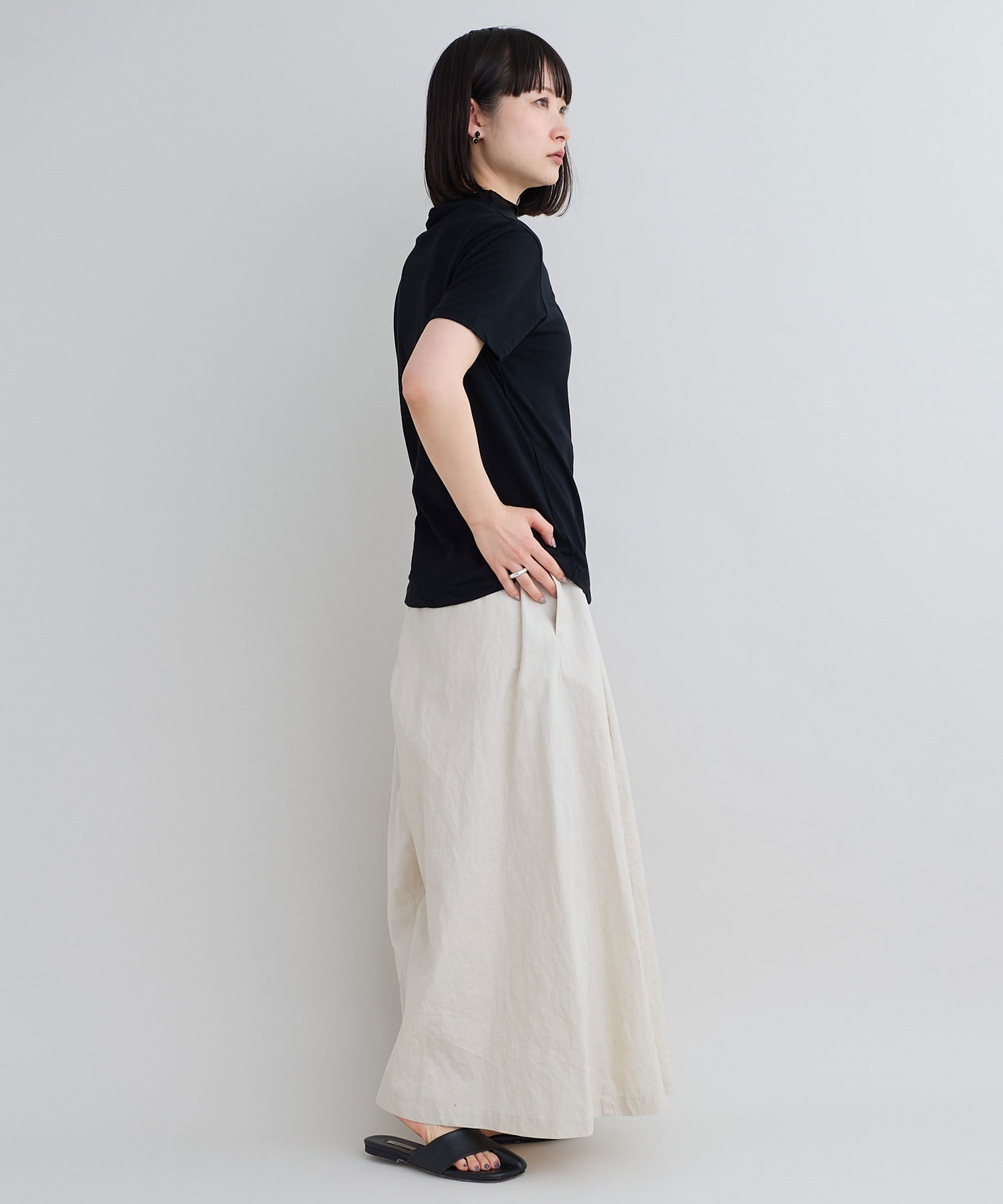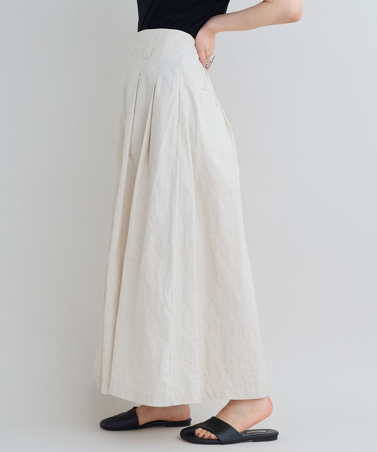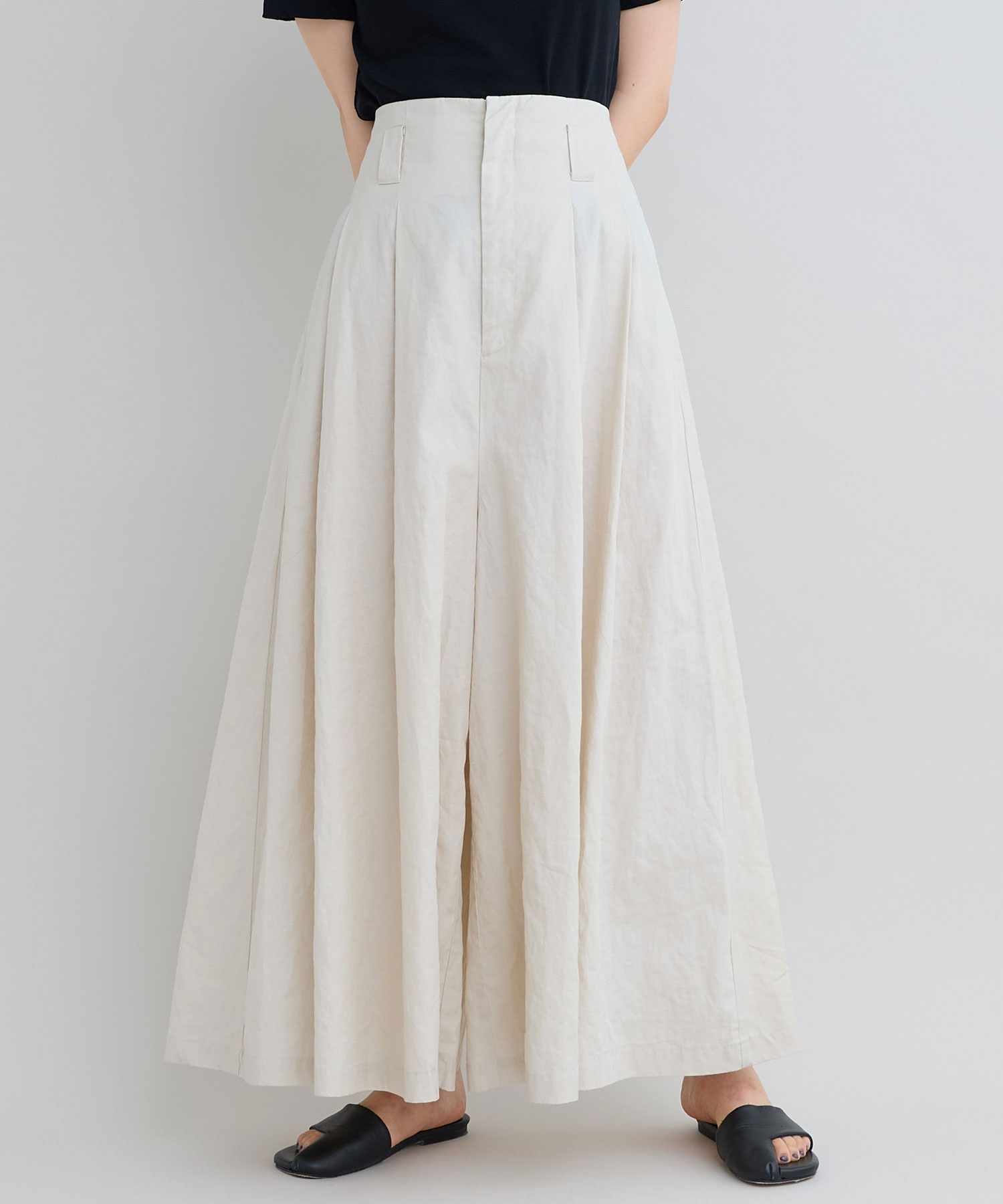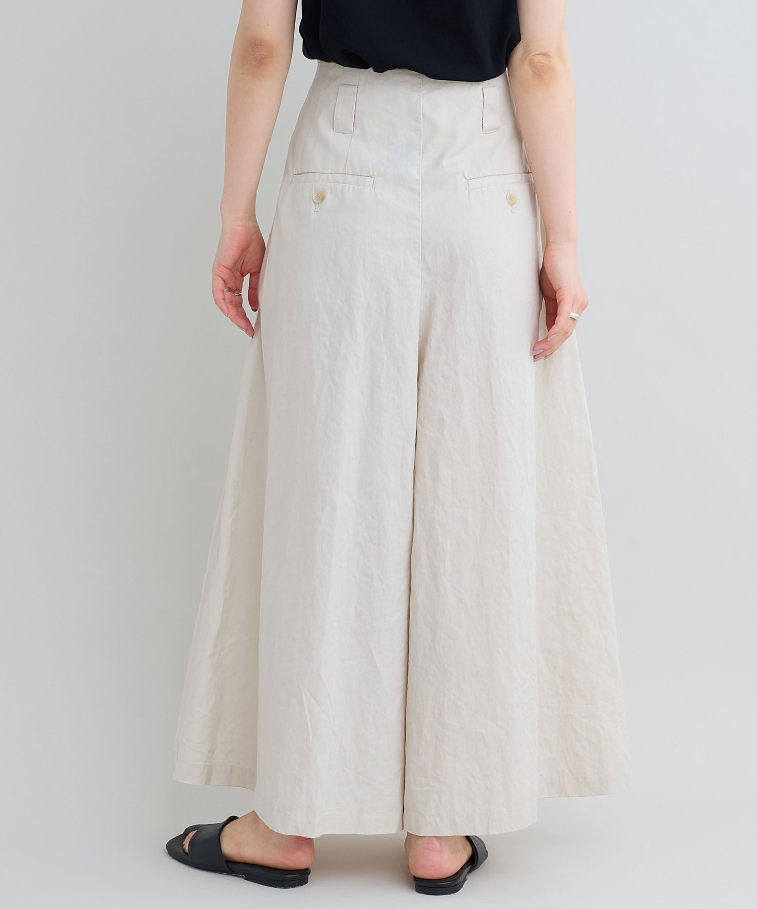 スカートのように見えするほどたっぷりのボリュームを入れつつ、ウエスト周りはハイウエストでスタイルアップするシルエットに。