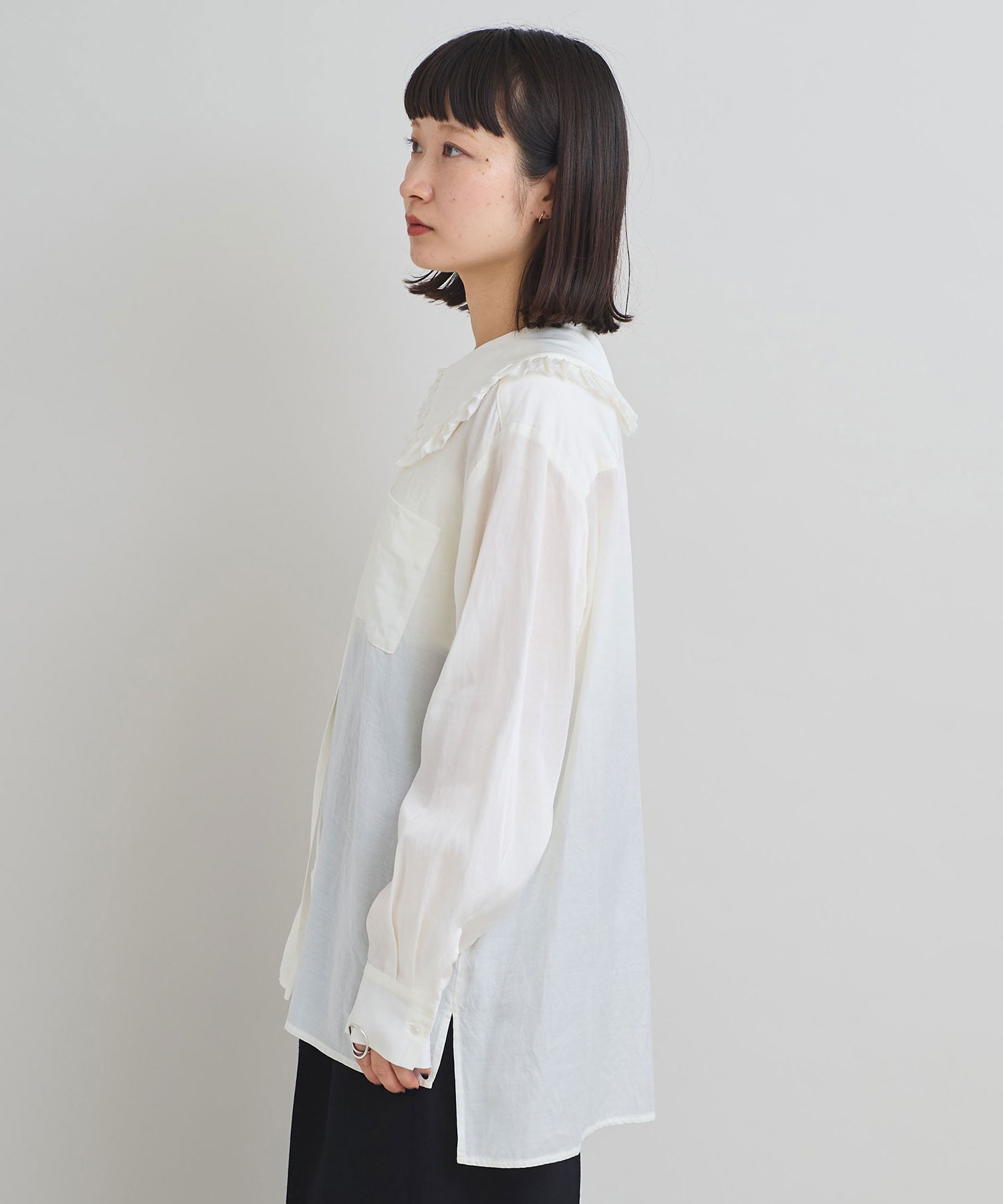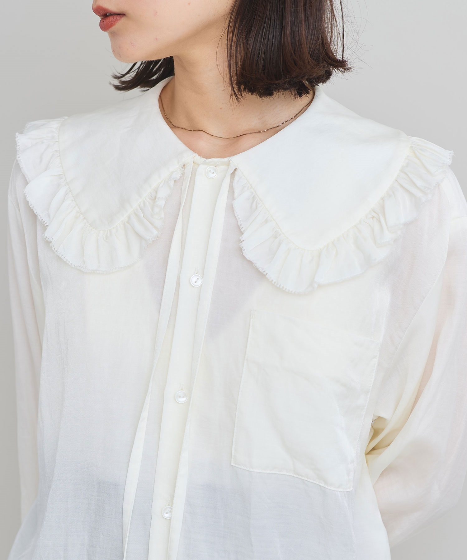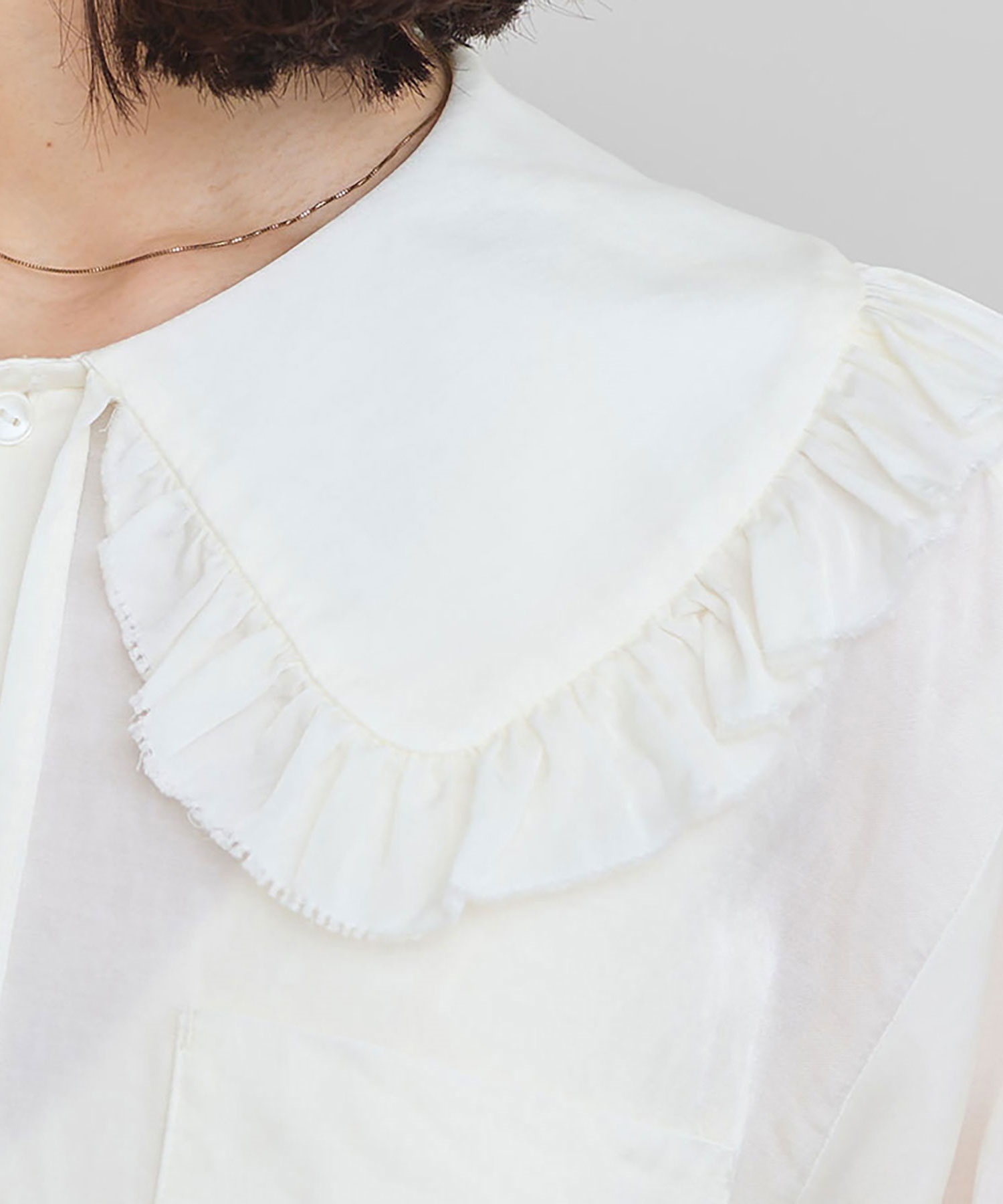 キュプラコットンサテントリプルワッシャー フリルカラーブラウス