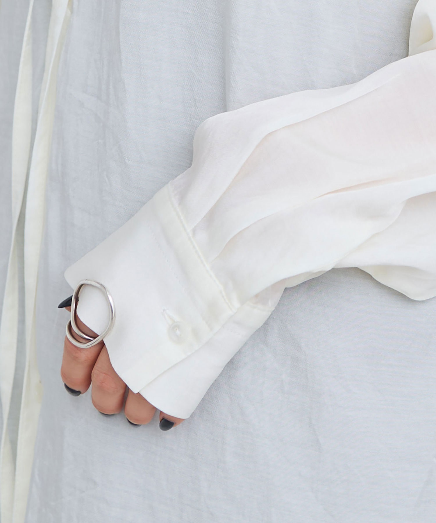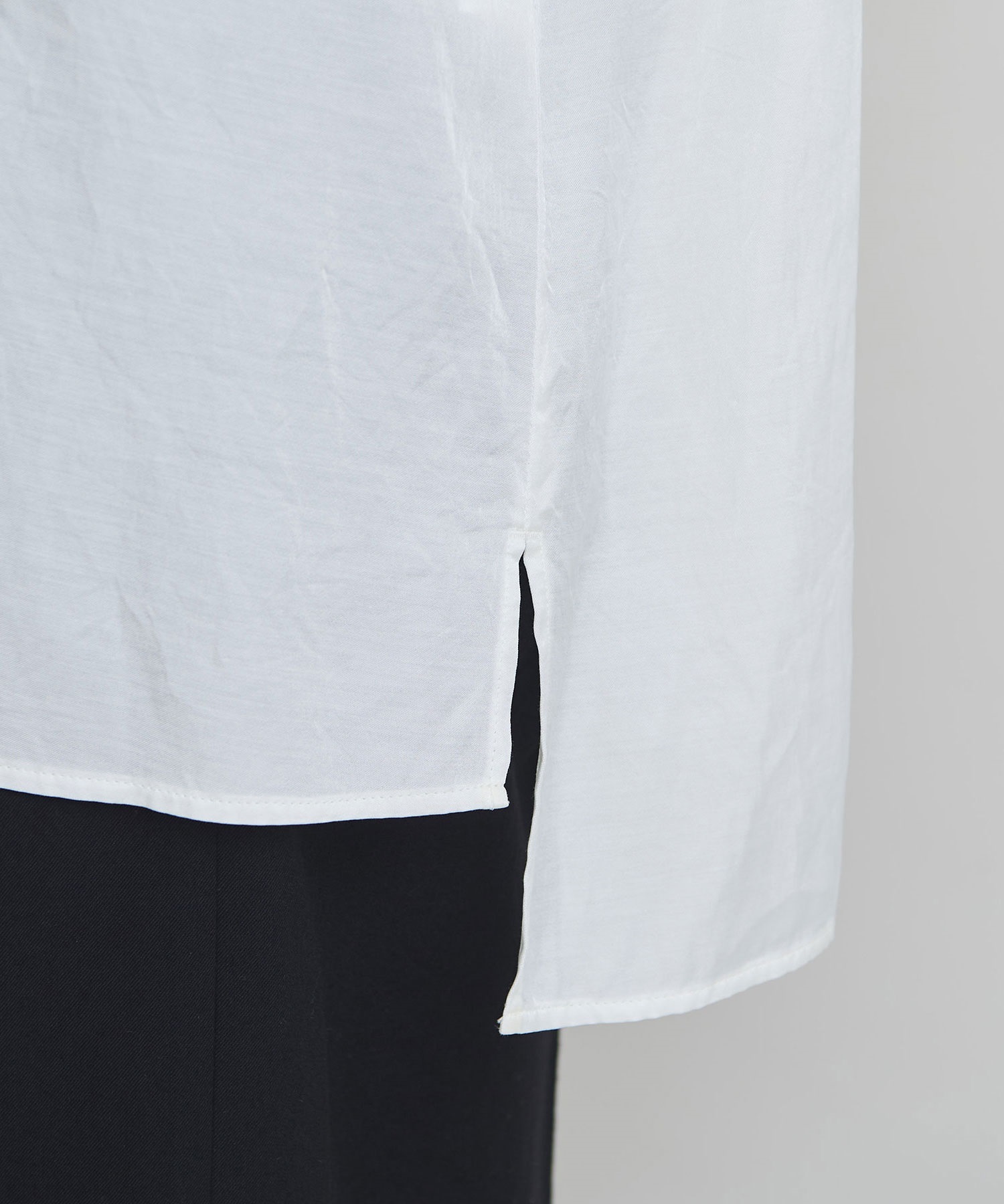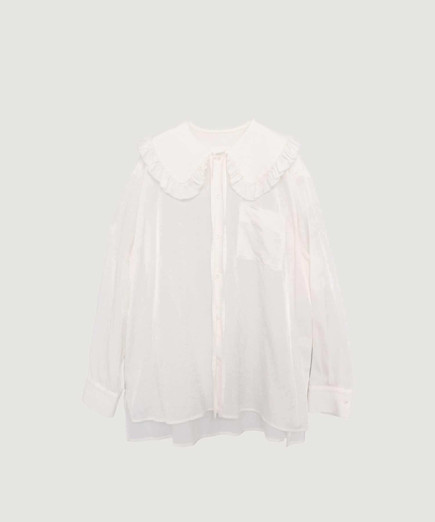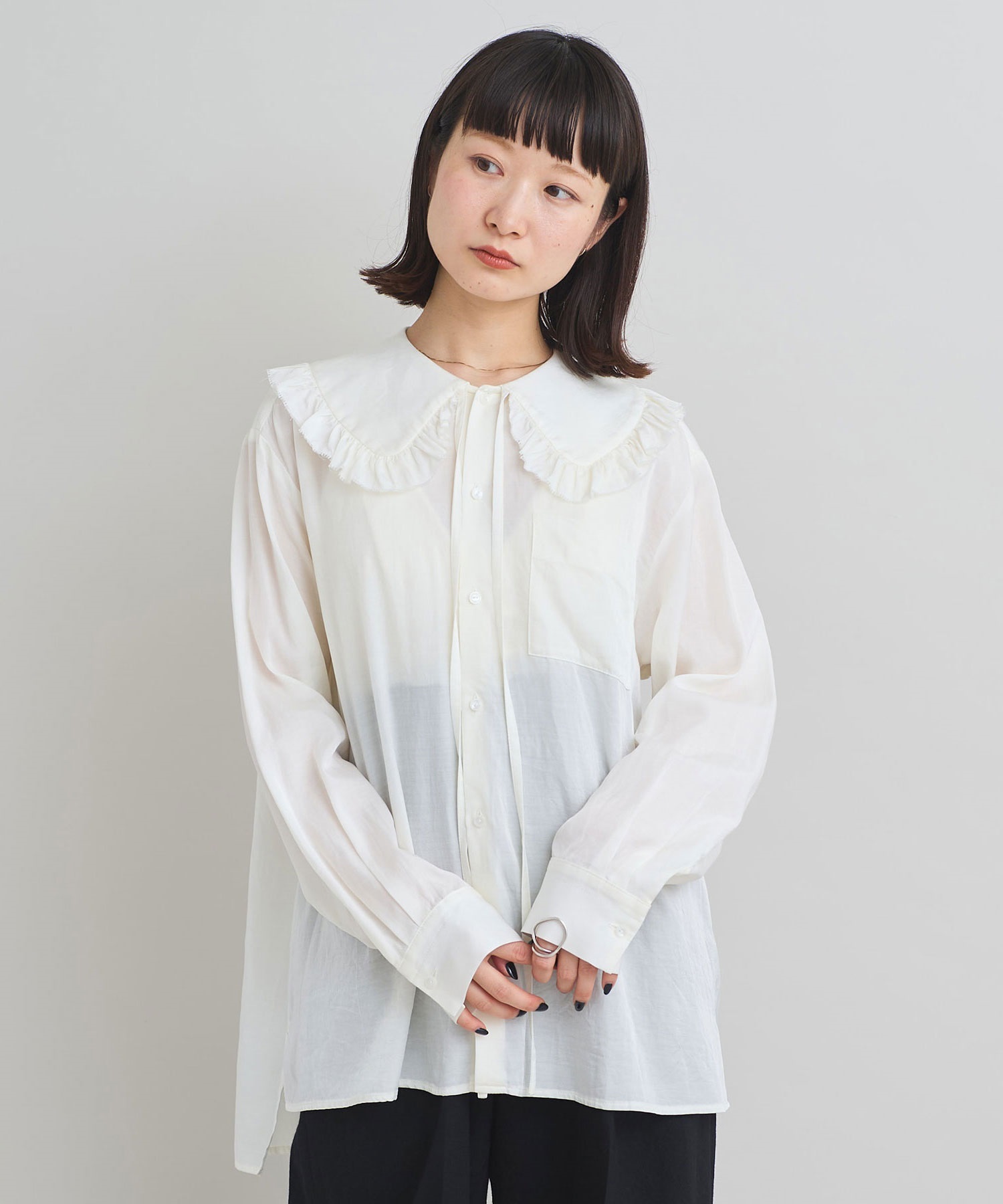キュプラコットンサテントリプルワッシャー フリルカラーブラウス