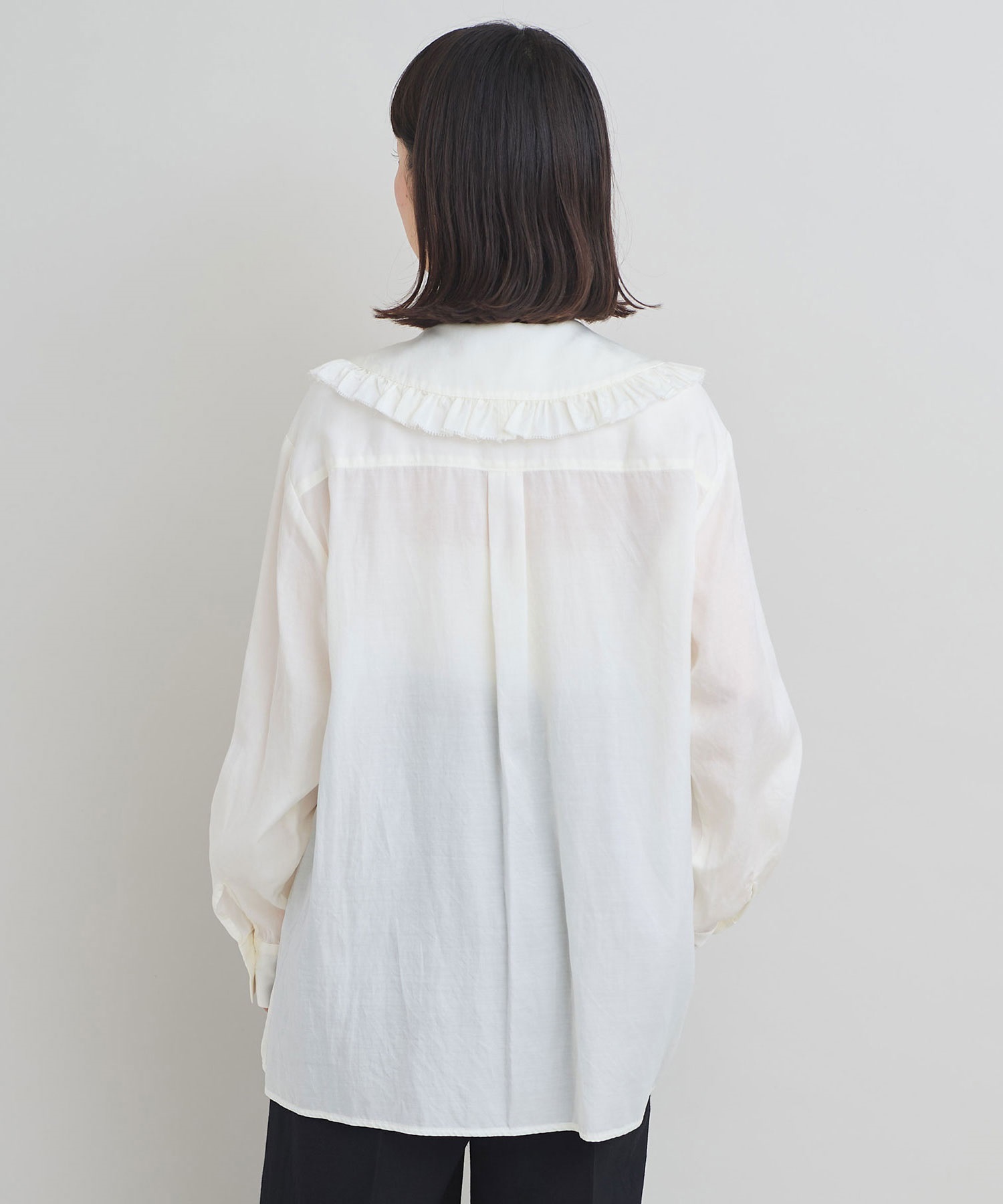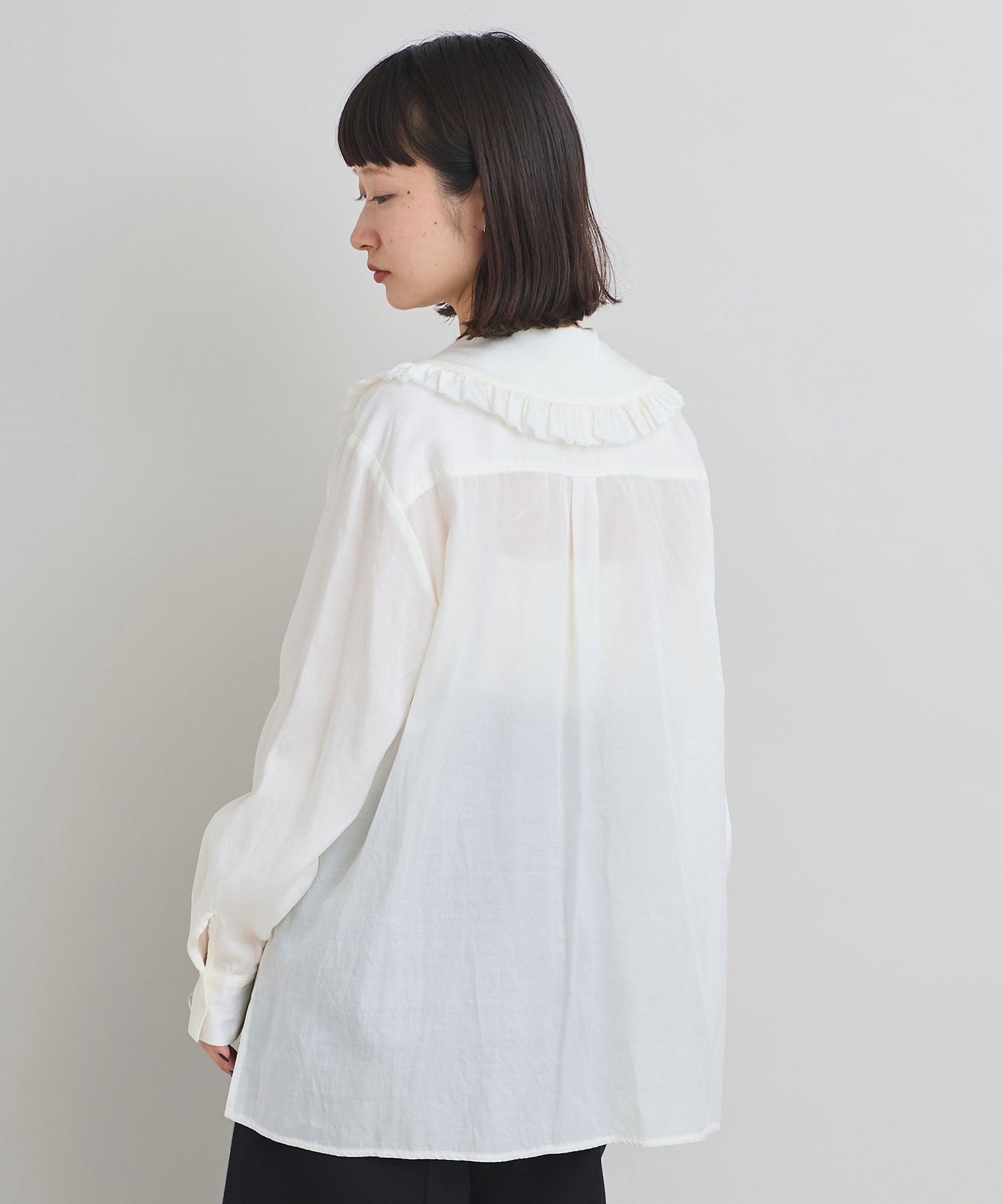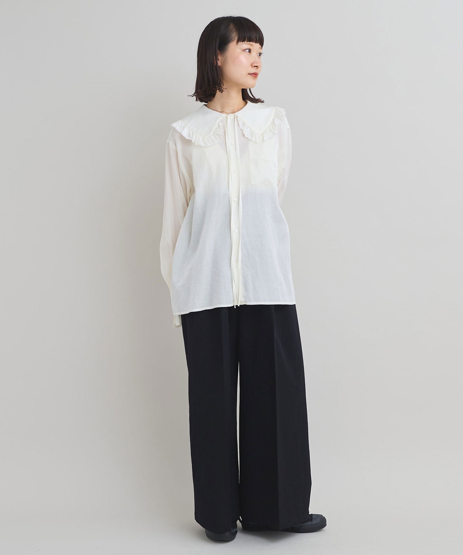 昨年のAWから毎シーズン展開しているフリルカラーブラウス。