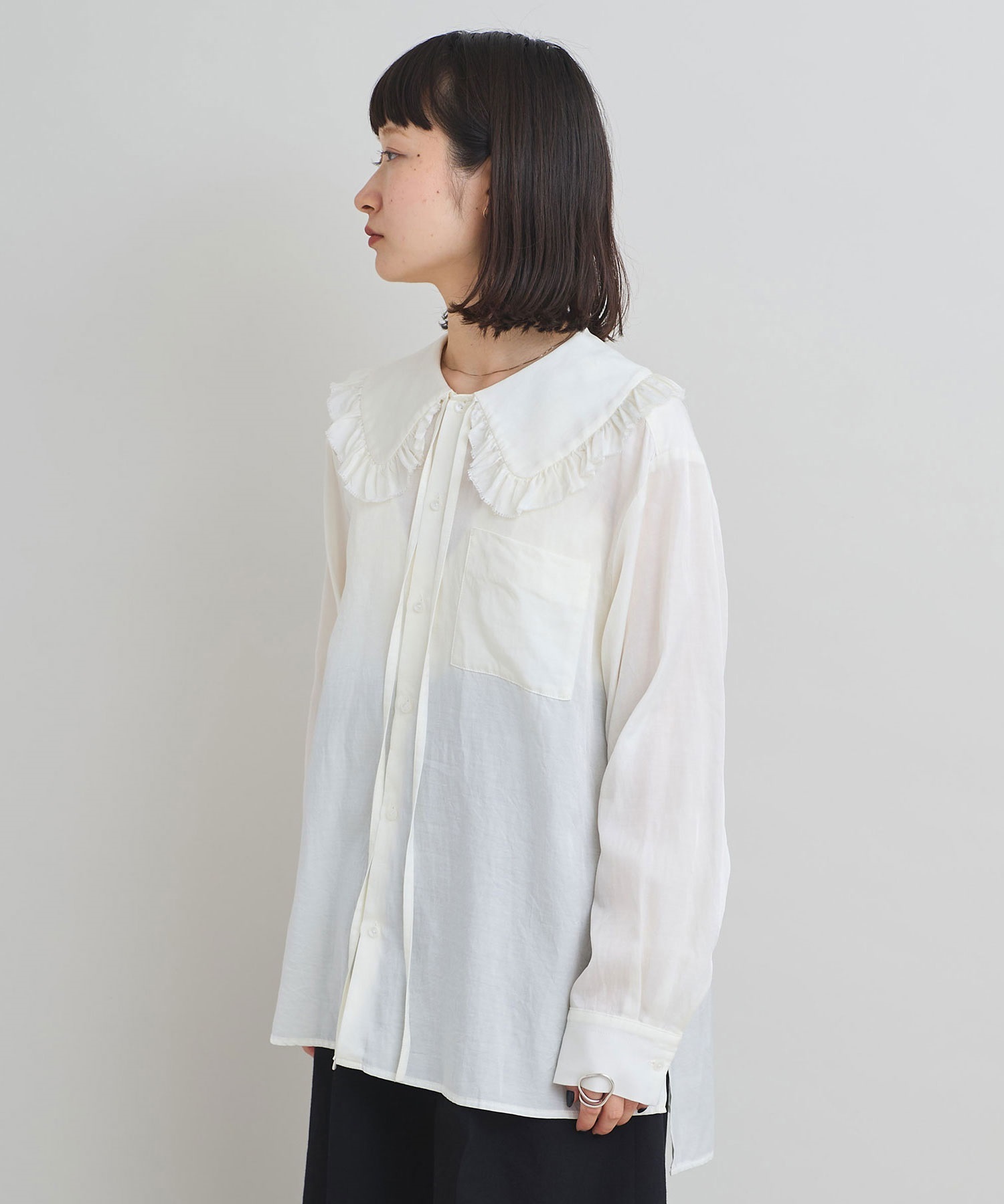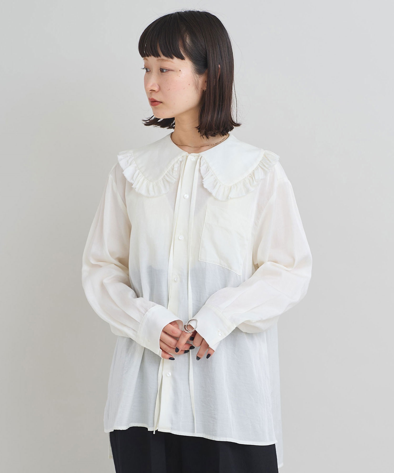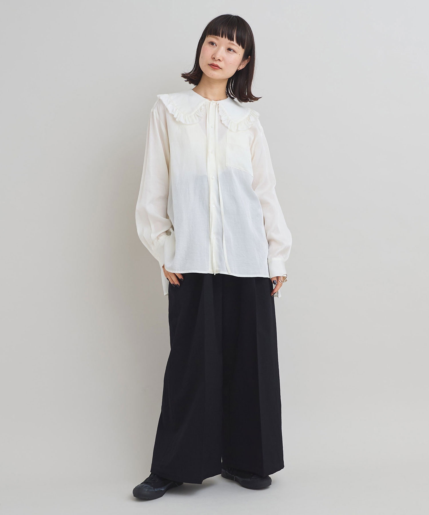 昨年のAWから毎シーズン展開しているフリルカラーブラウス。