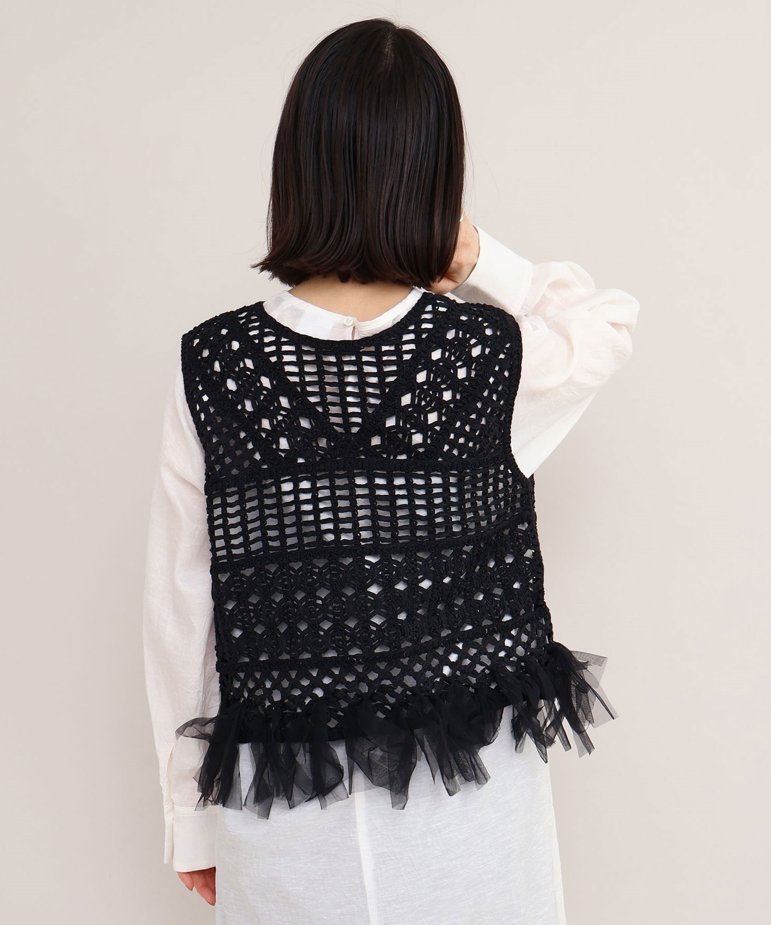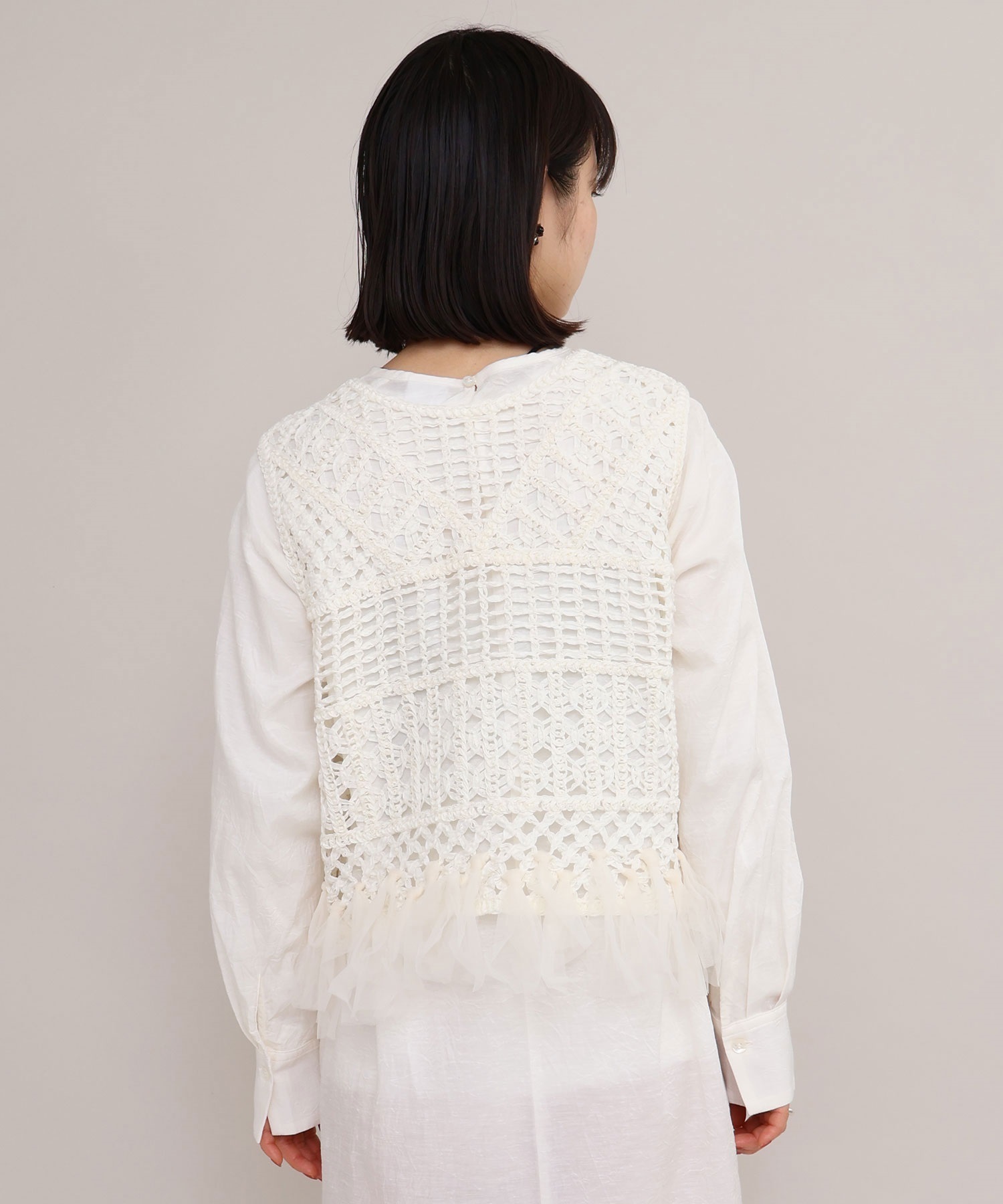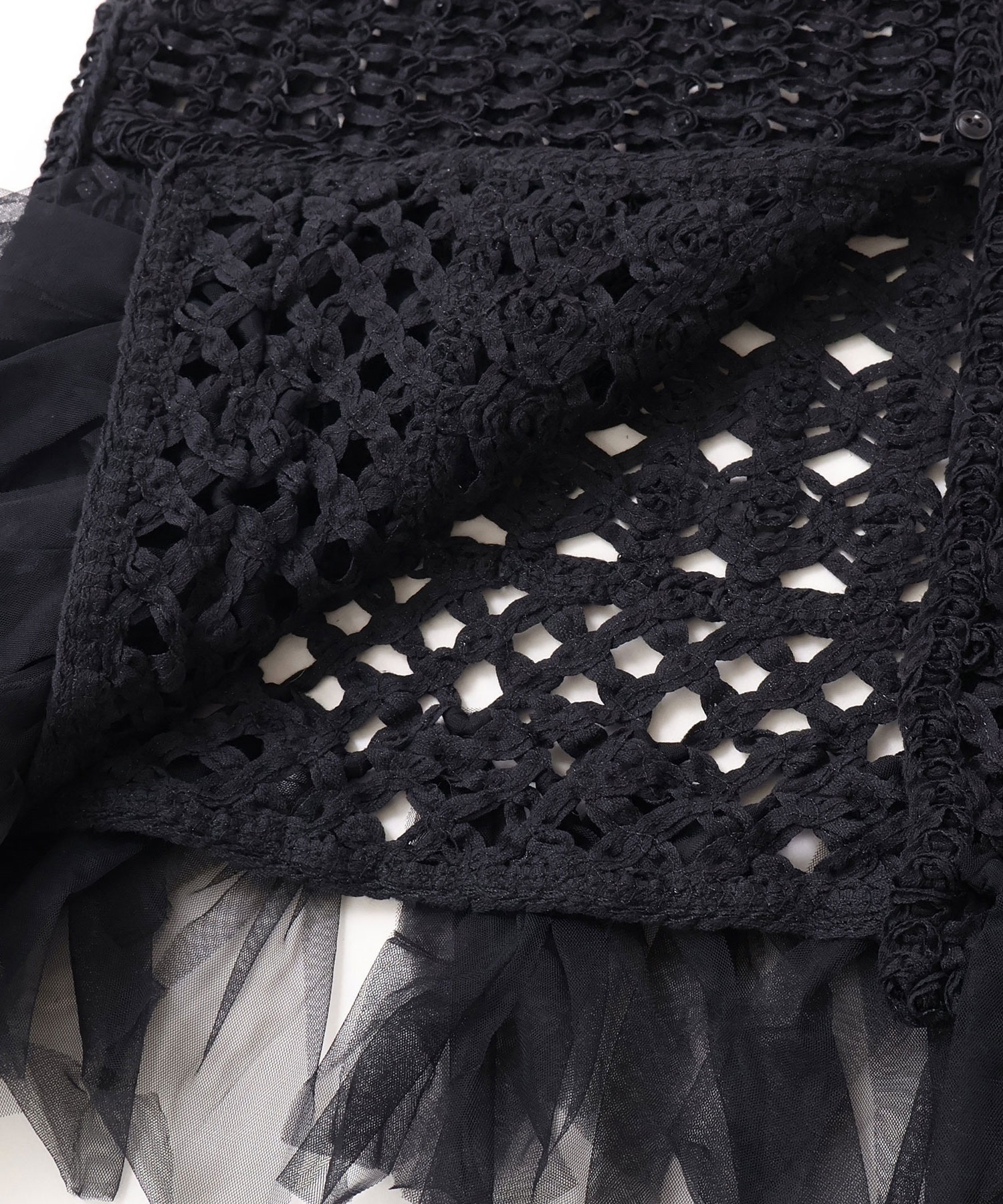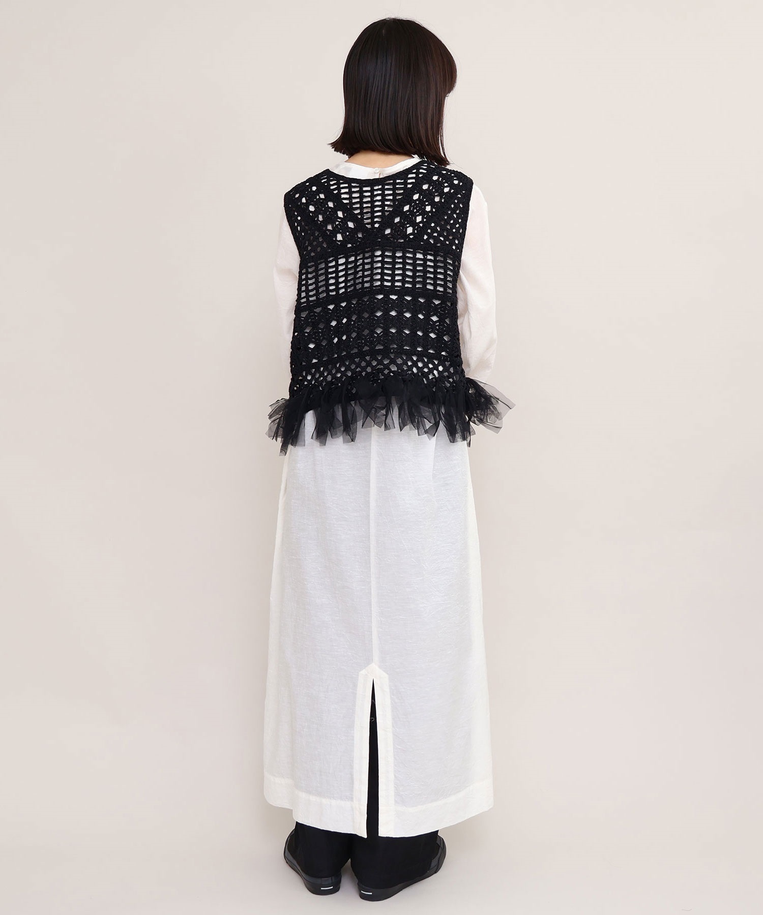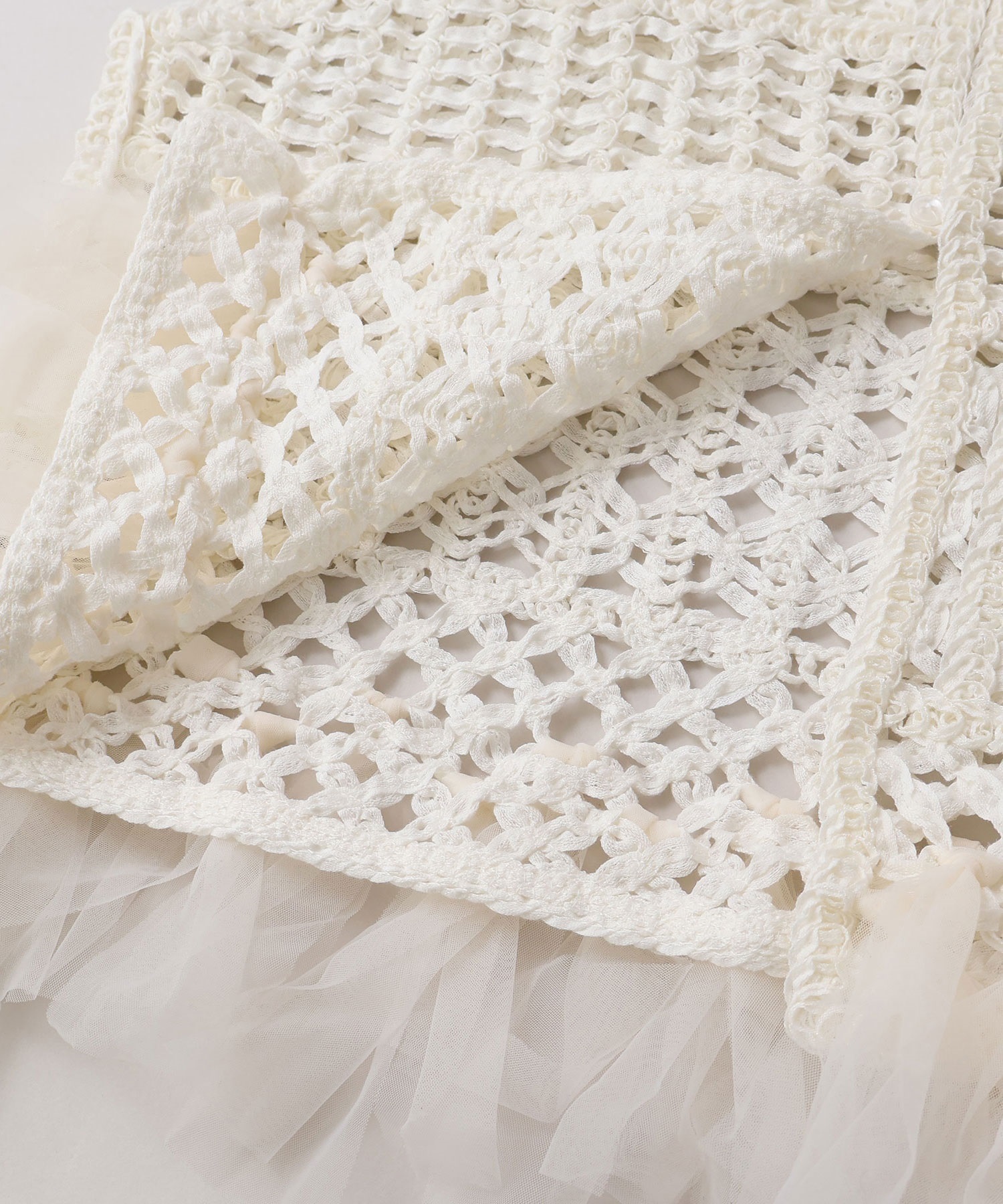 裾端にはチュールを結び付け、フリンジのようなデザインに仕上げました。