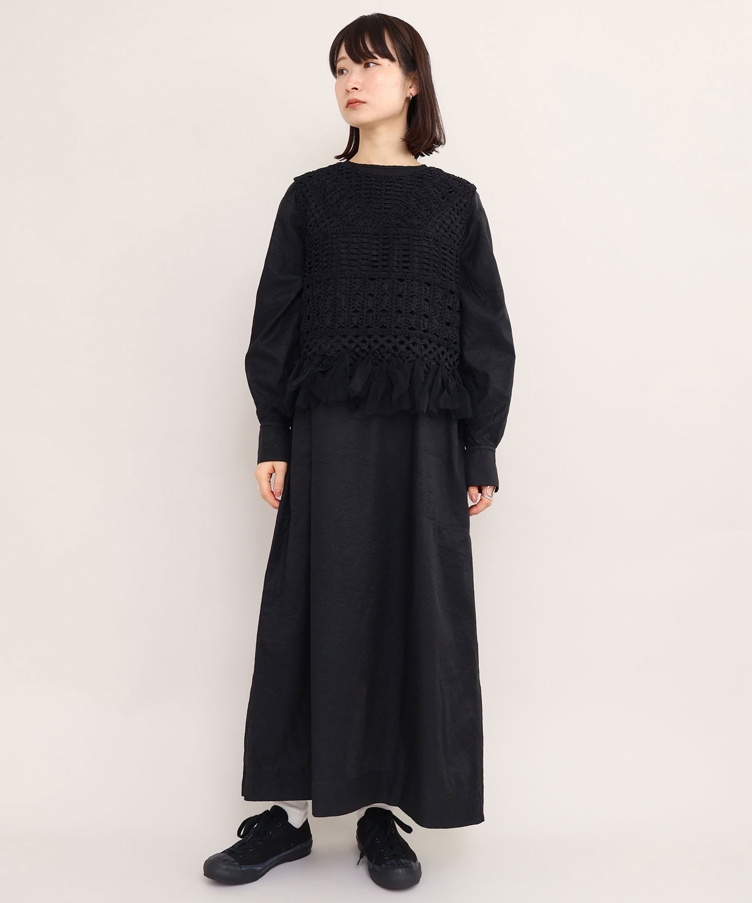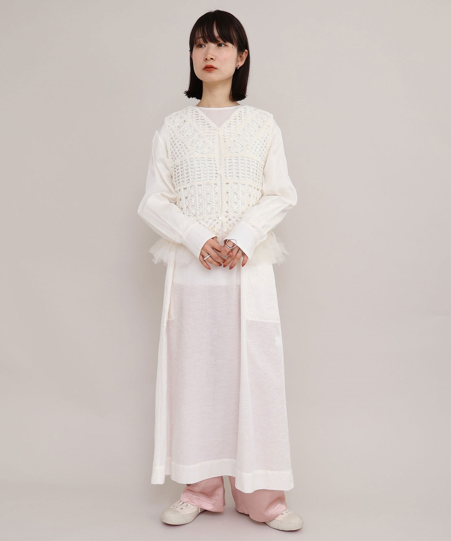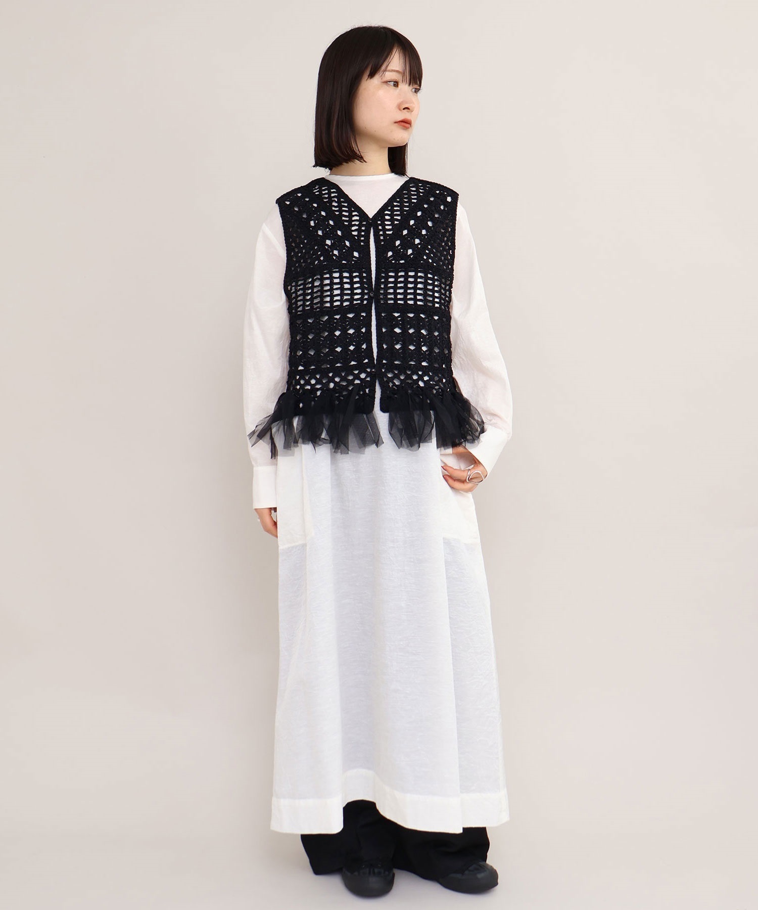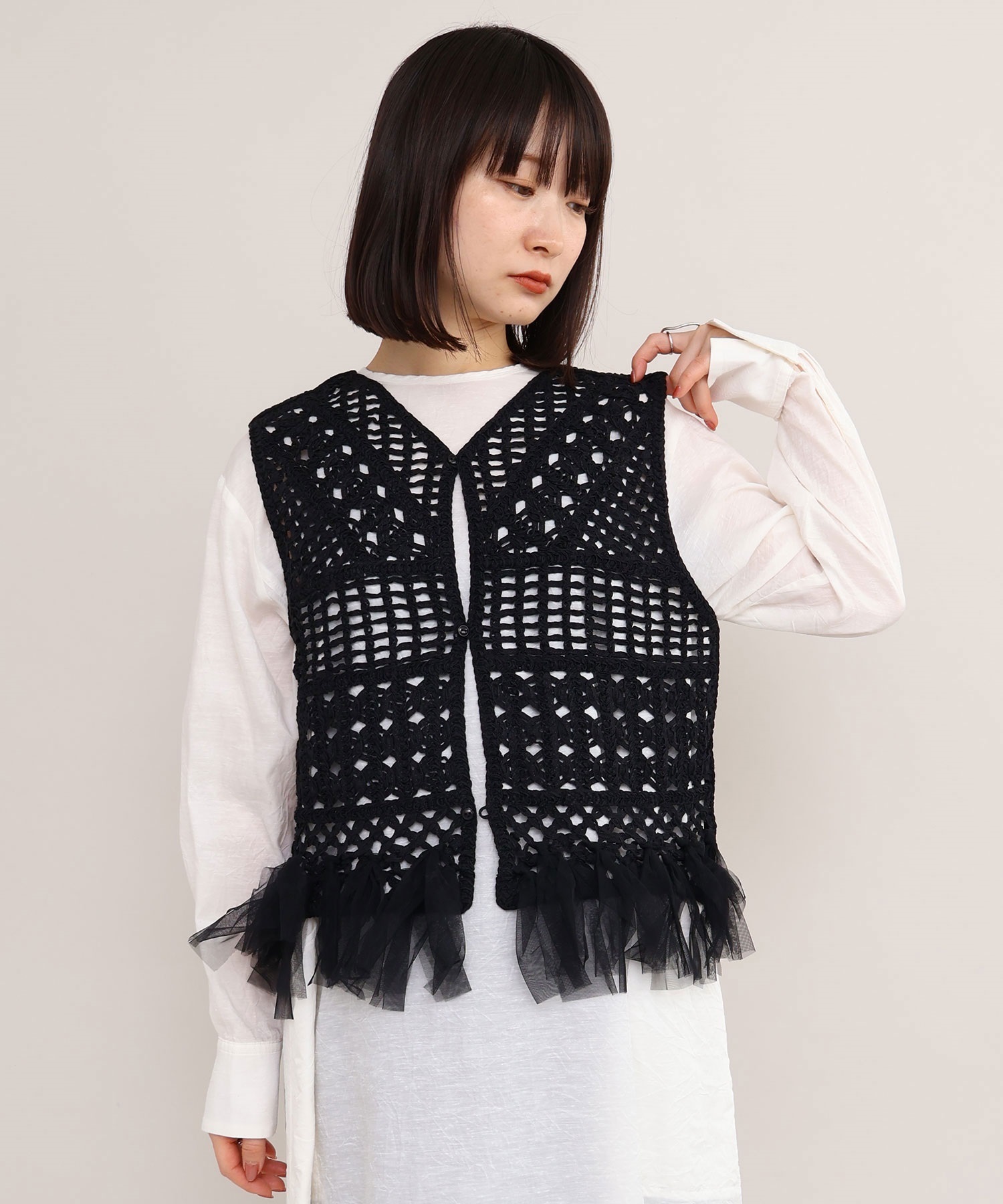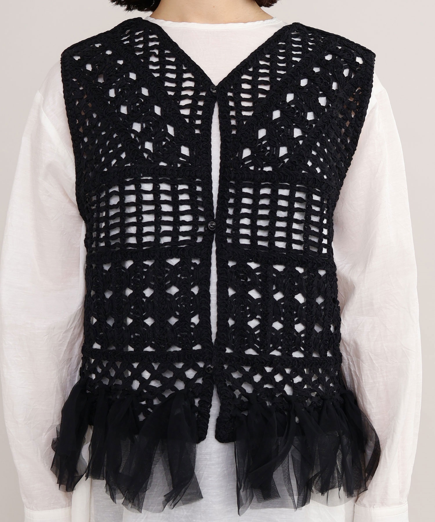 裾端にはチュールを結び付け、フリンジのようなデザインに仕上げました。