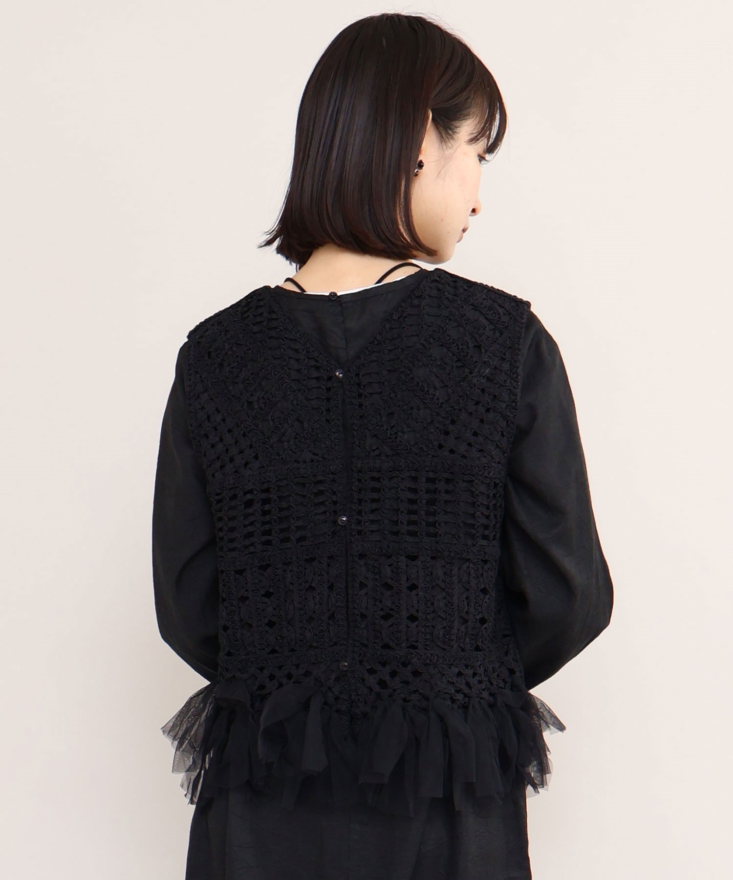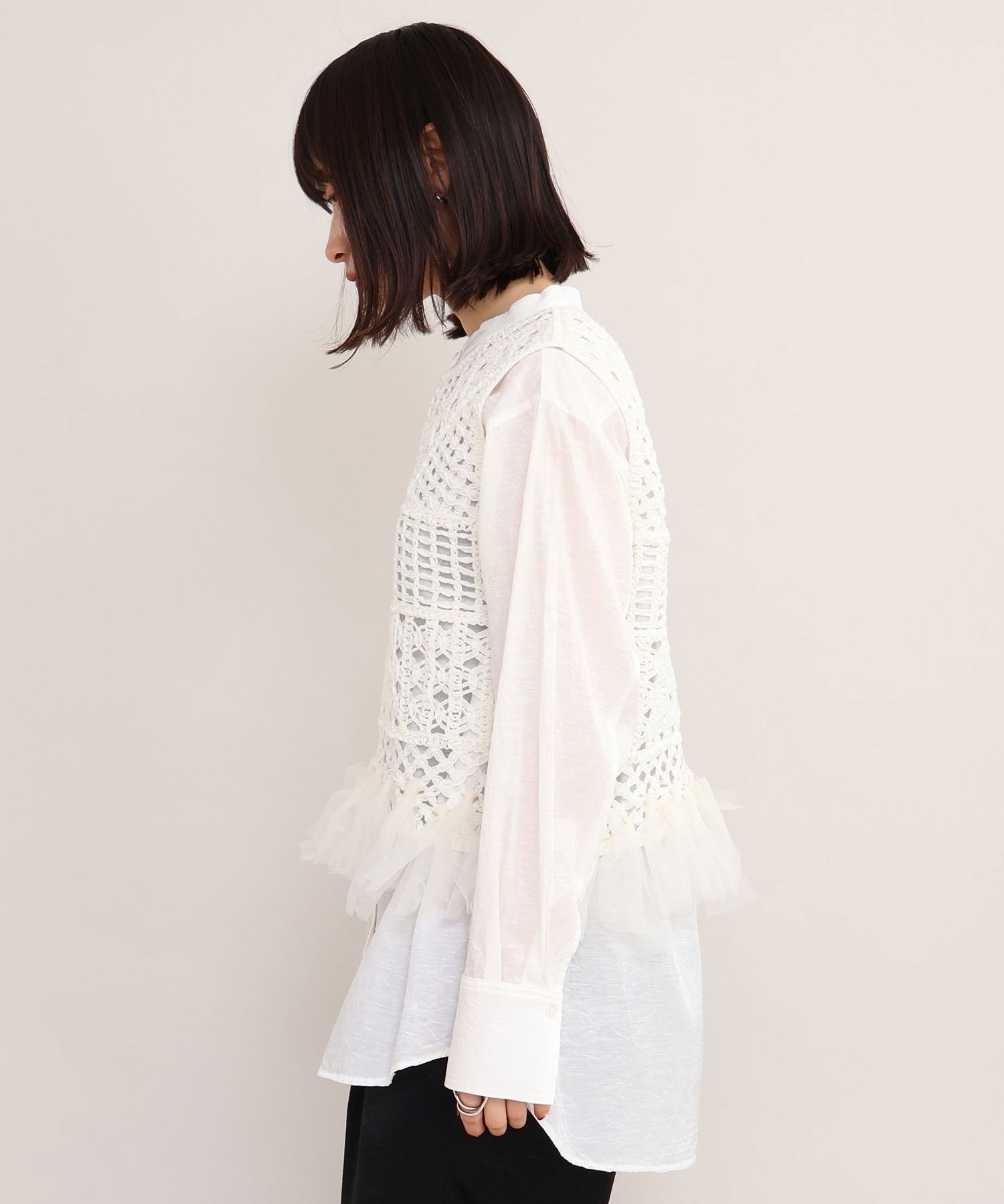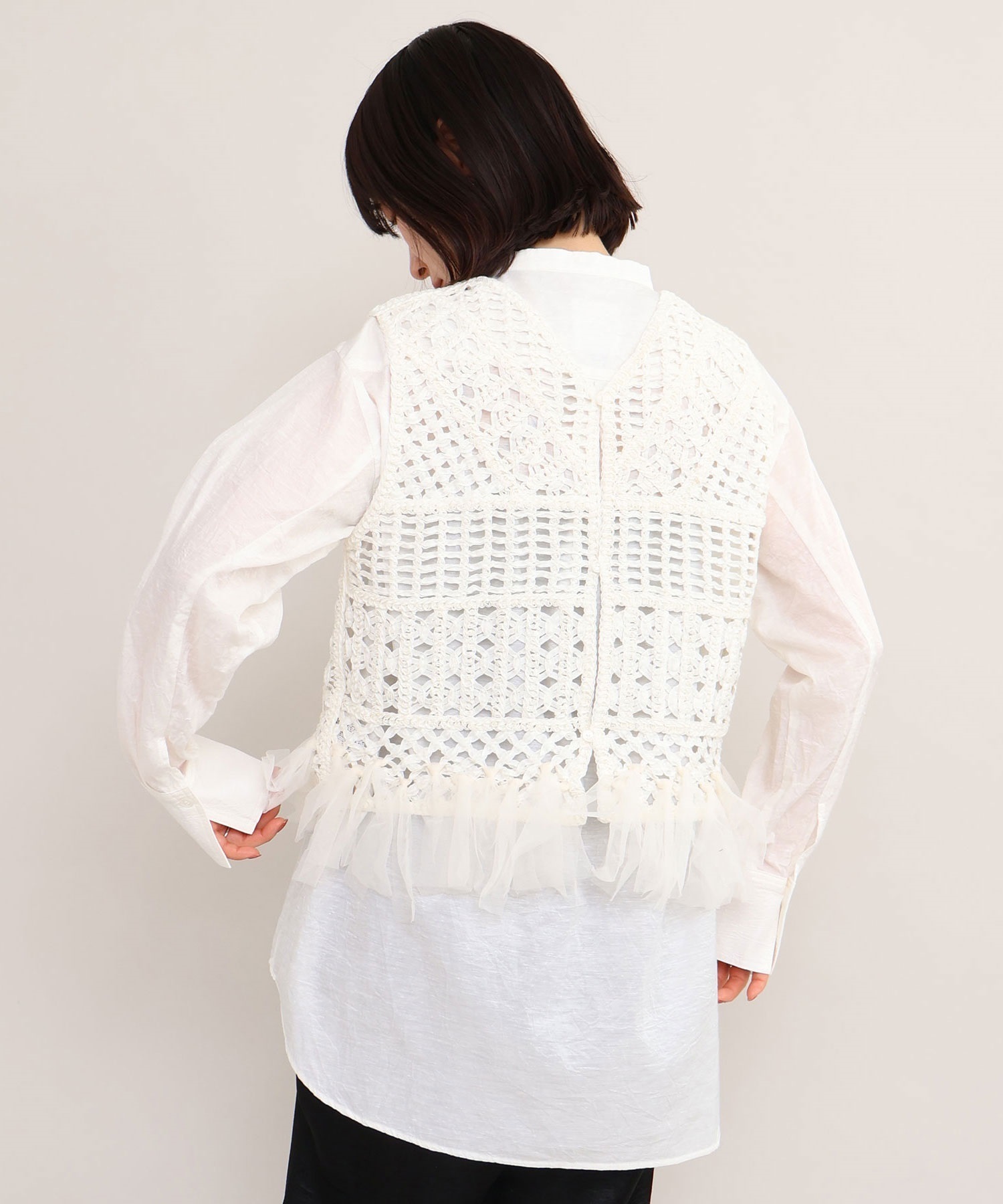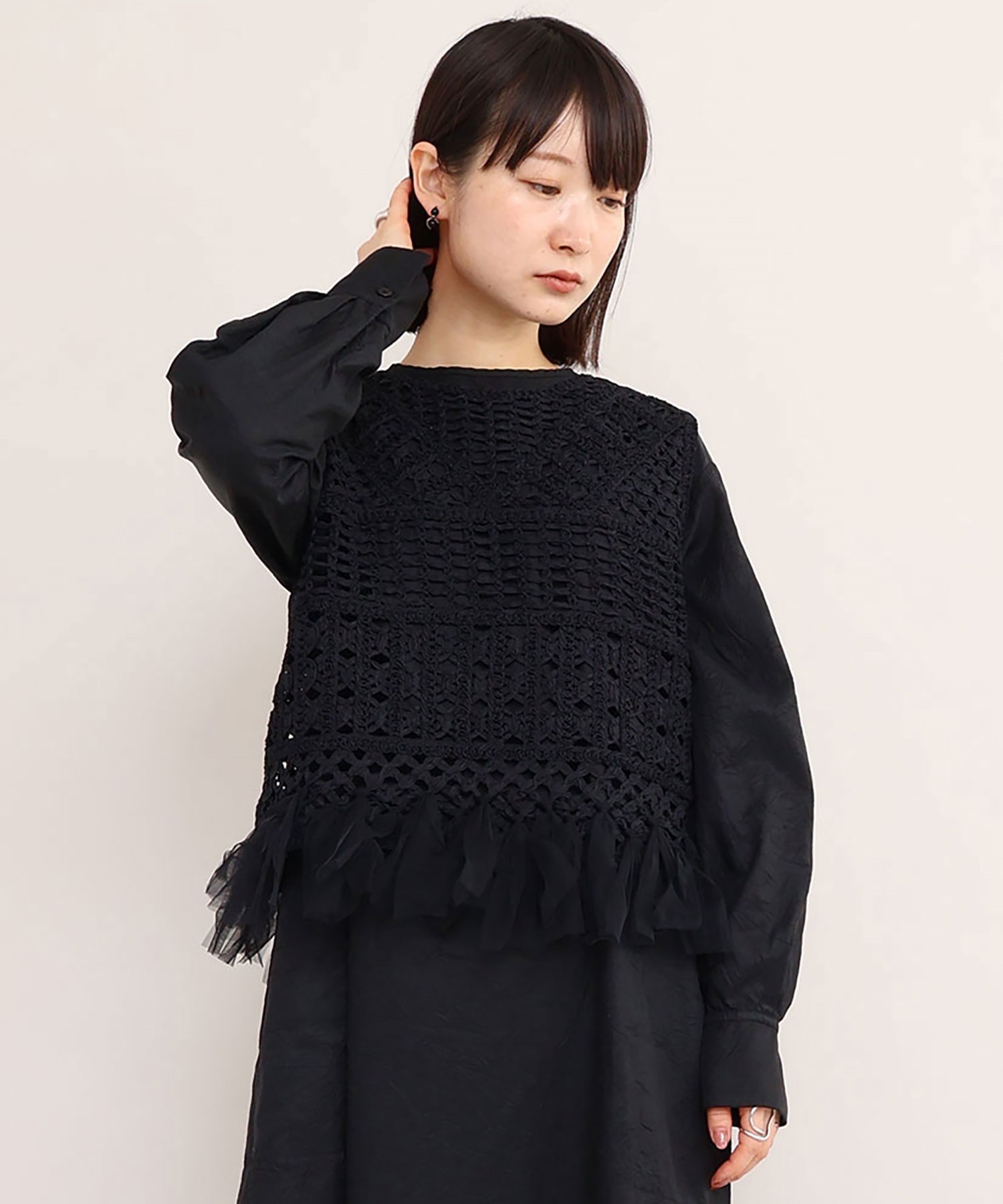 テープヤーン刺繍 チュールフリンジプルオーバー