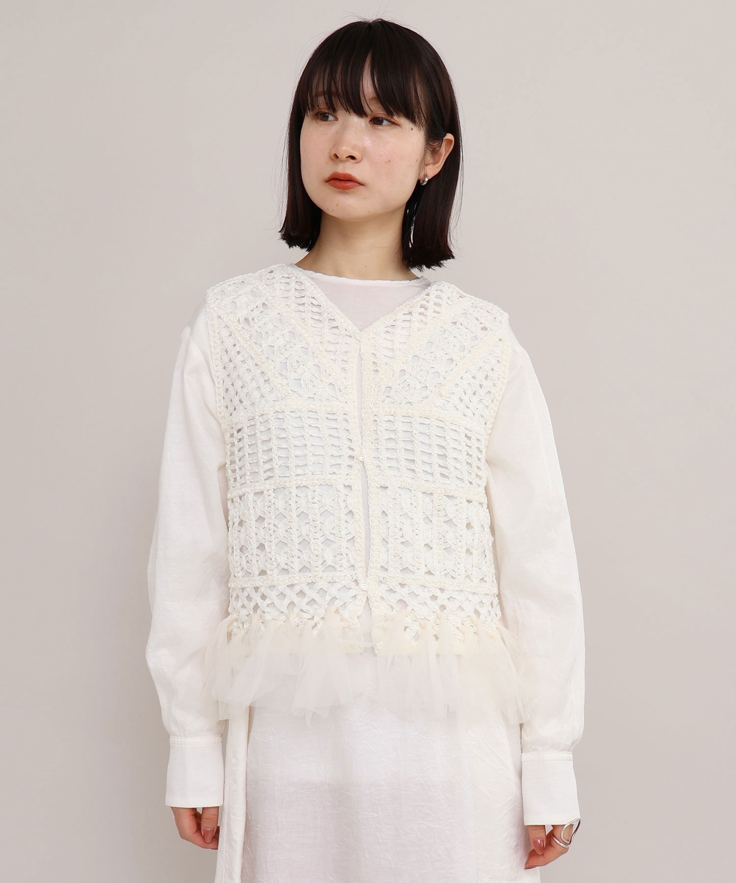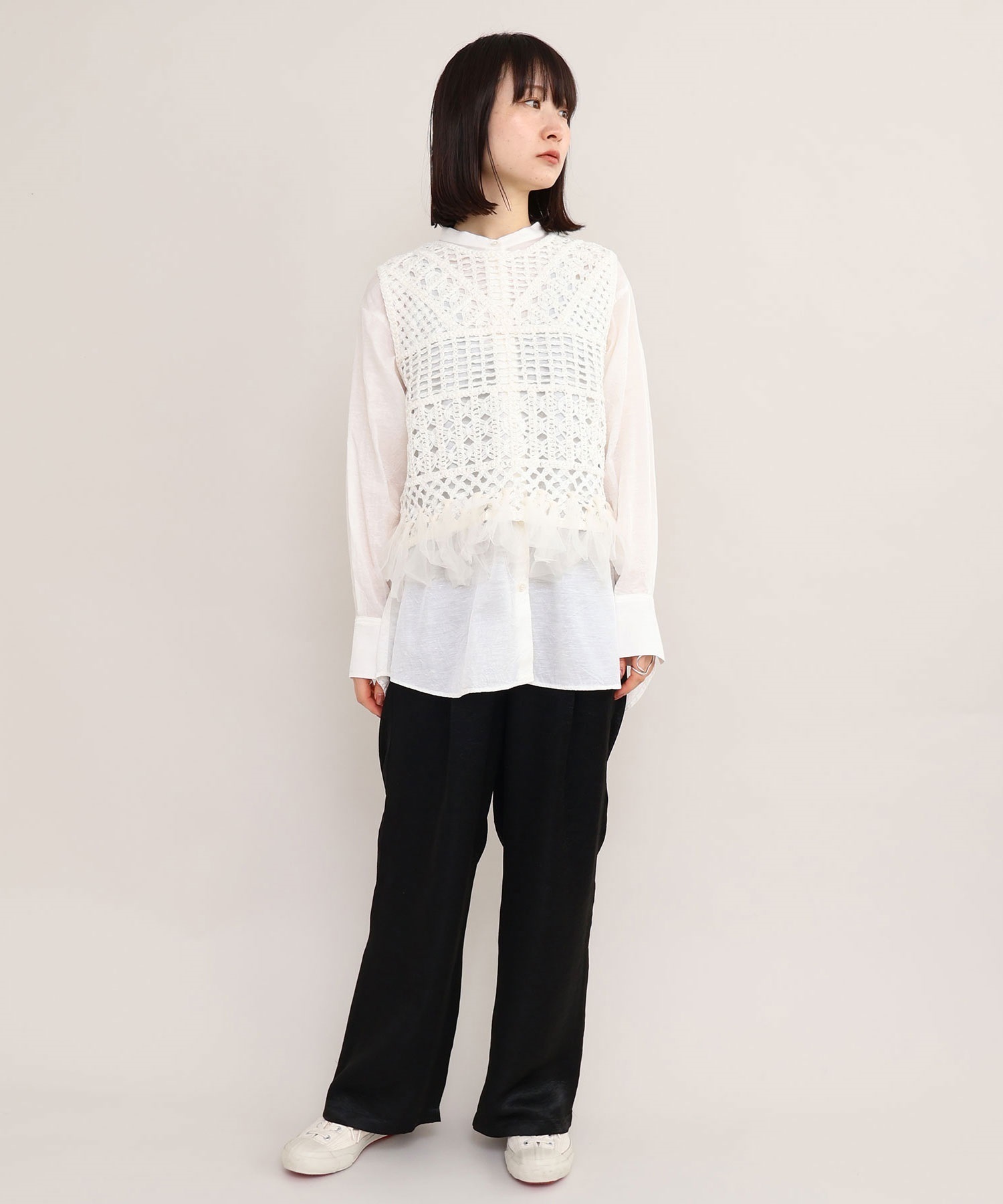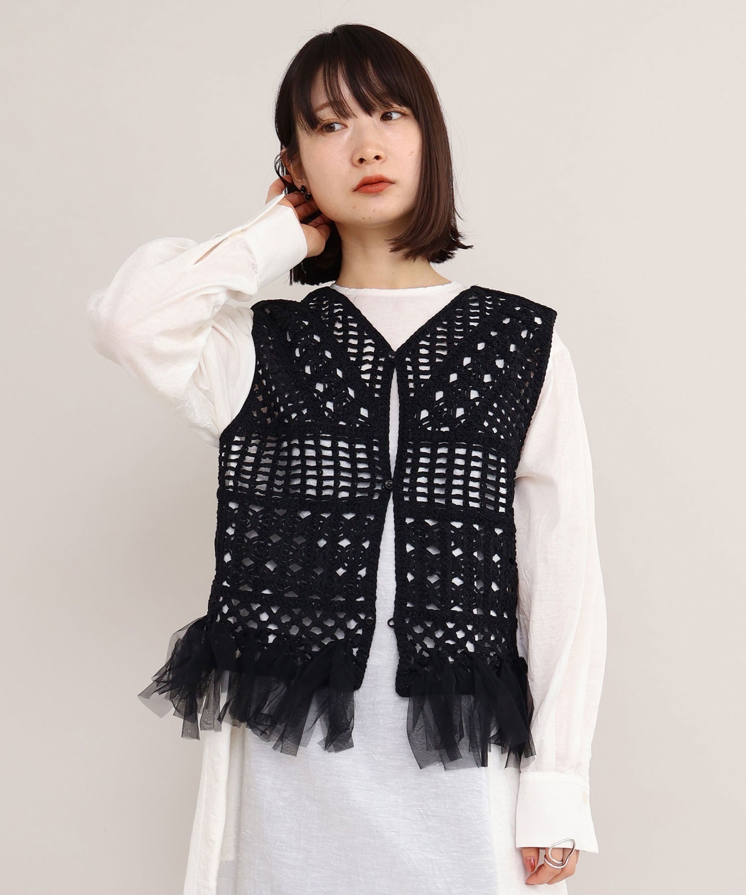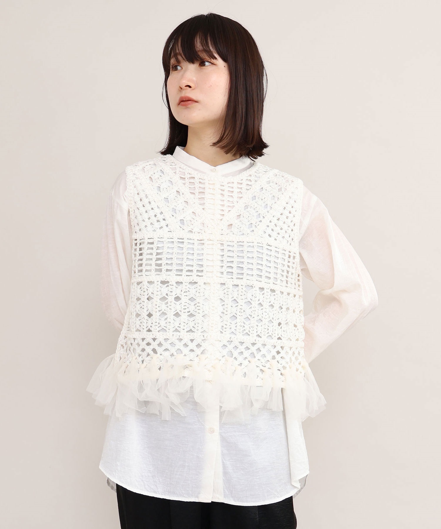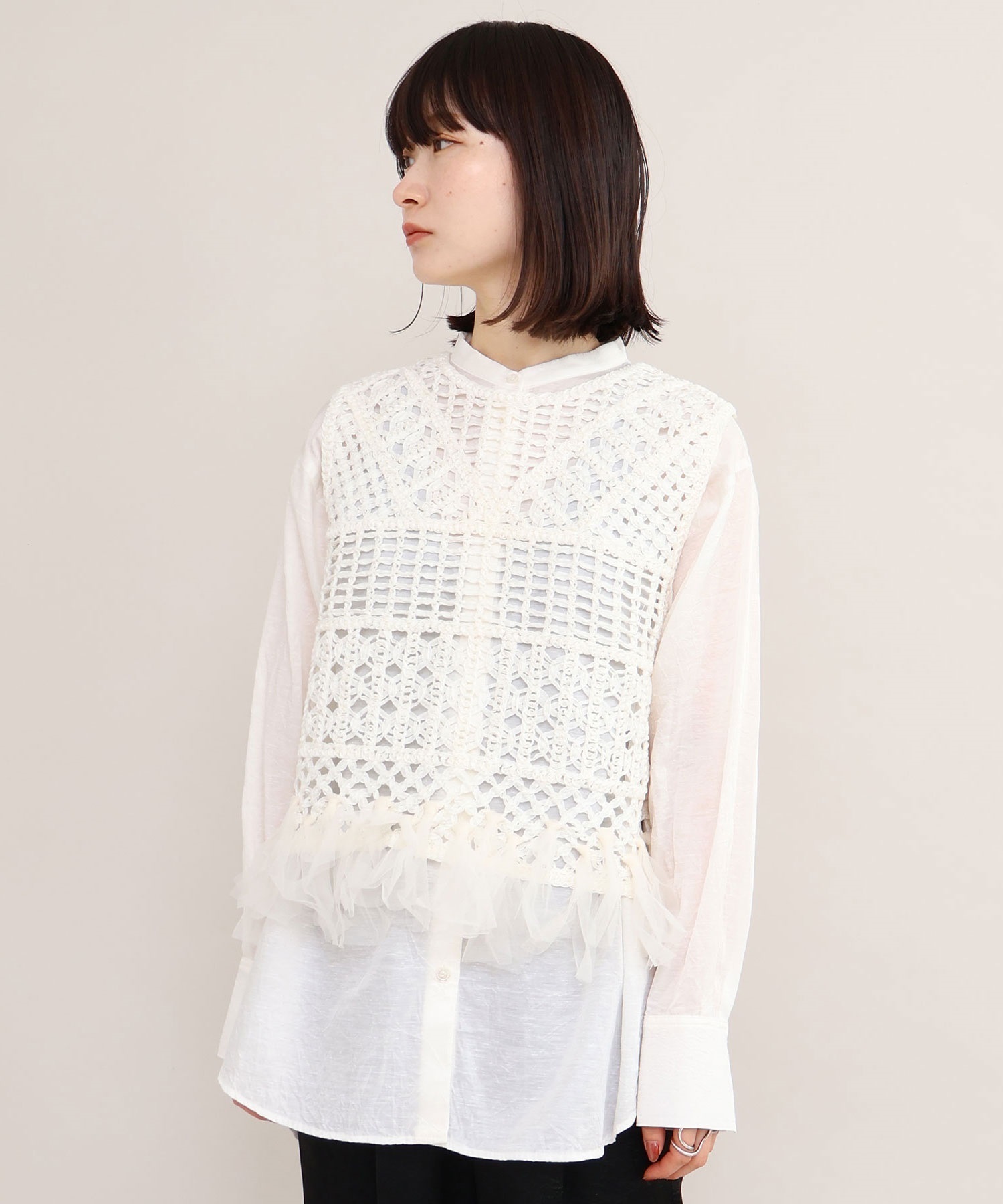 テープヤーン刺繍 チュールフリンジプルオーバー