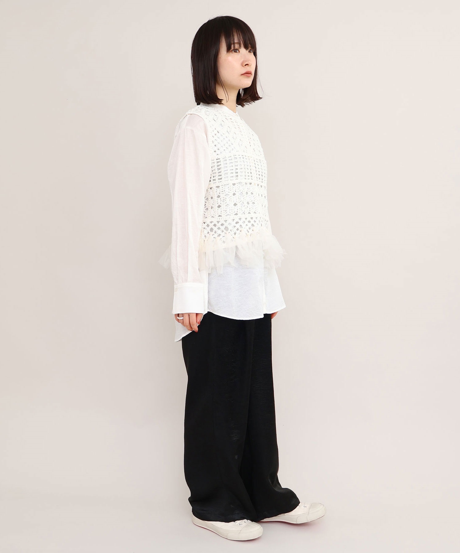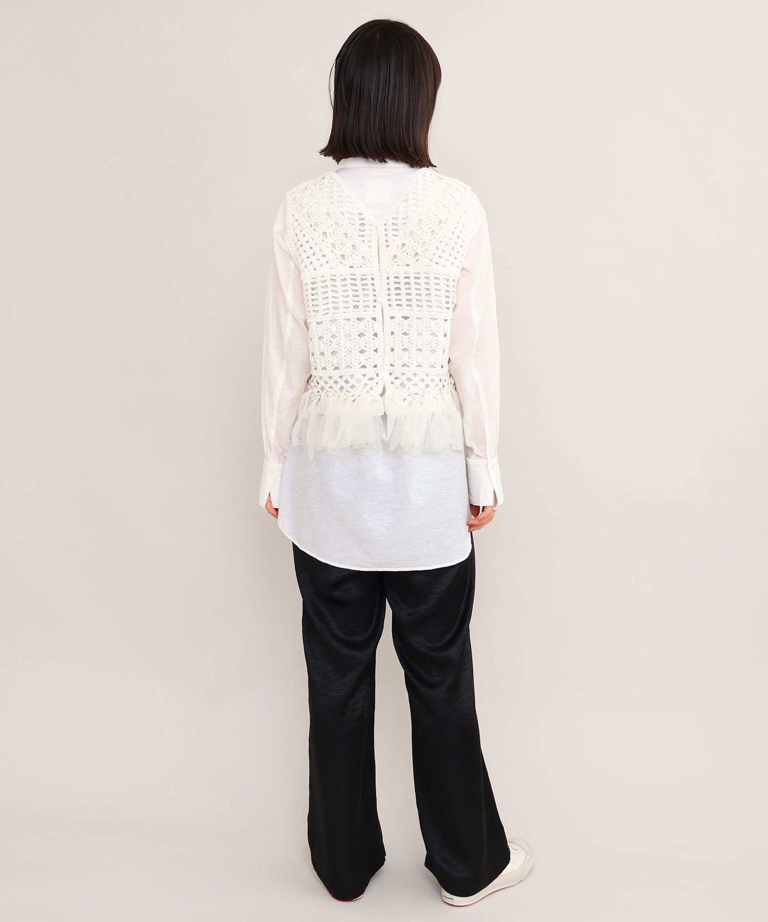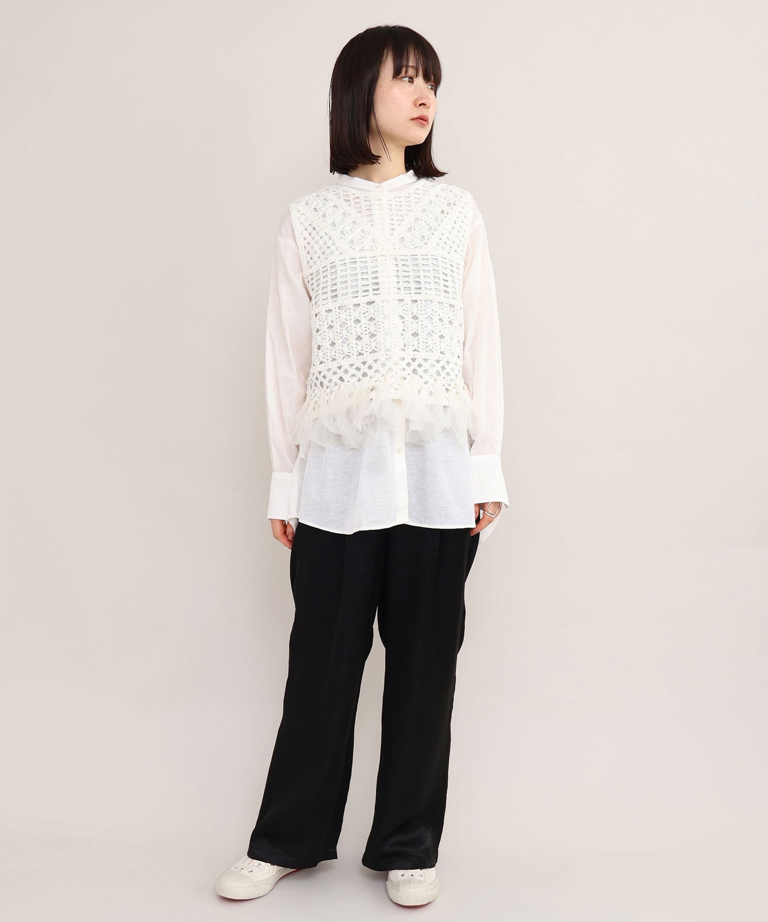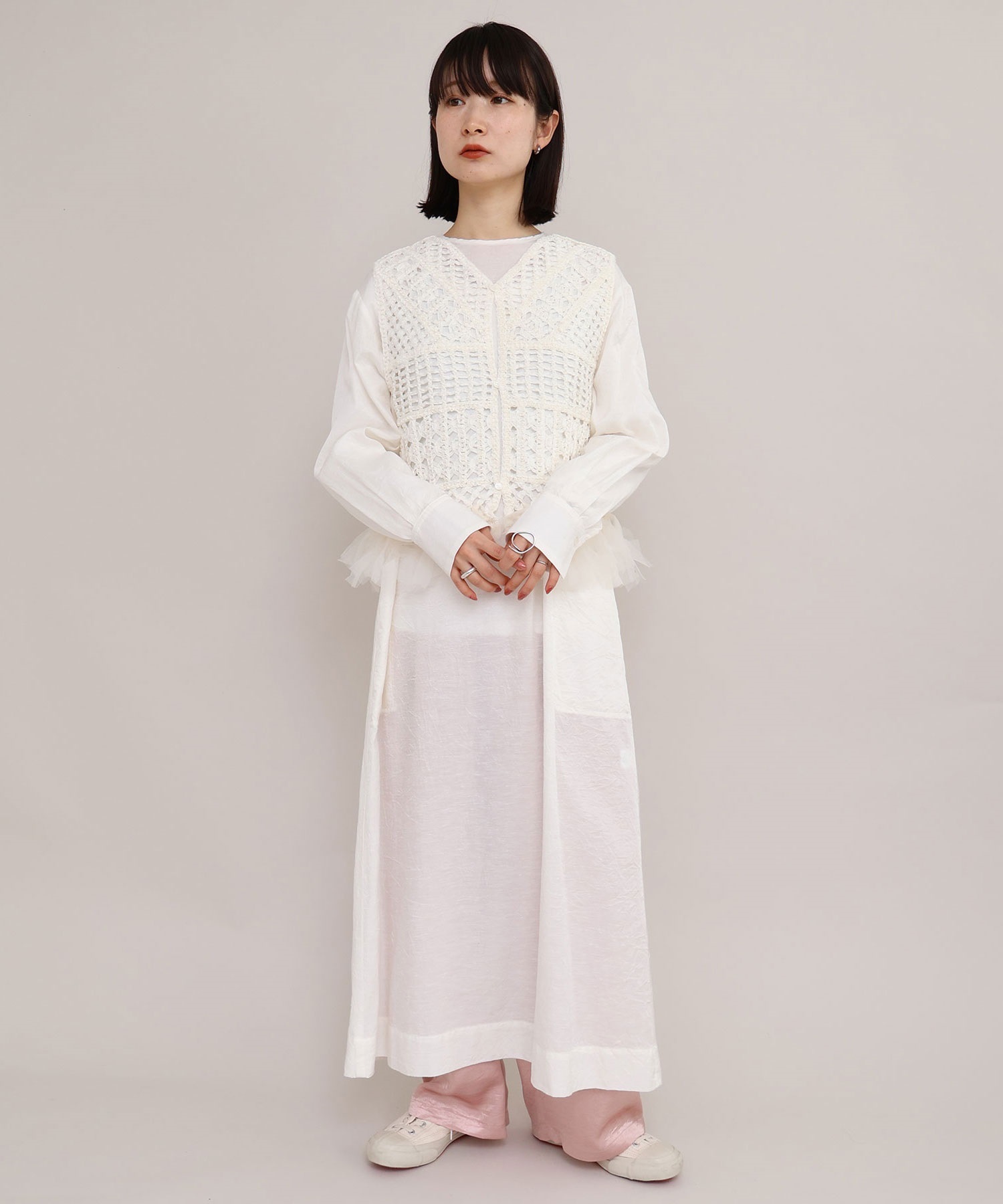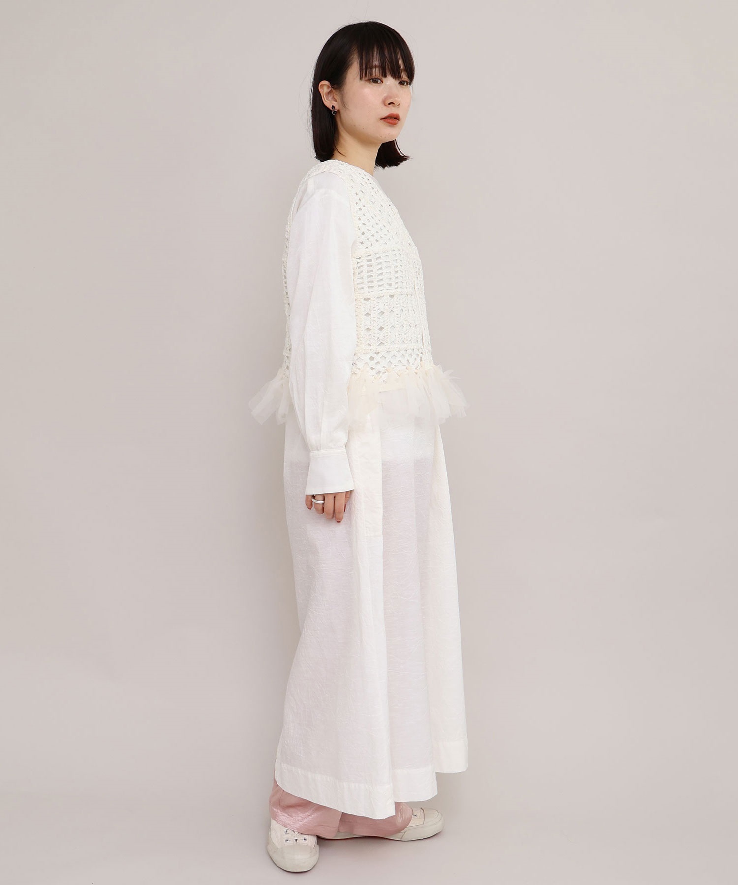 ワンピースとレイヤードしたり、カットソーとカジュアルに合わせても素敵。