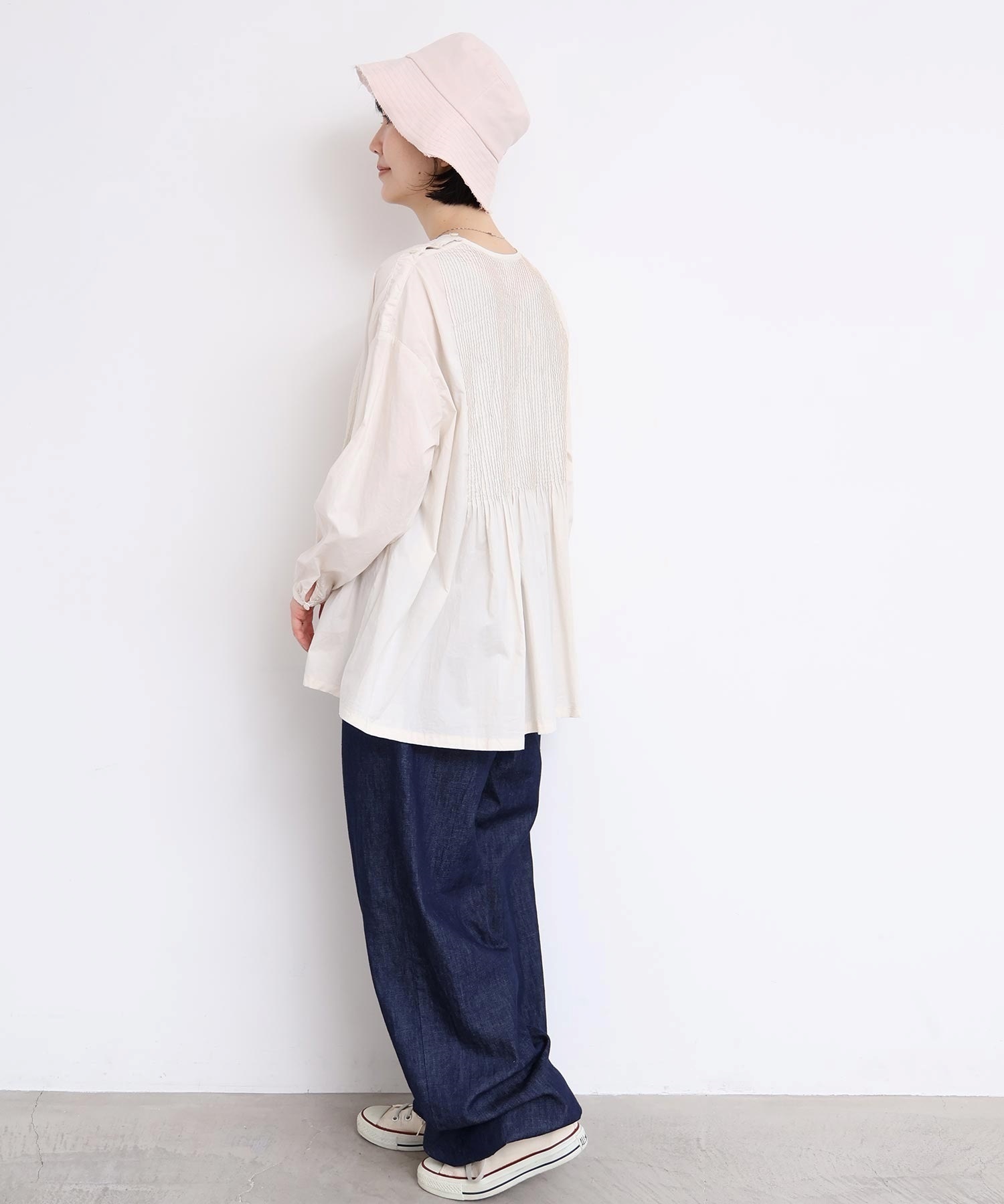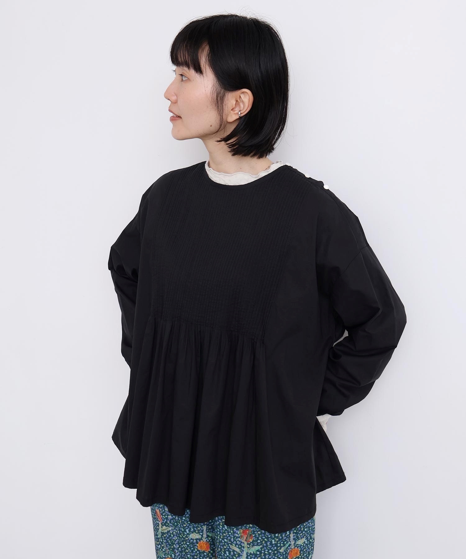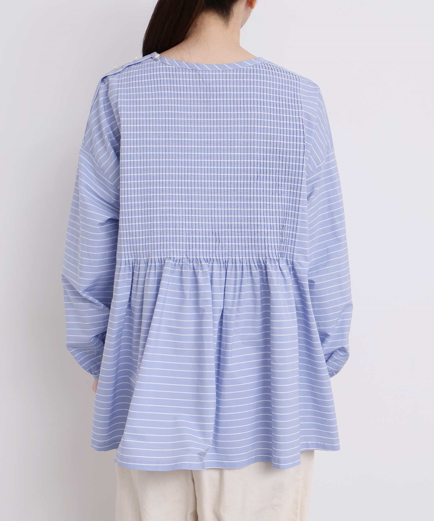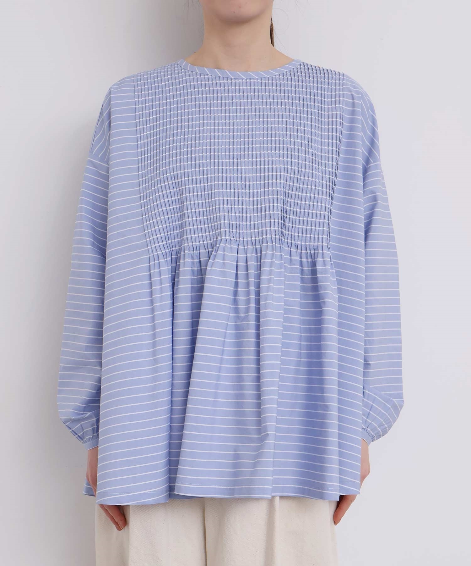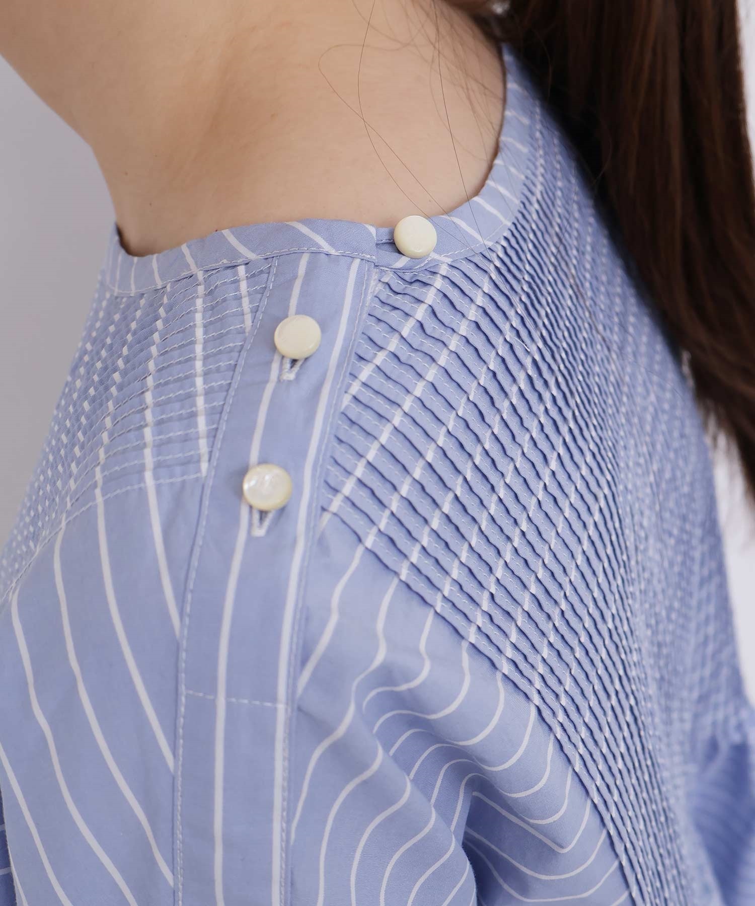 バスクシャツのようなディテールのピンタックブラウス。