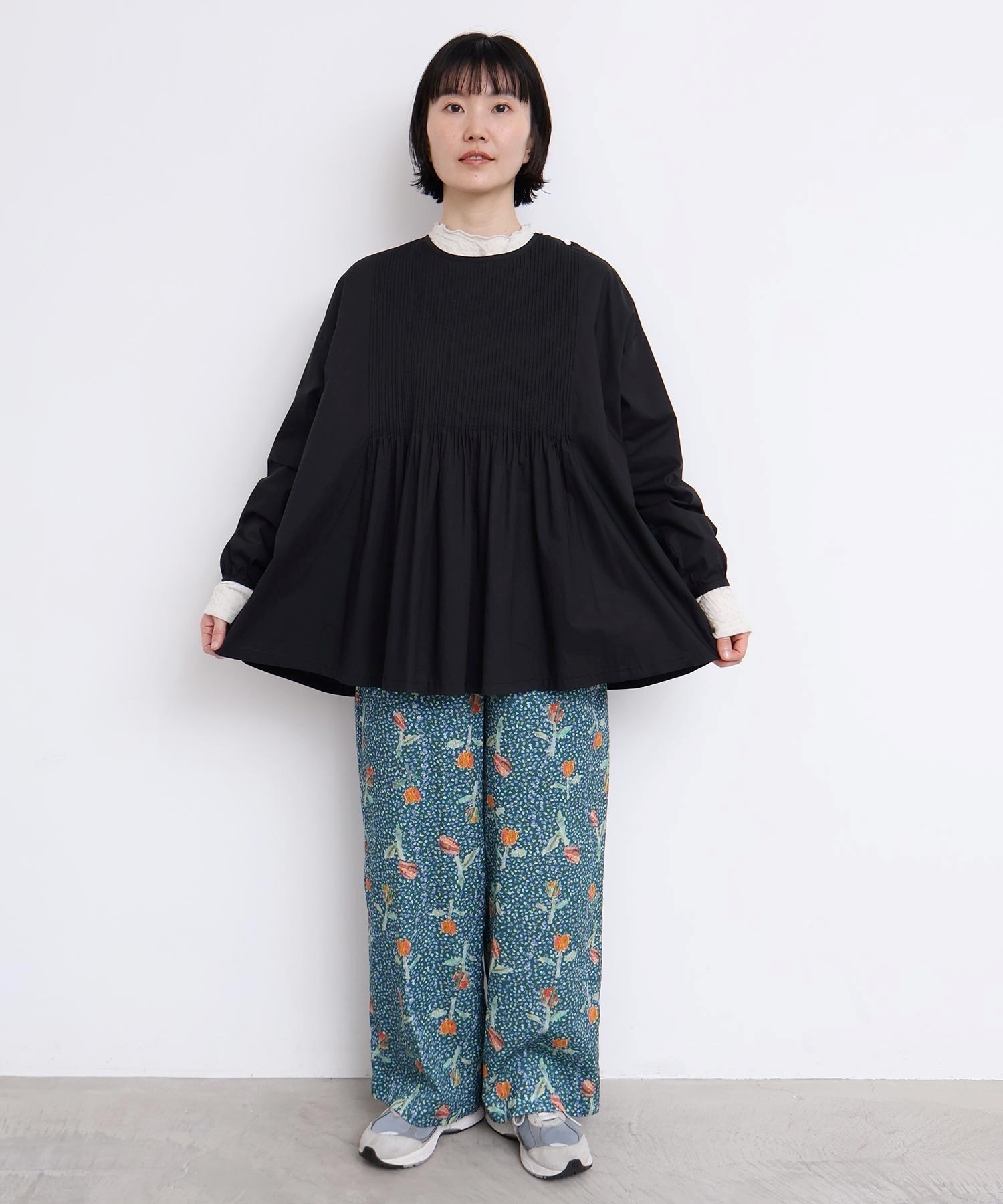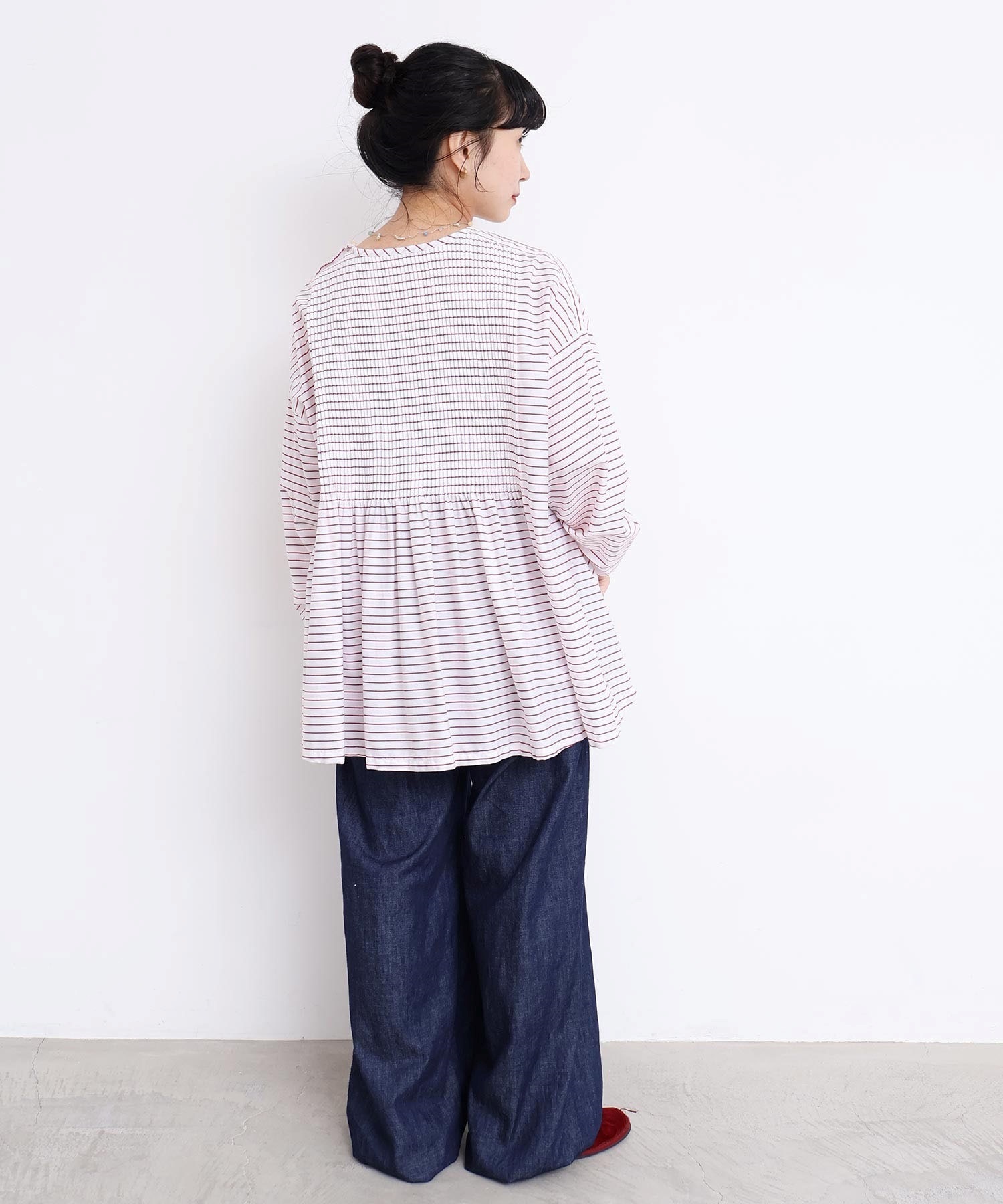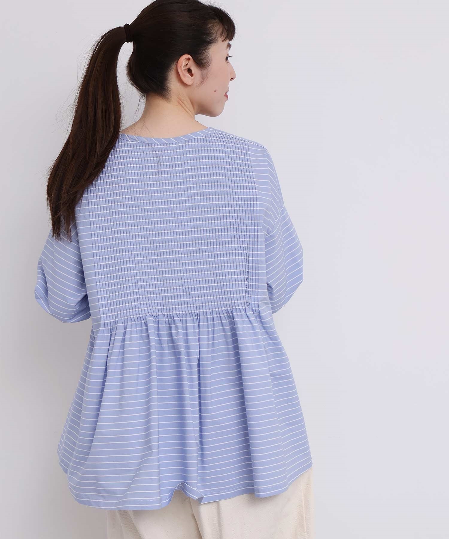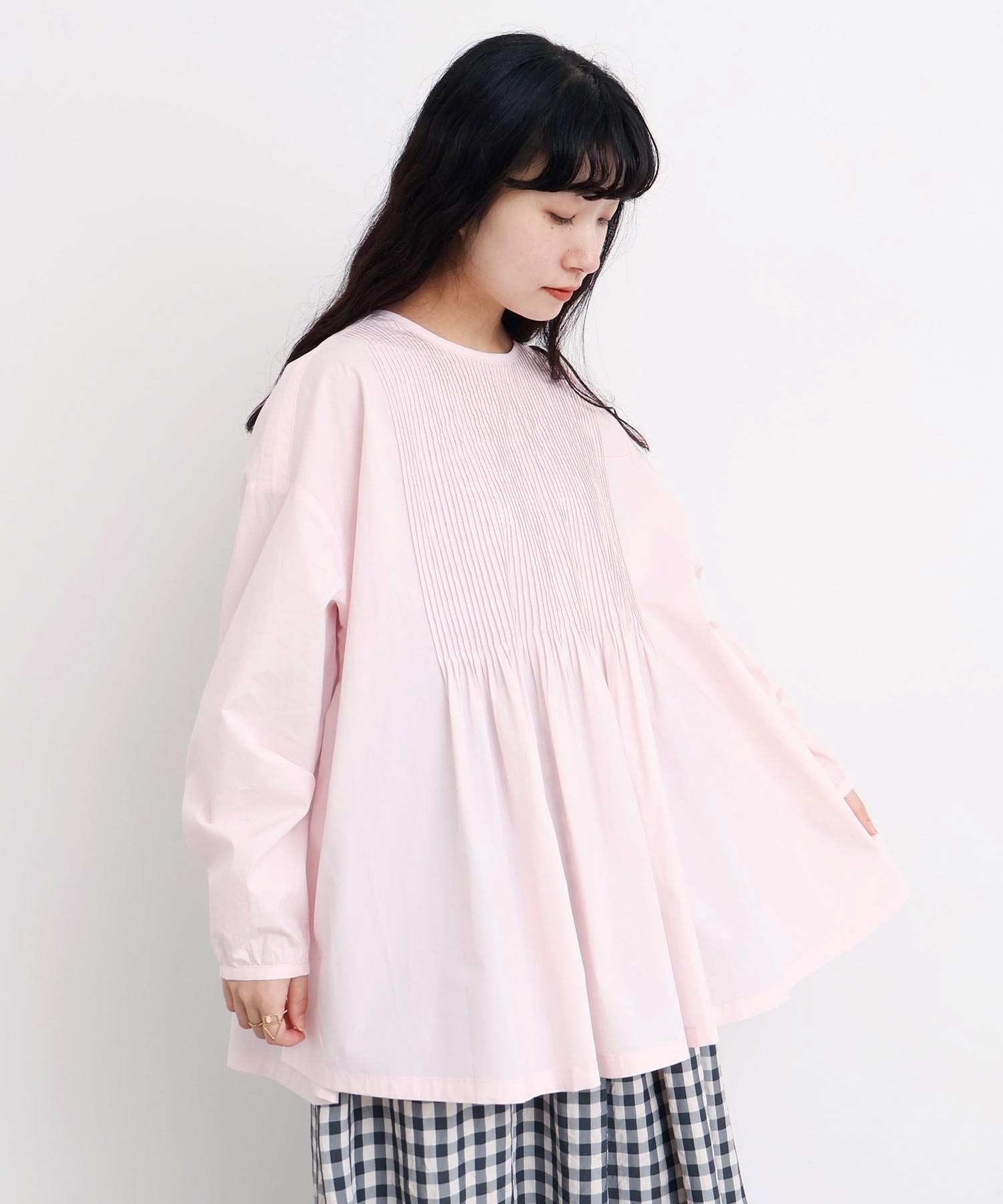 バスクシャツのようなディテールのピンタックブラウス。