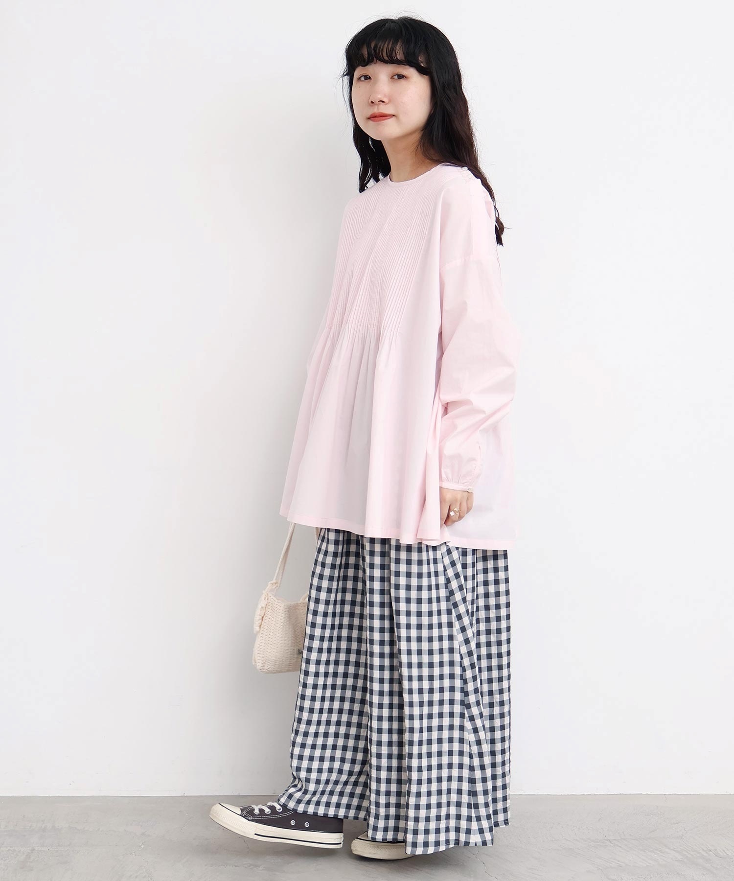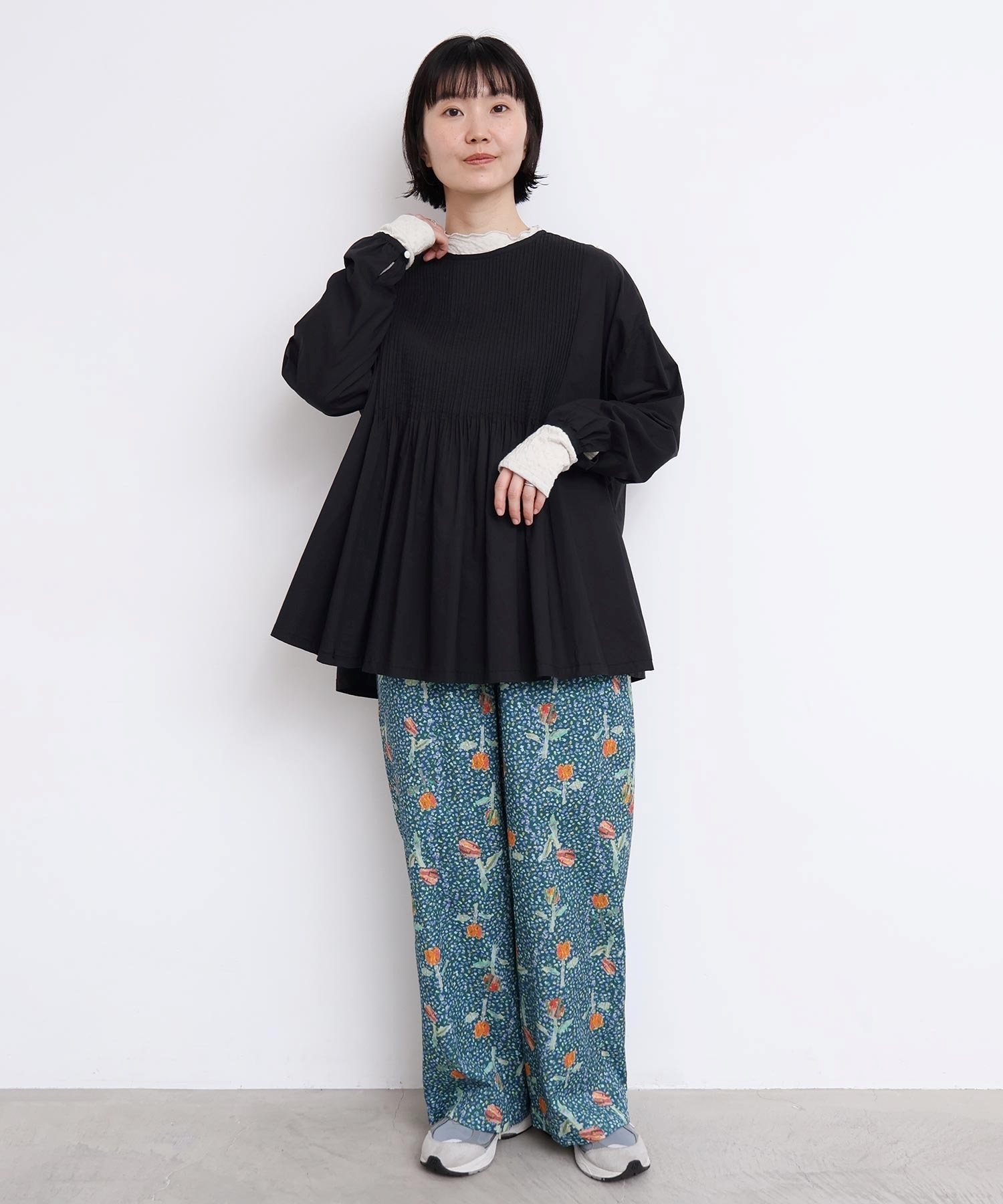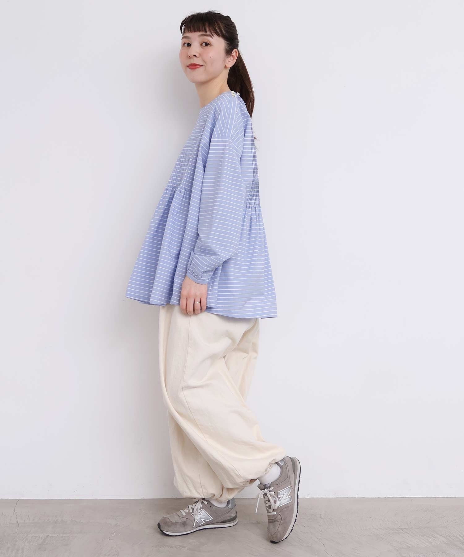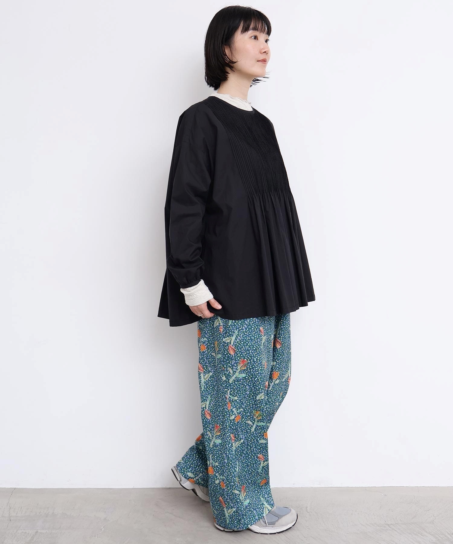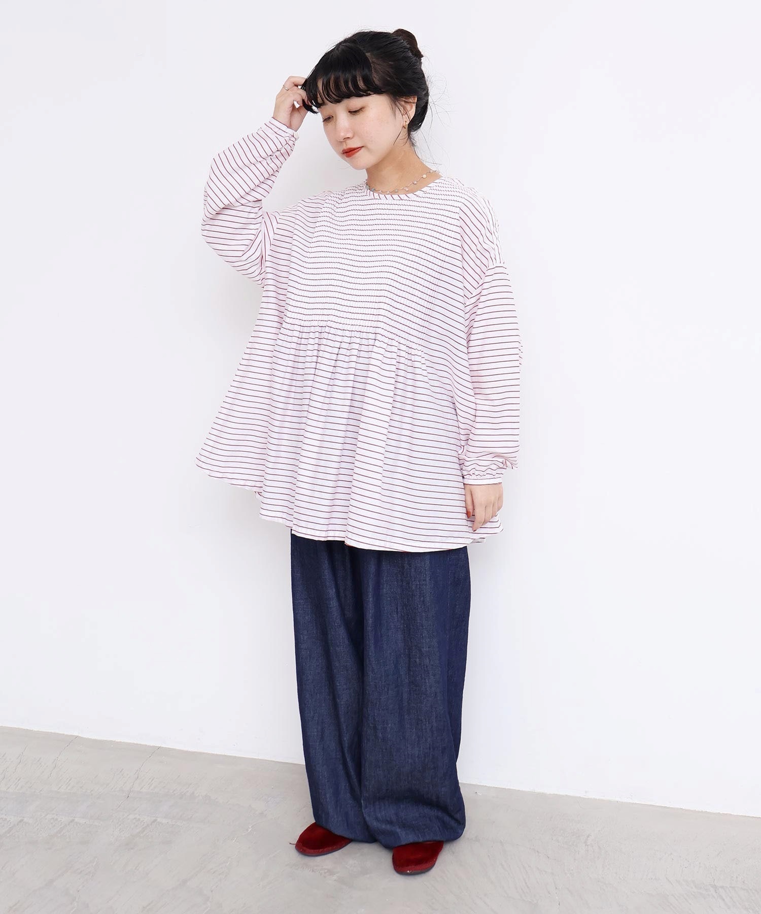 バスクシャツのようなディテールのピンタックブラウス。