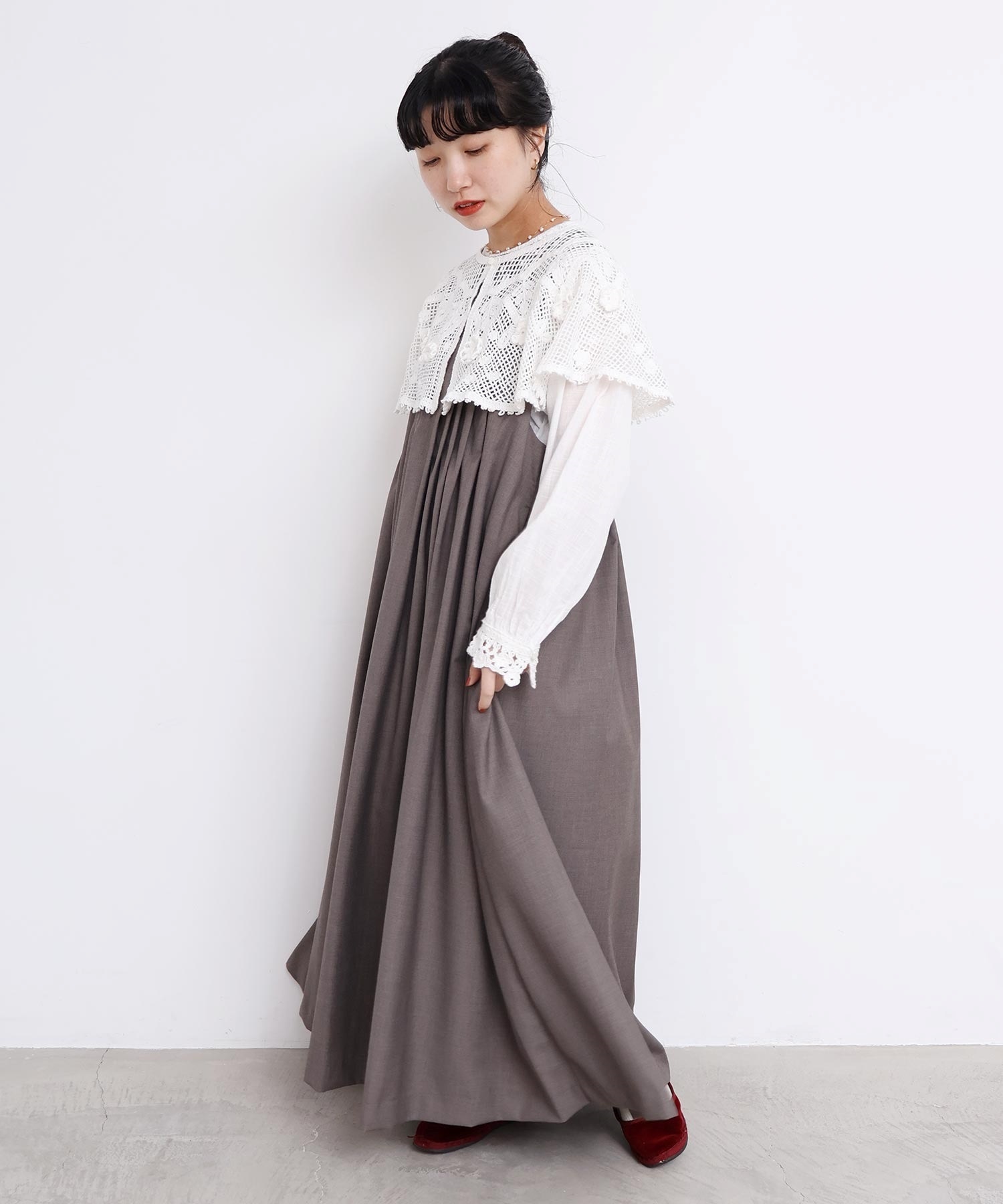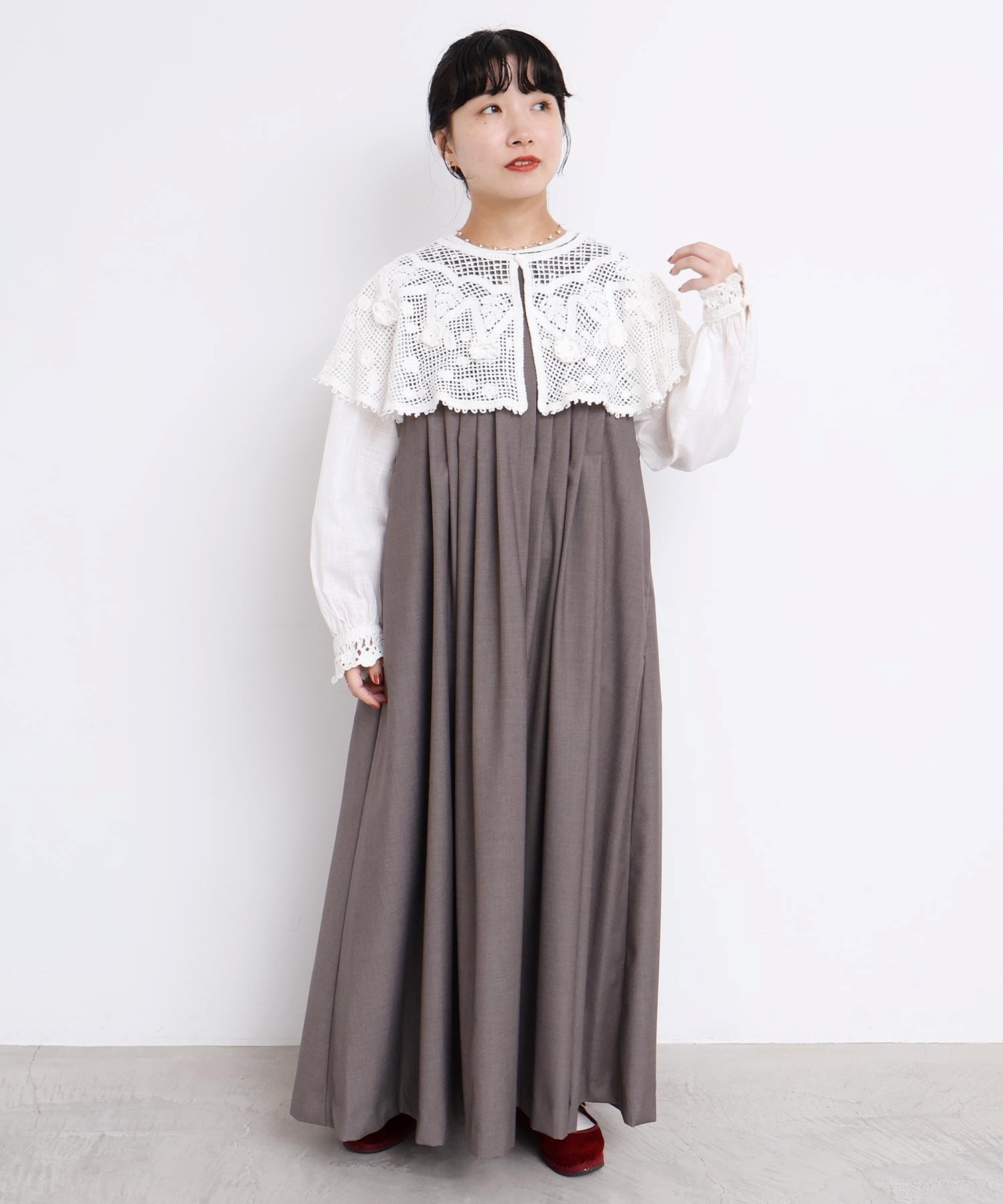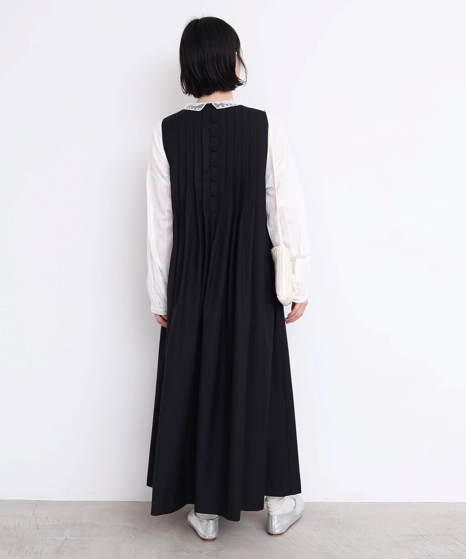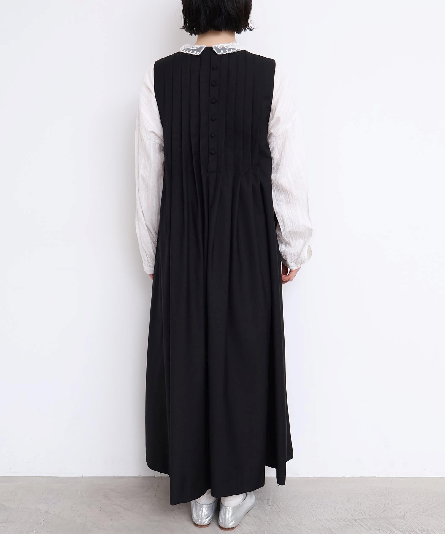 ぜいたくなタックのデザインでシルエットを出したワンピース。