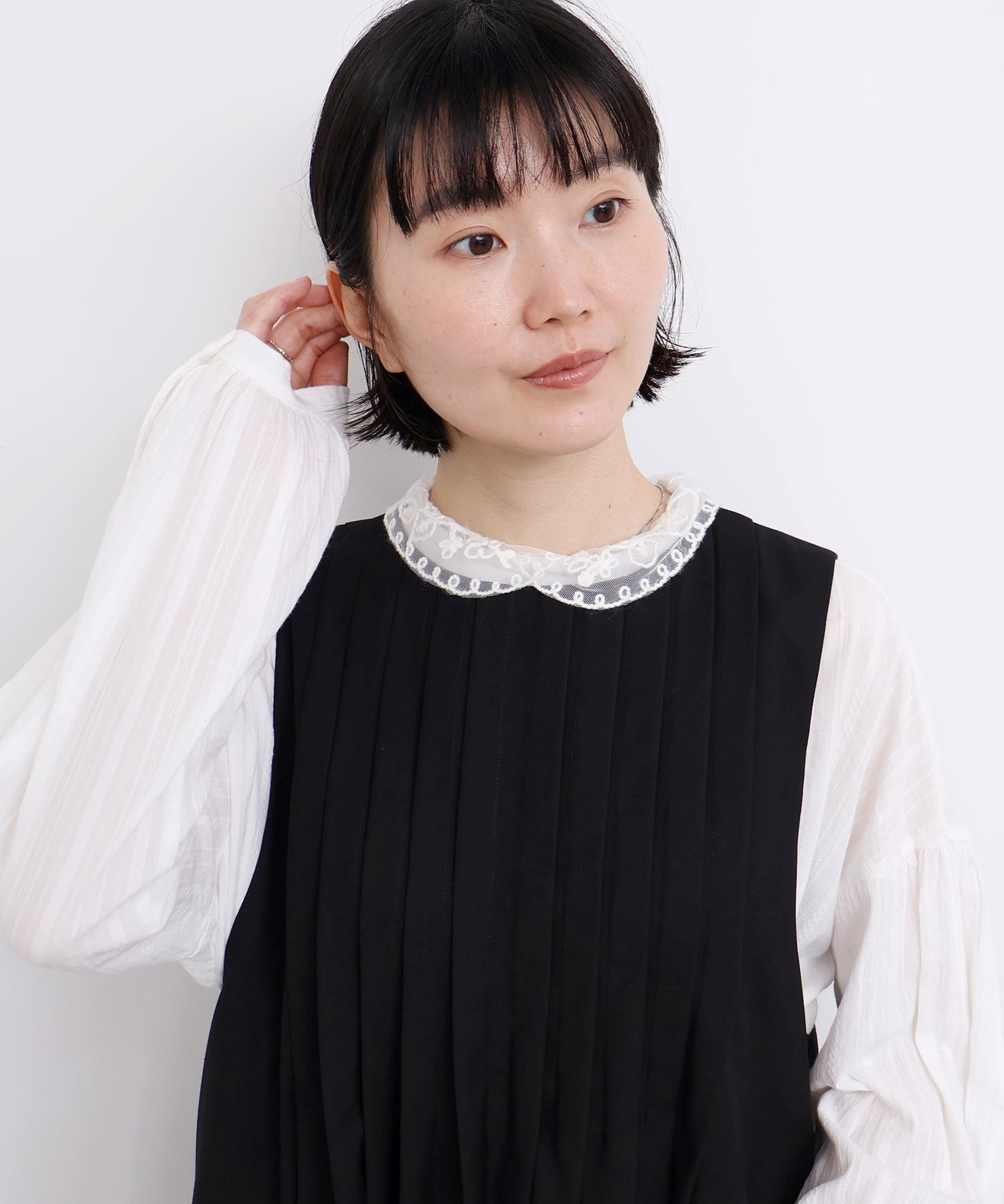 きれいめなインナーも、普段使いにカットソーやニット合わせも◎な