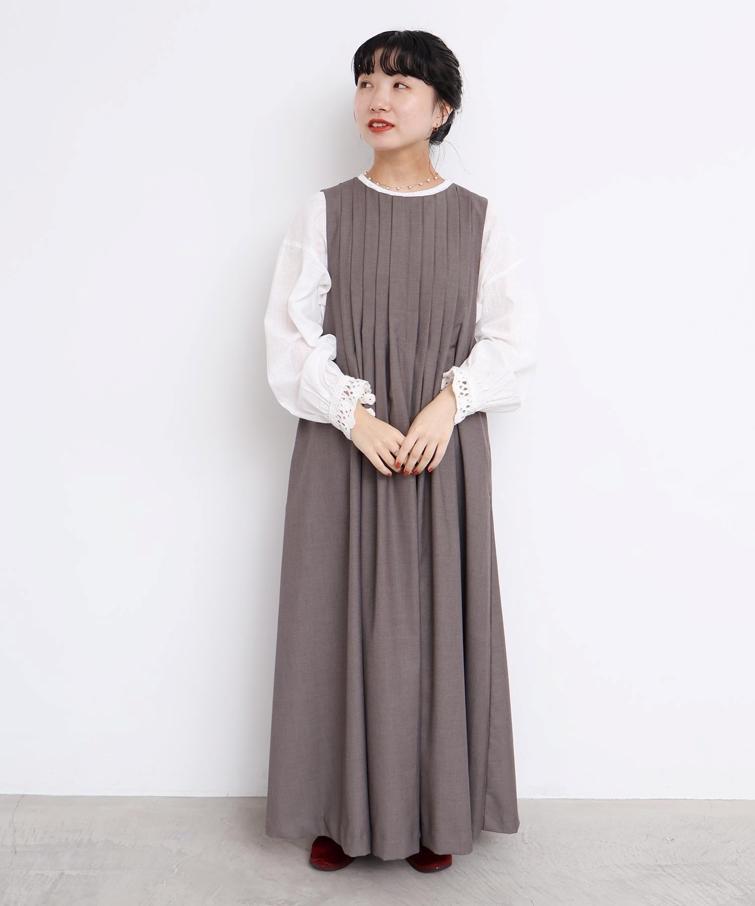 【予約販売】TRプリーツタックノースリワンピース