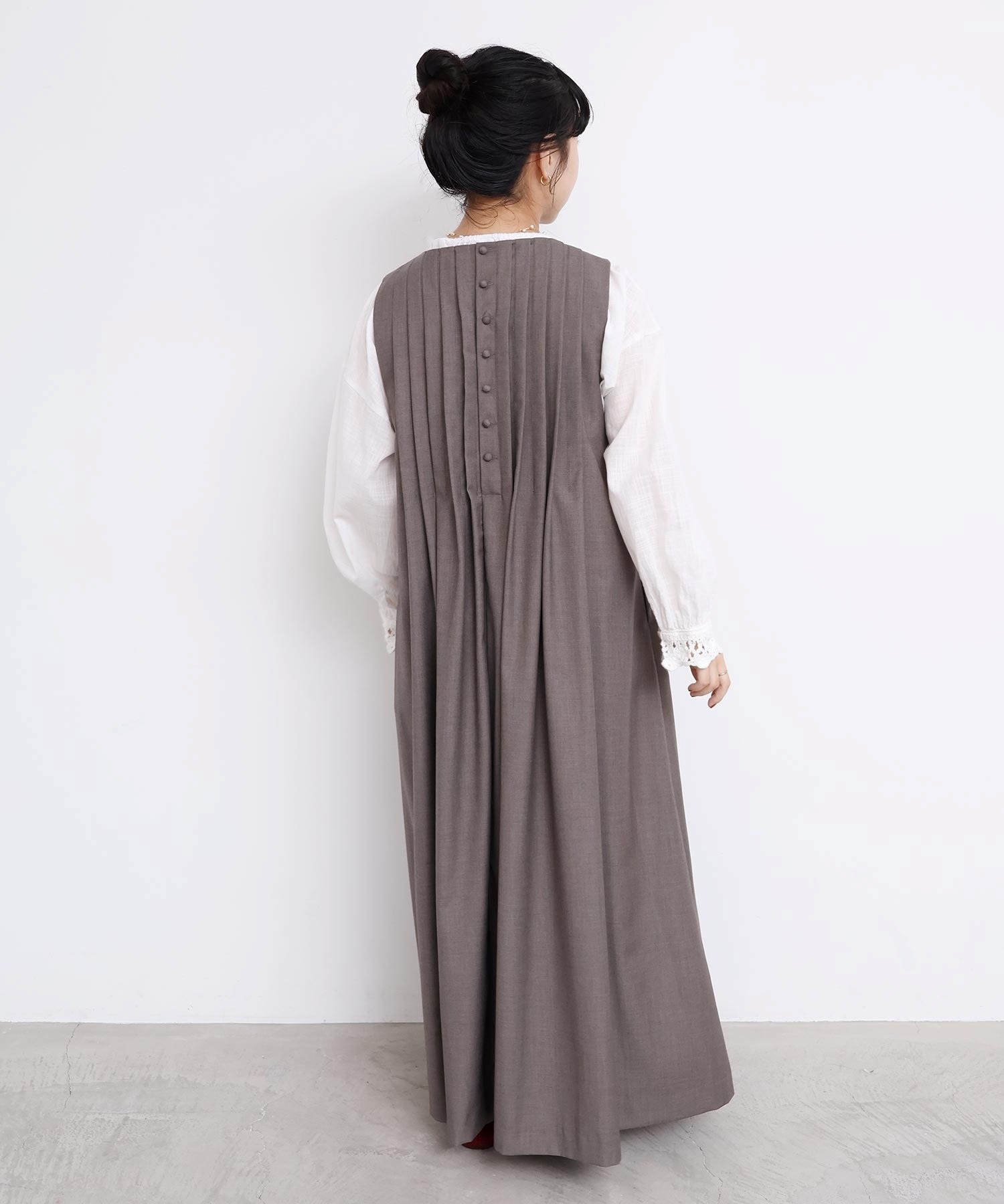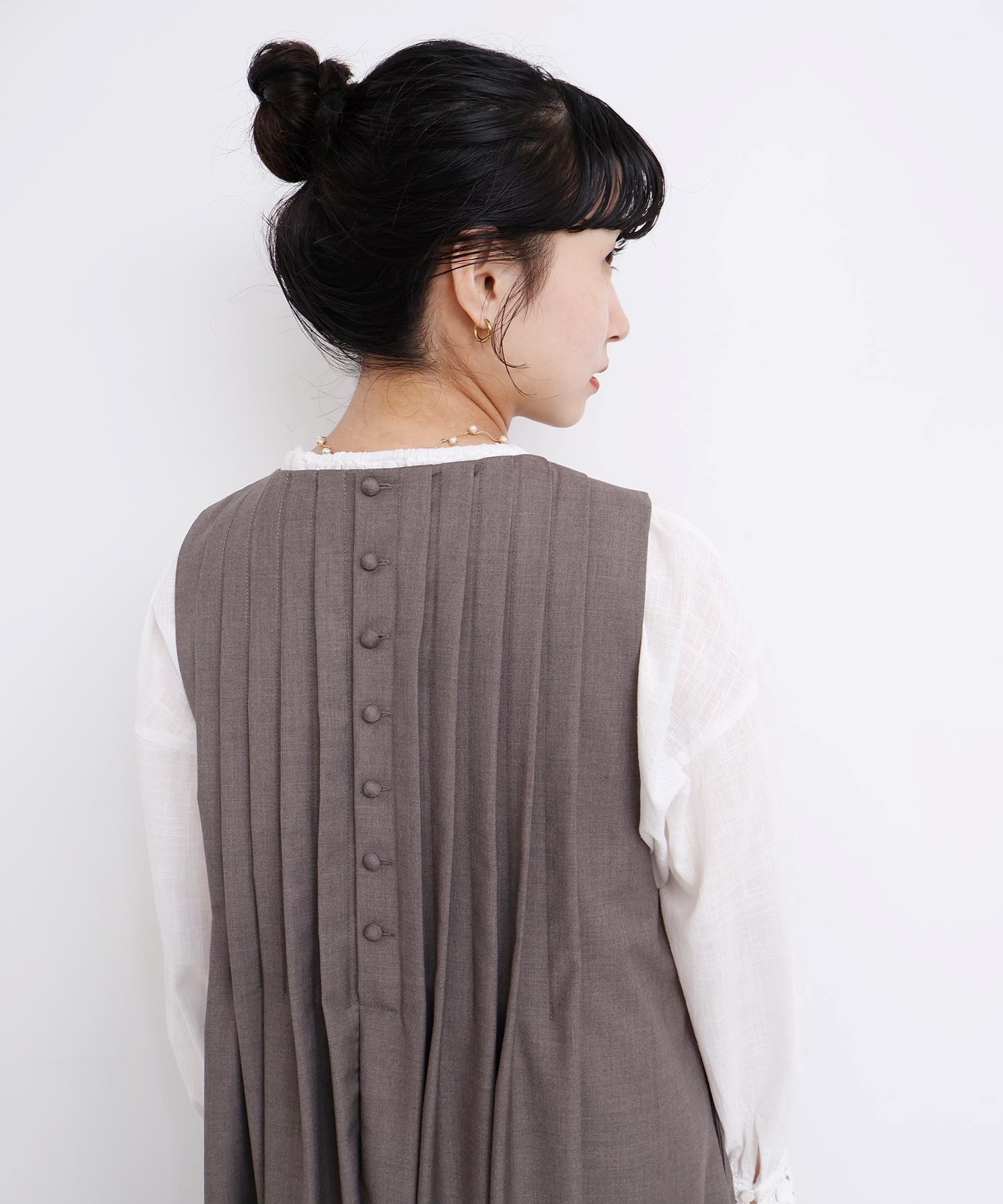 アクセントになるボタン使いでバックスタイルも素敵な1着です。