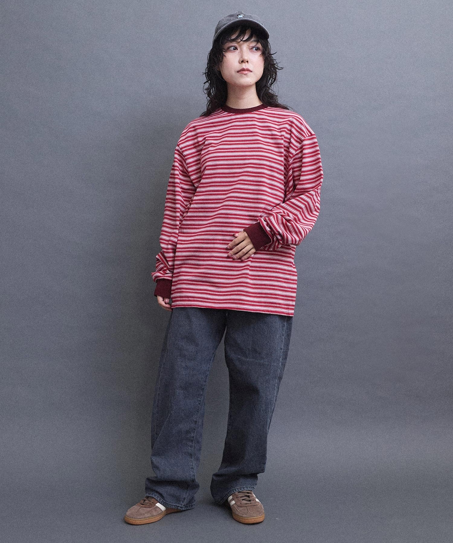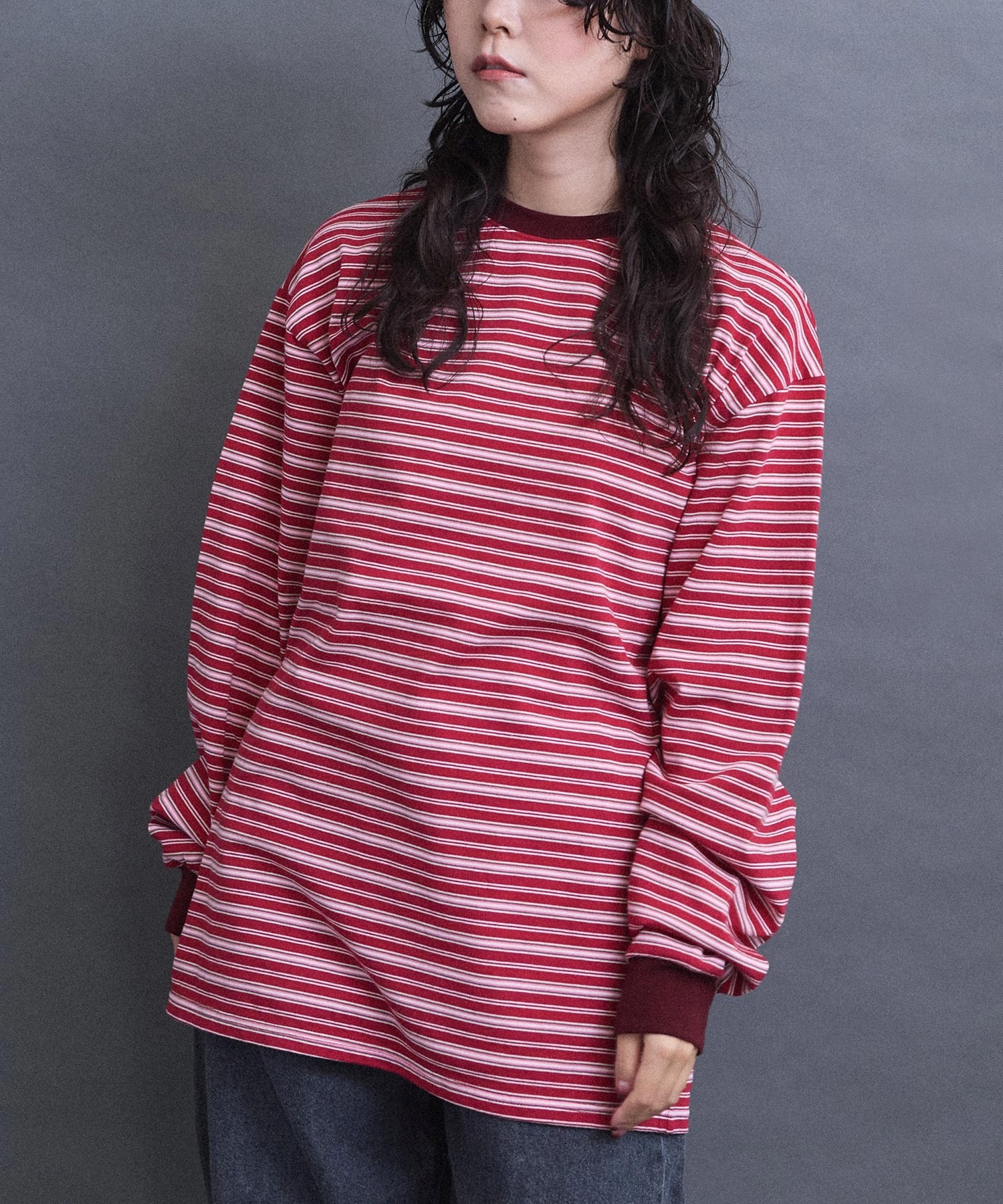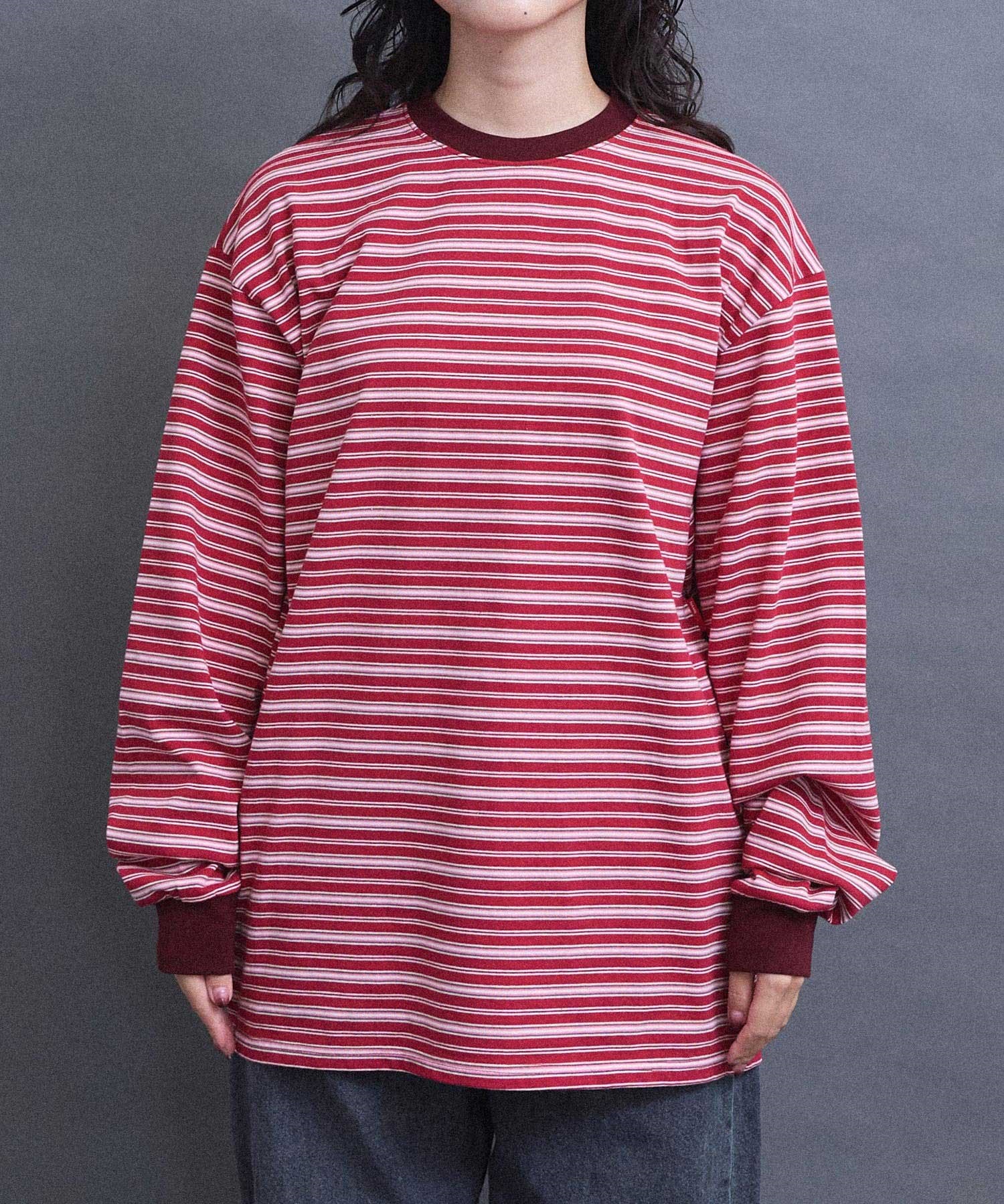 メンズライクなムードのマルチボーダーロンT。