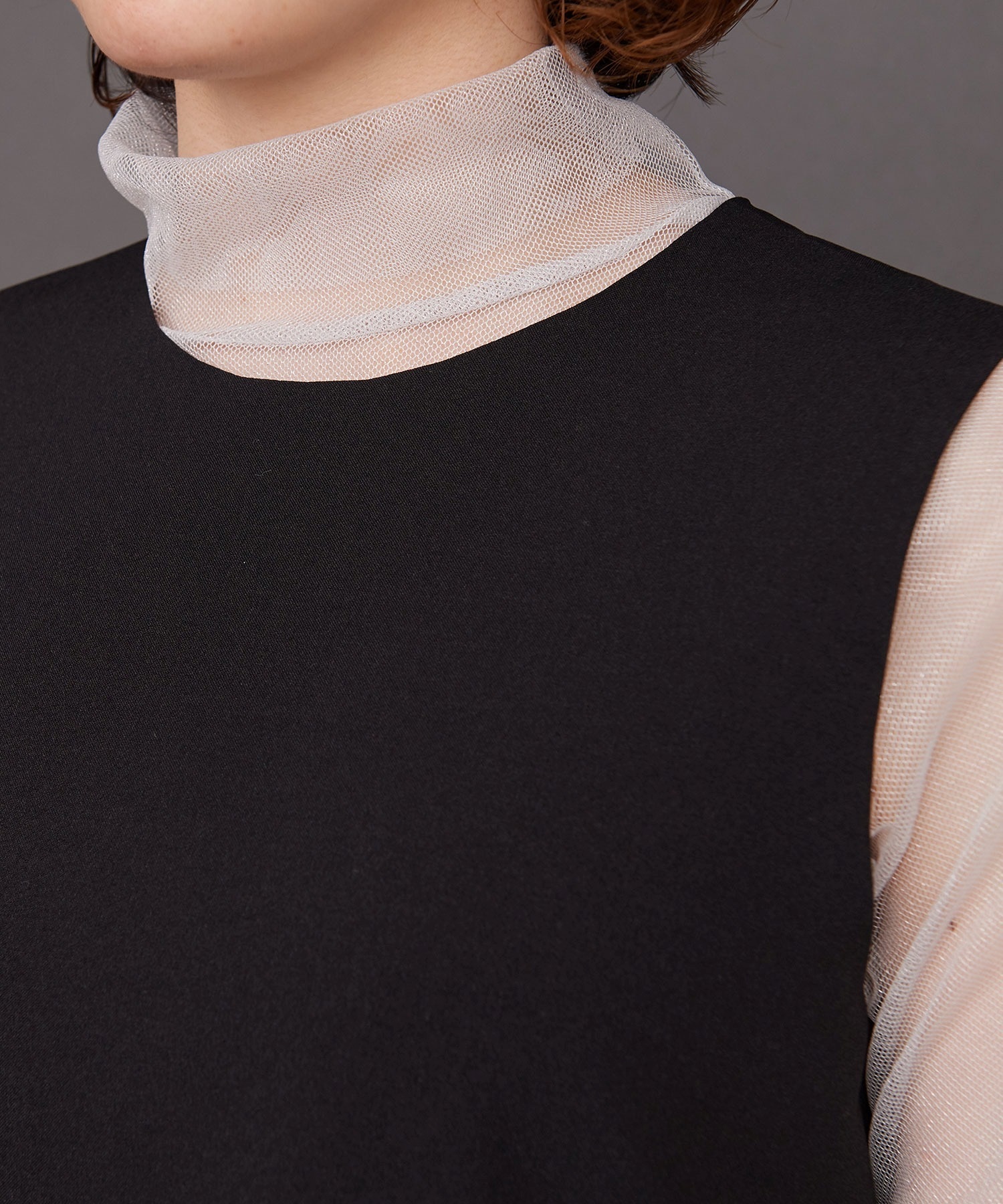 シアーなカットソー、衿や袖にデザインのあるブラウスと合わせたりして楽しんで。