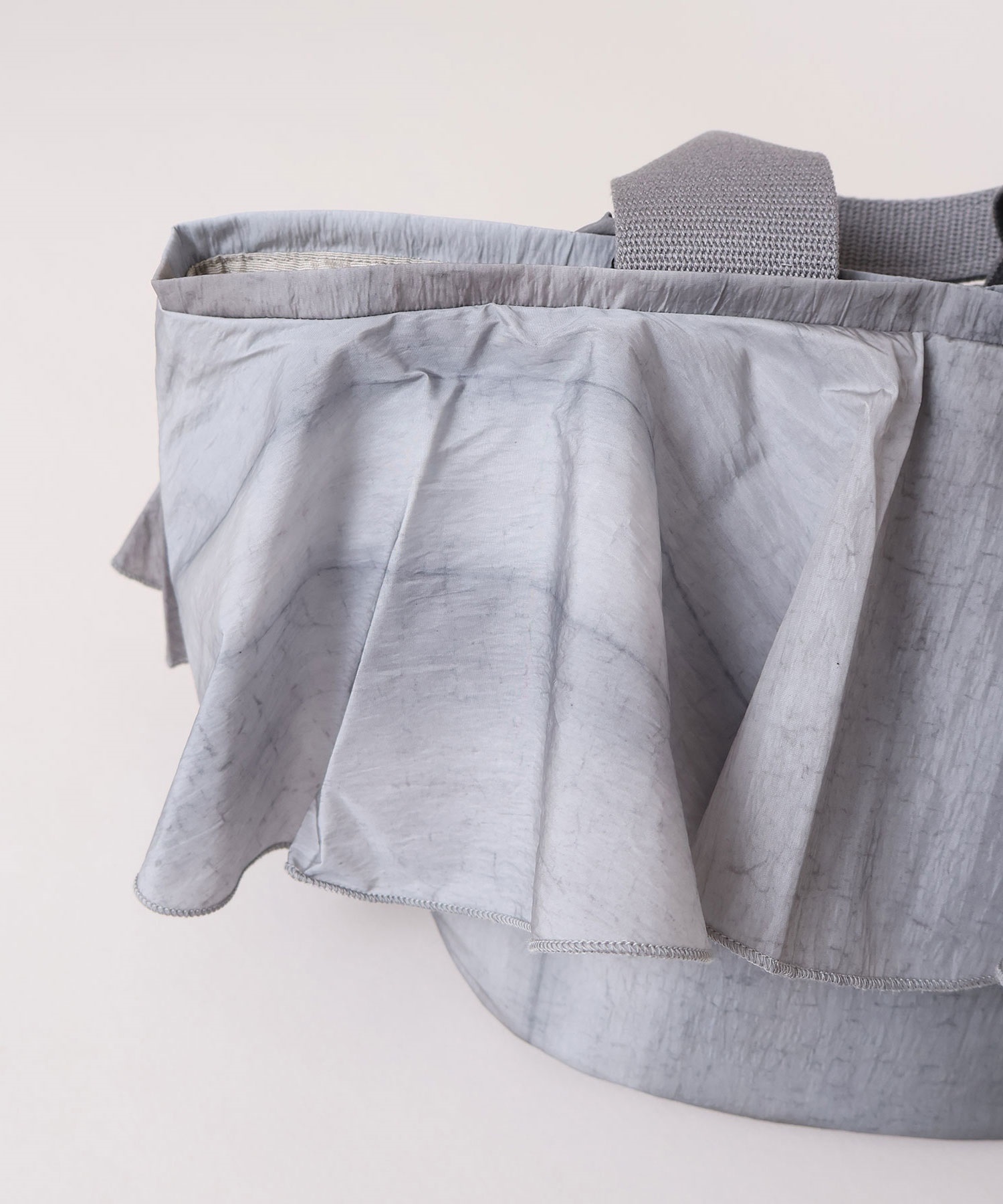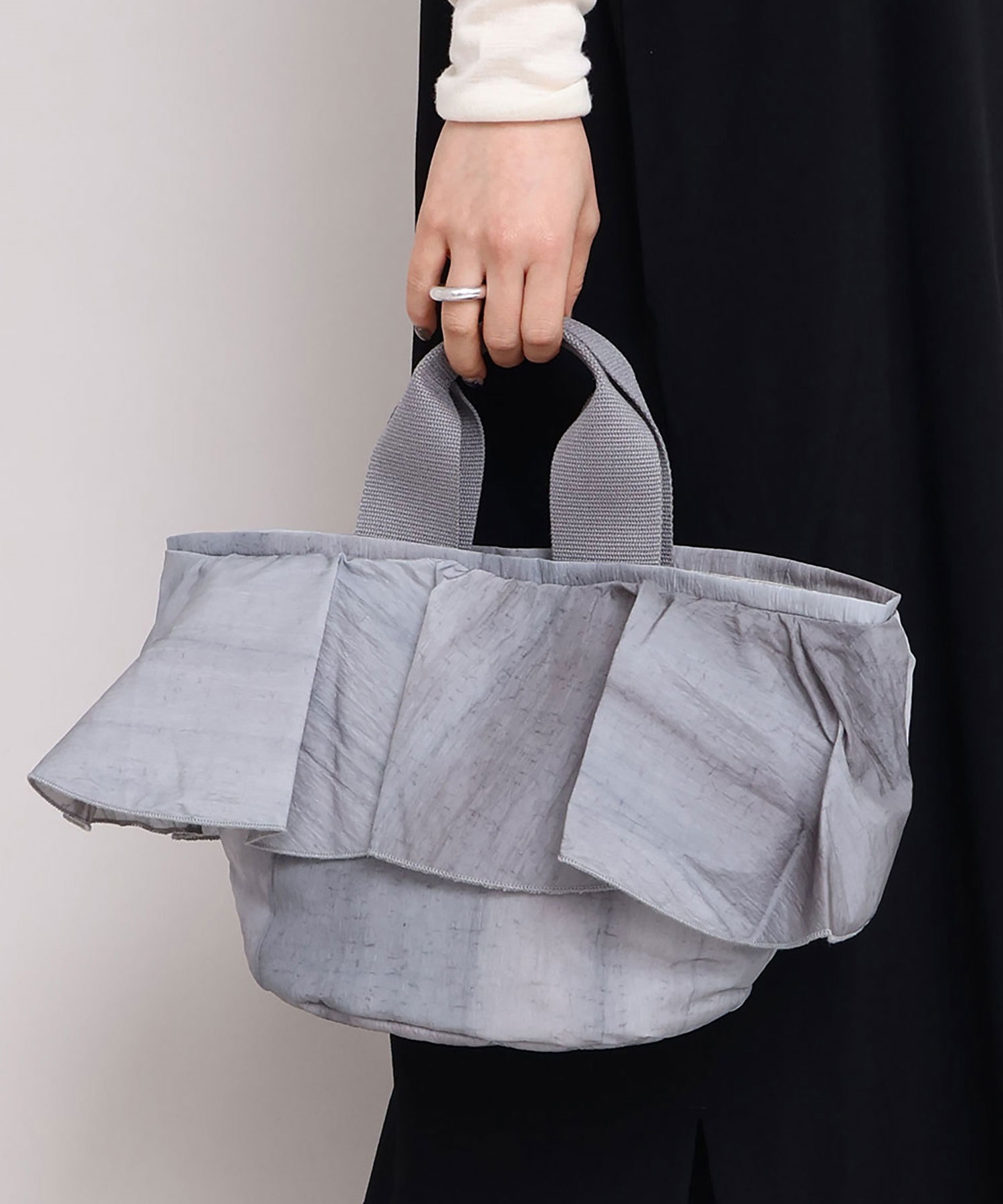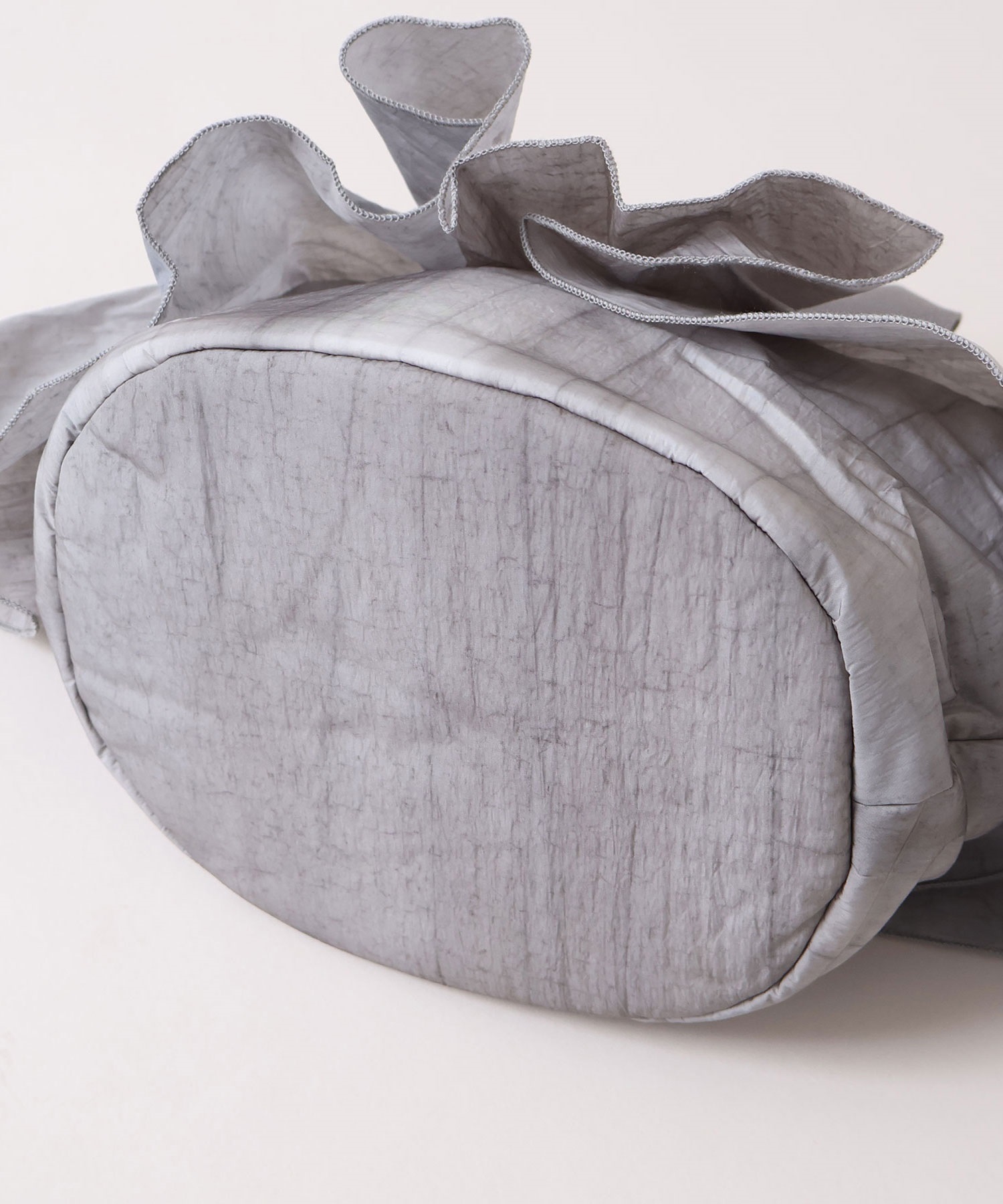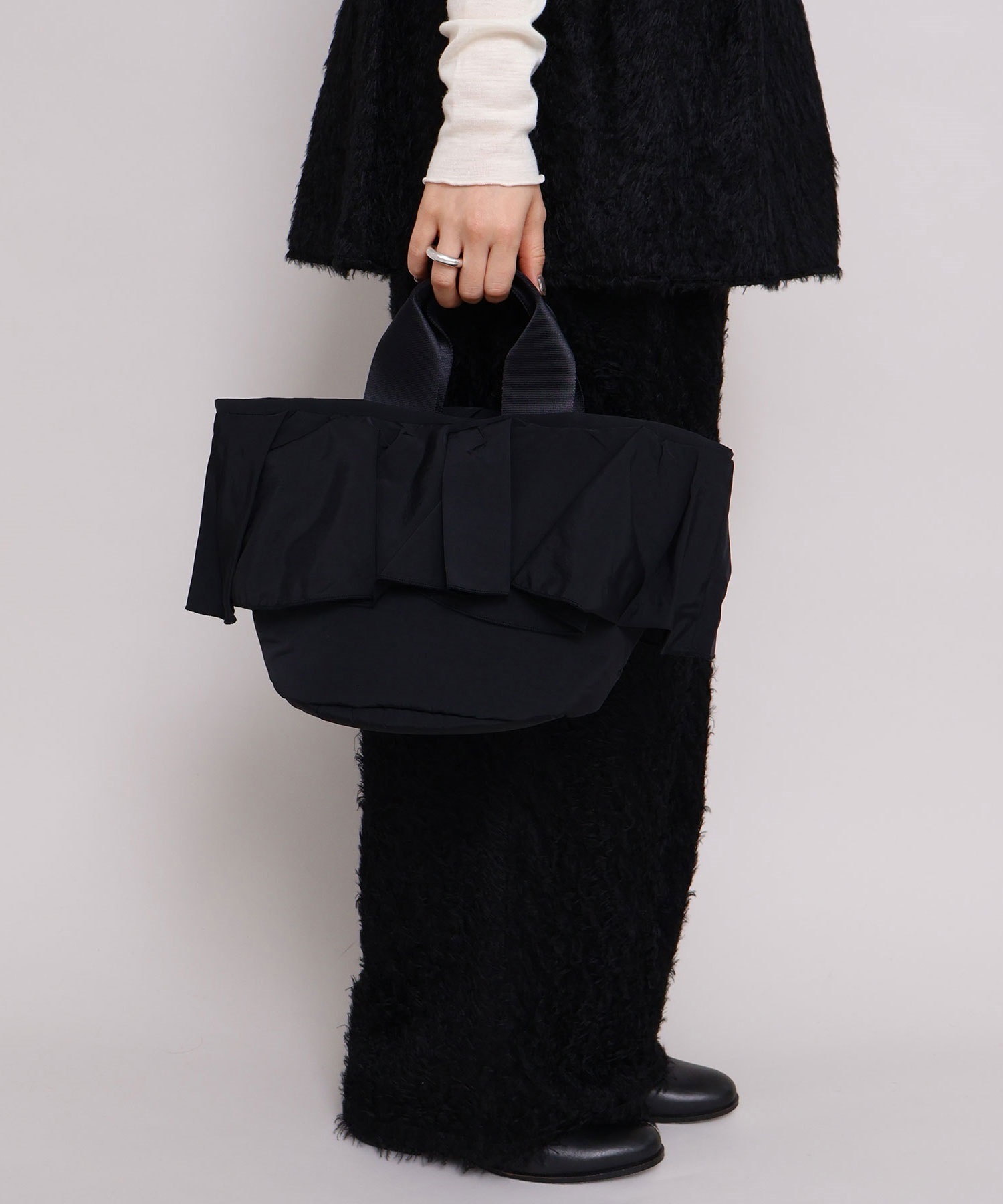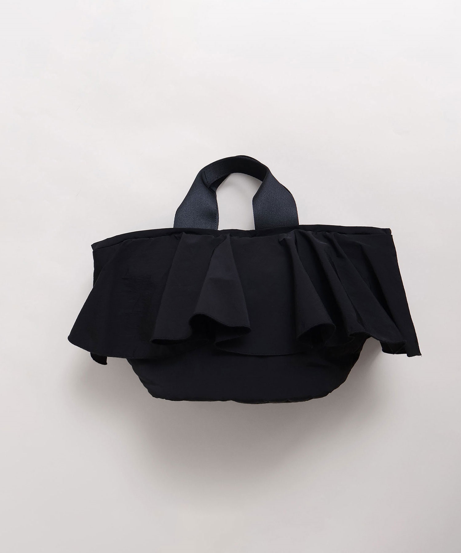 高密度ナイロンを使用したたっぷりボリュームのラッフルデザインバッグ。