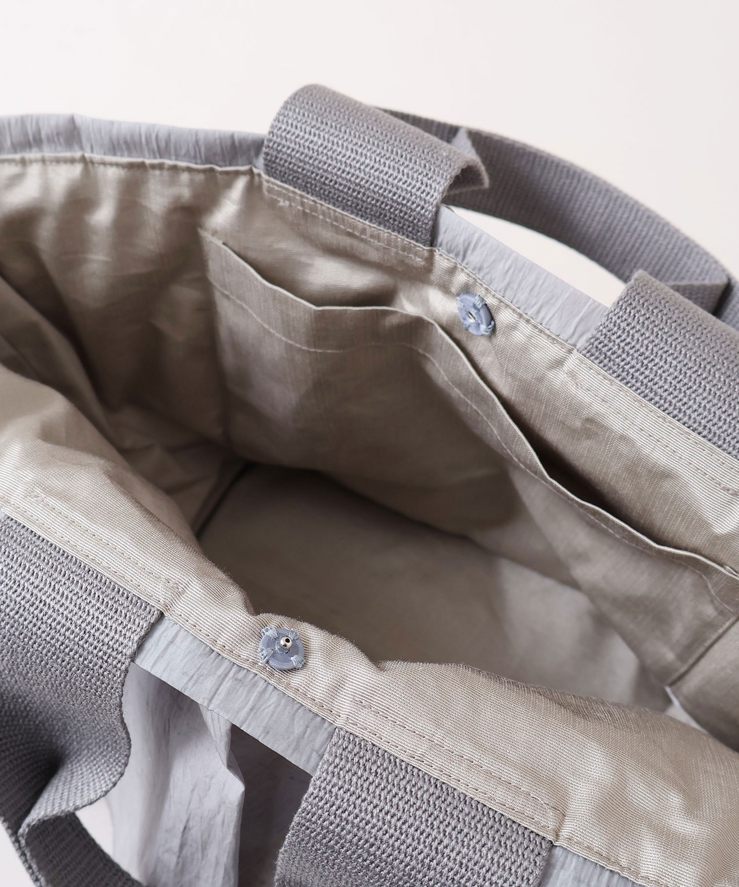 安心のスナップボタン付き。内ポケットあり。