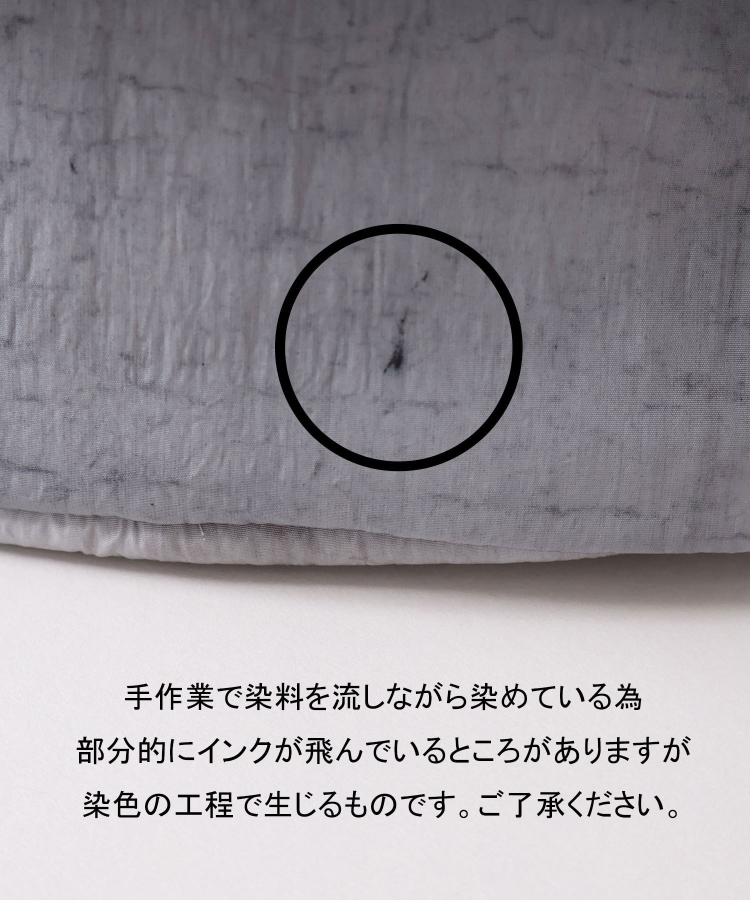 部分部分によってはインクが飛んでいる部分が有りますが染色の工程で生じた物の為、品質には問題はございません。