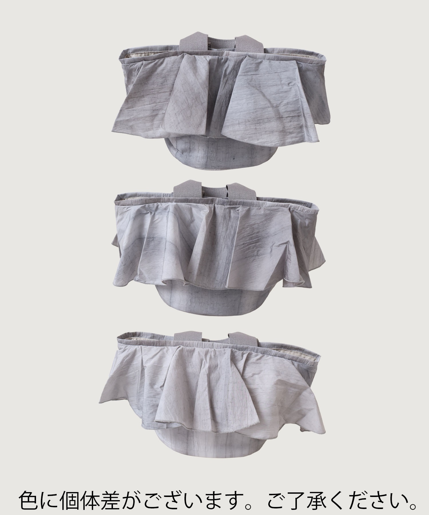 グレーはハリあるブライトナイロンに流し染めを施した縦のムラ染めが特徴のタフタ生地を使用。
