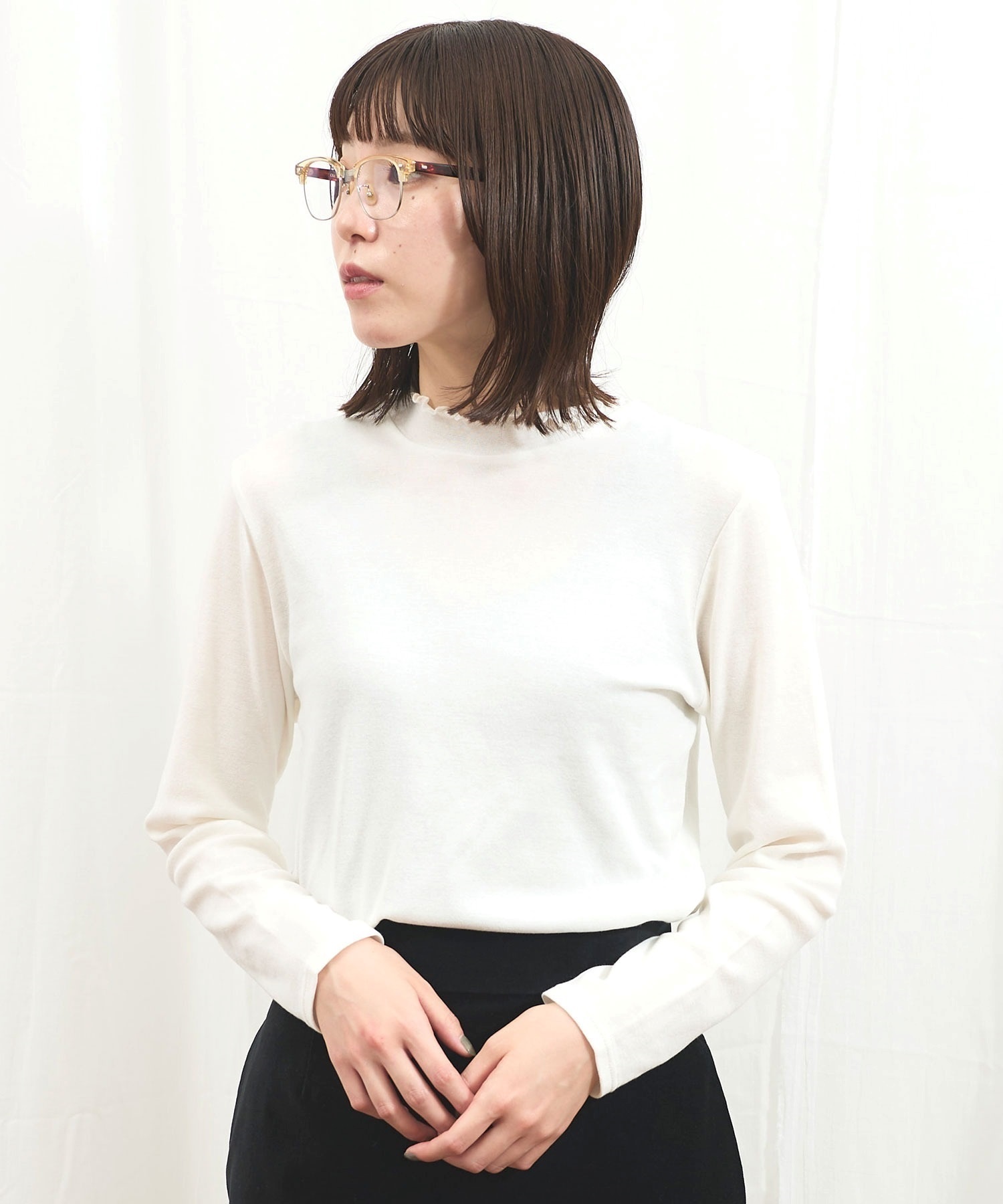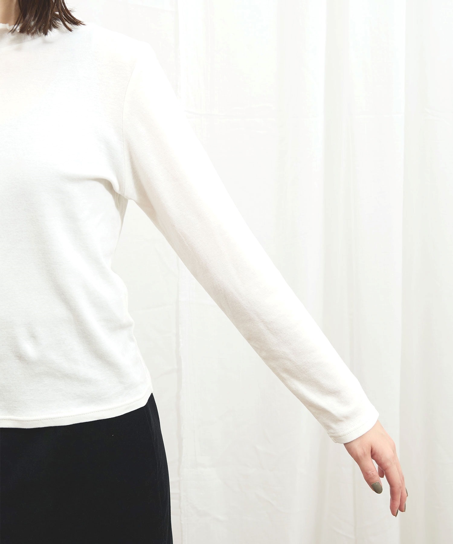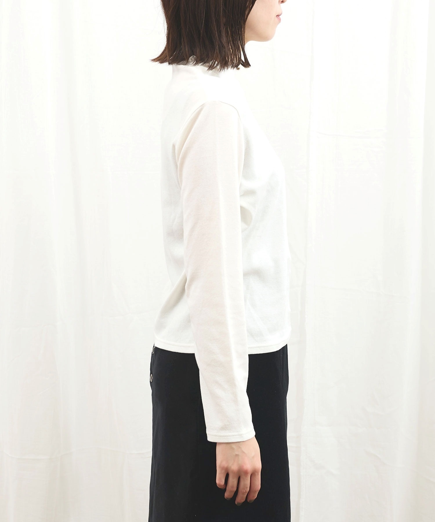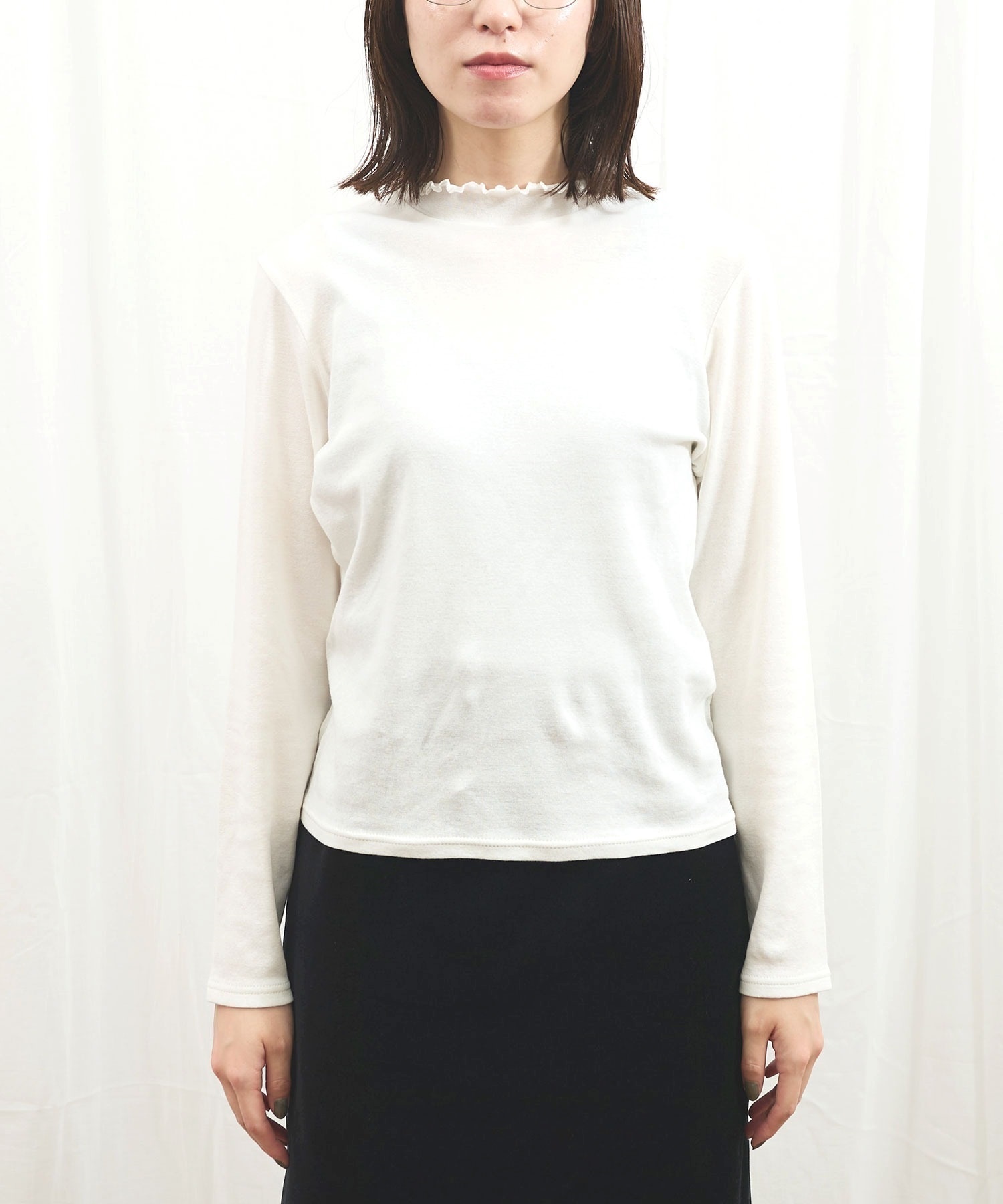 ありそうでないやや低めの衿。首が詰まったものが苦手な方にもおすすめしたい1枚です。