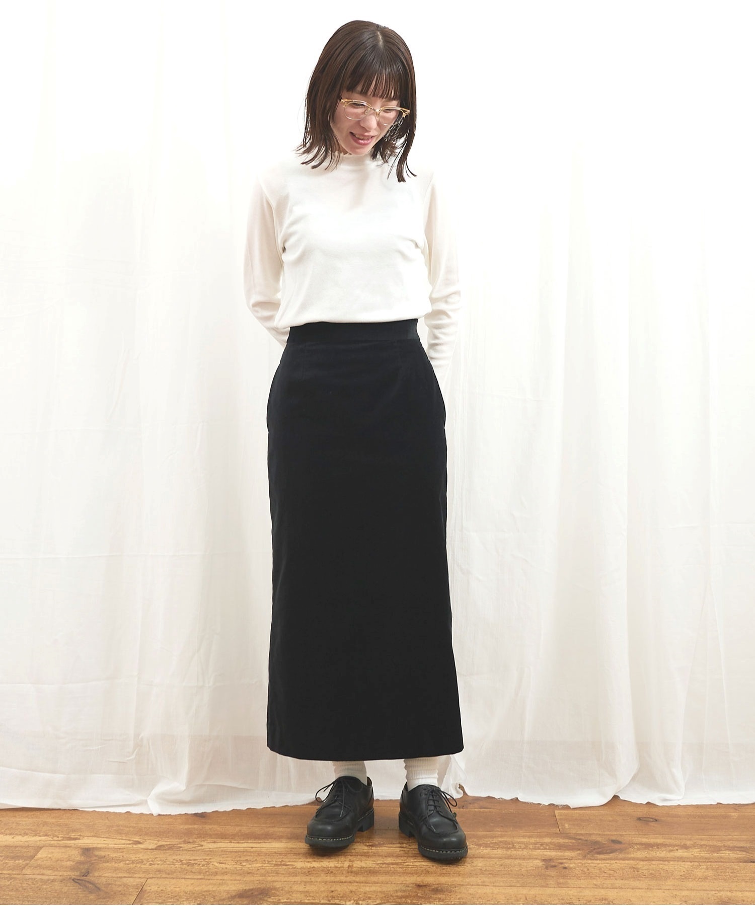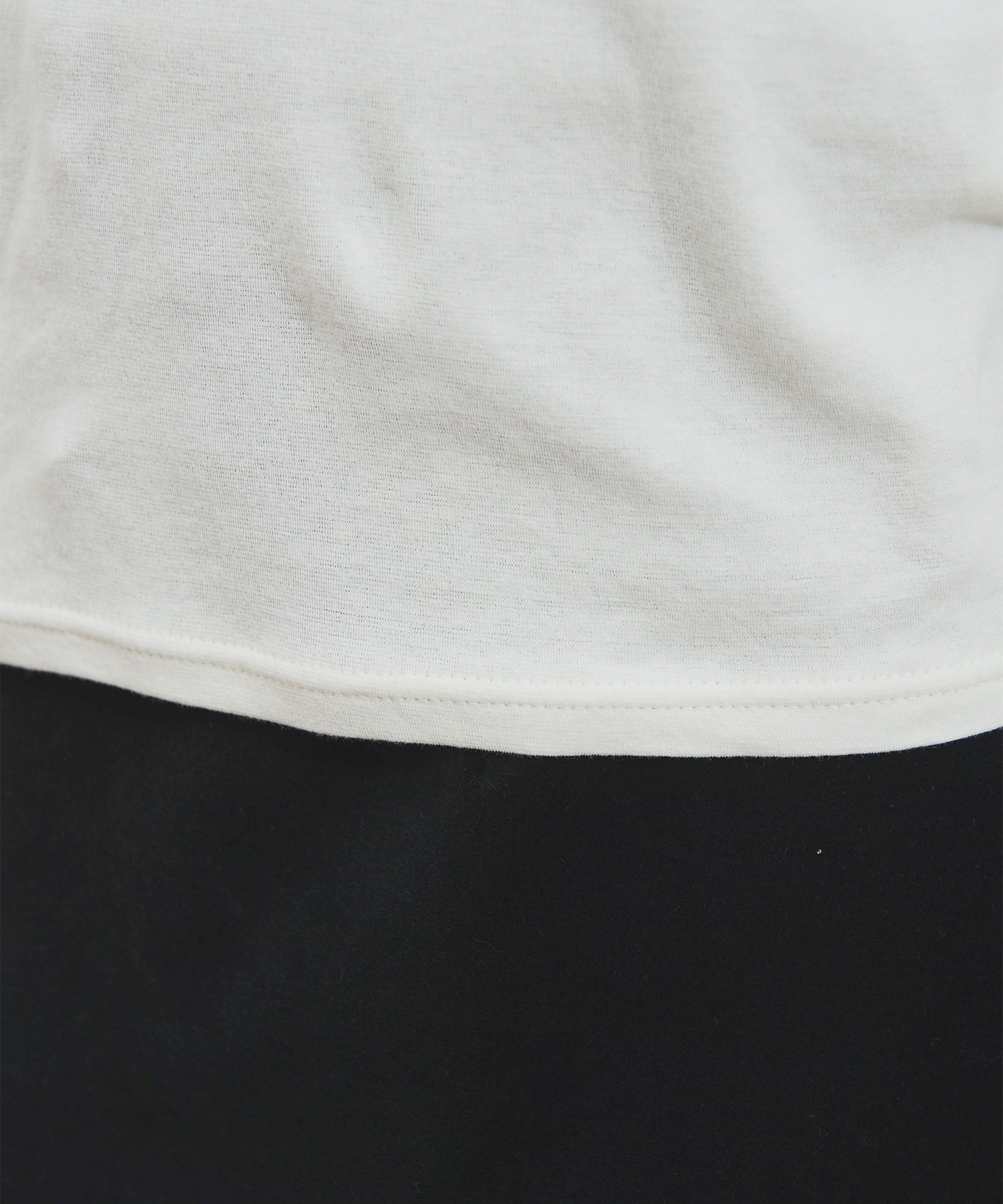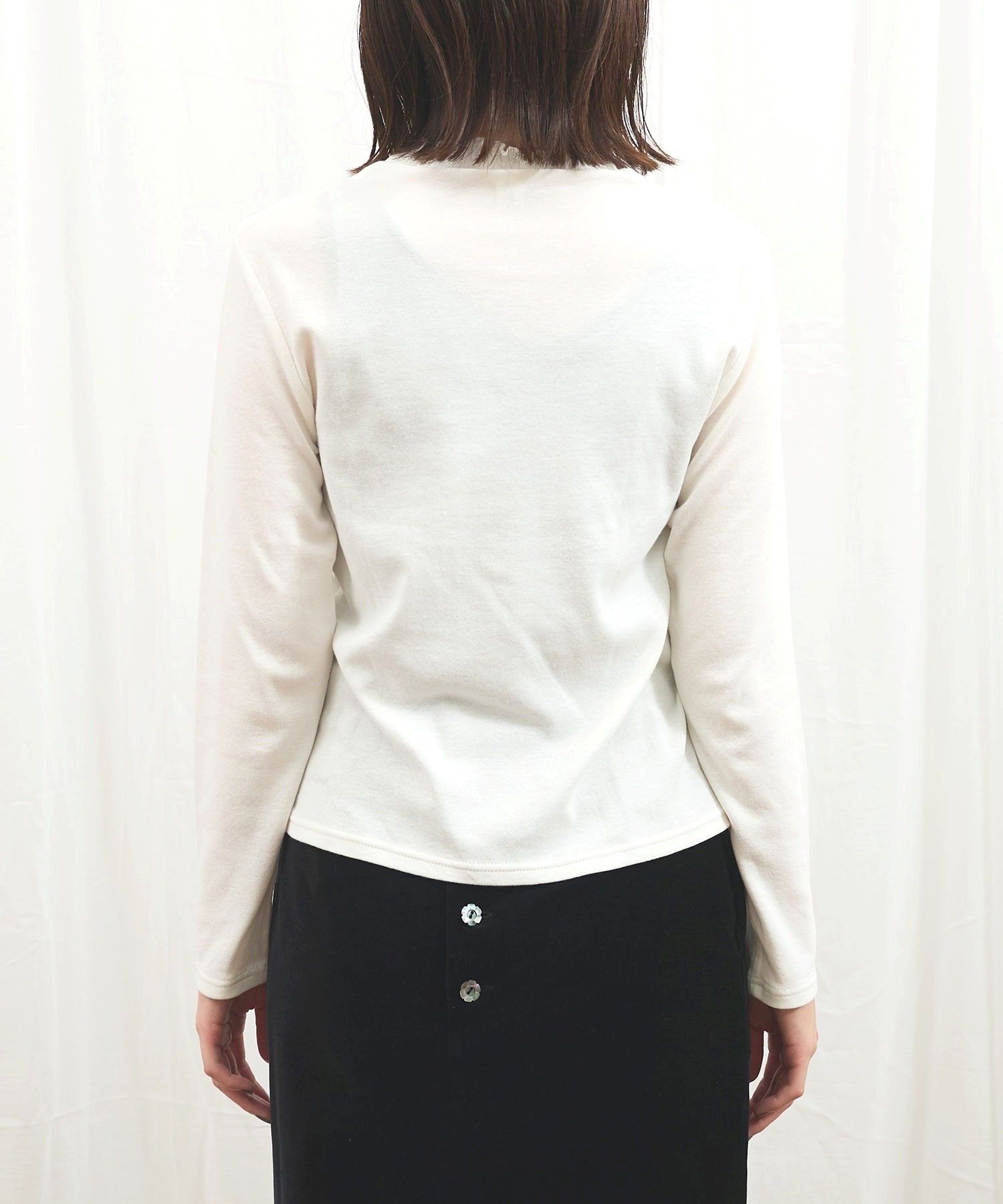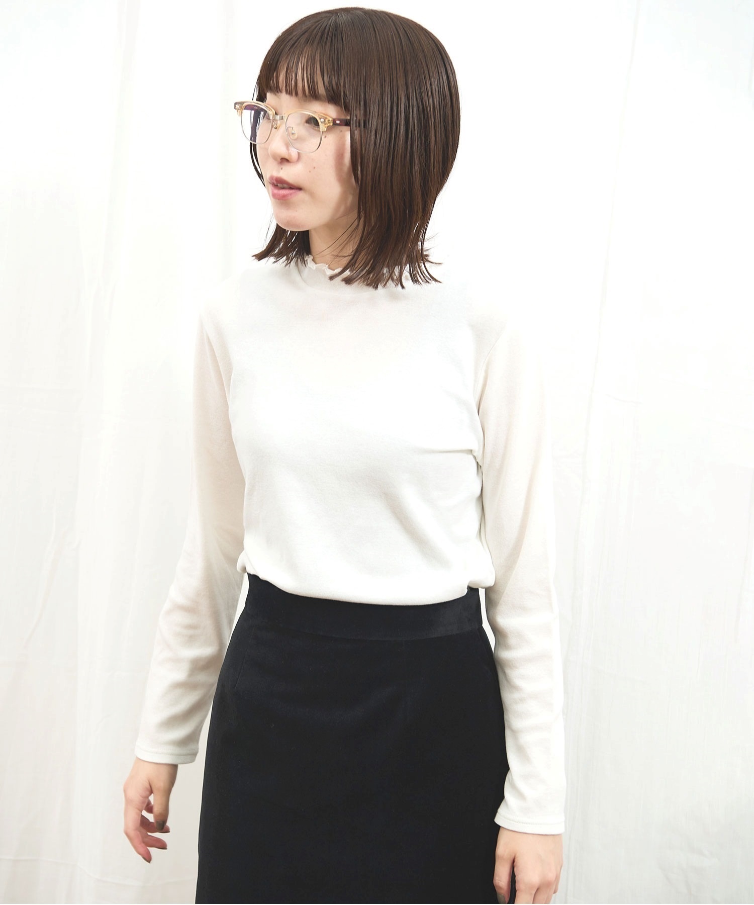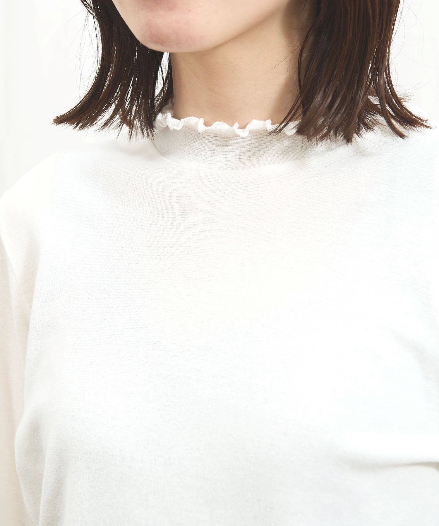 ありそうでないやや低めの衿。首が詰まったものが苦手な方にもおすすめしたい1枚です。