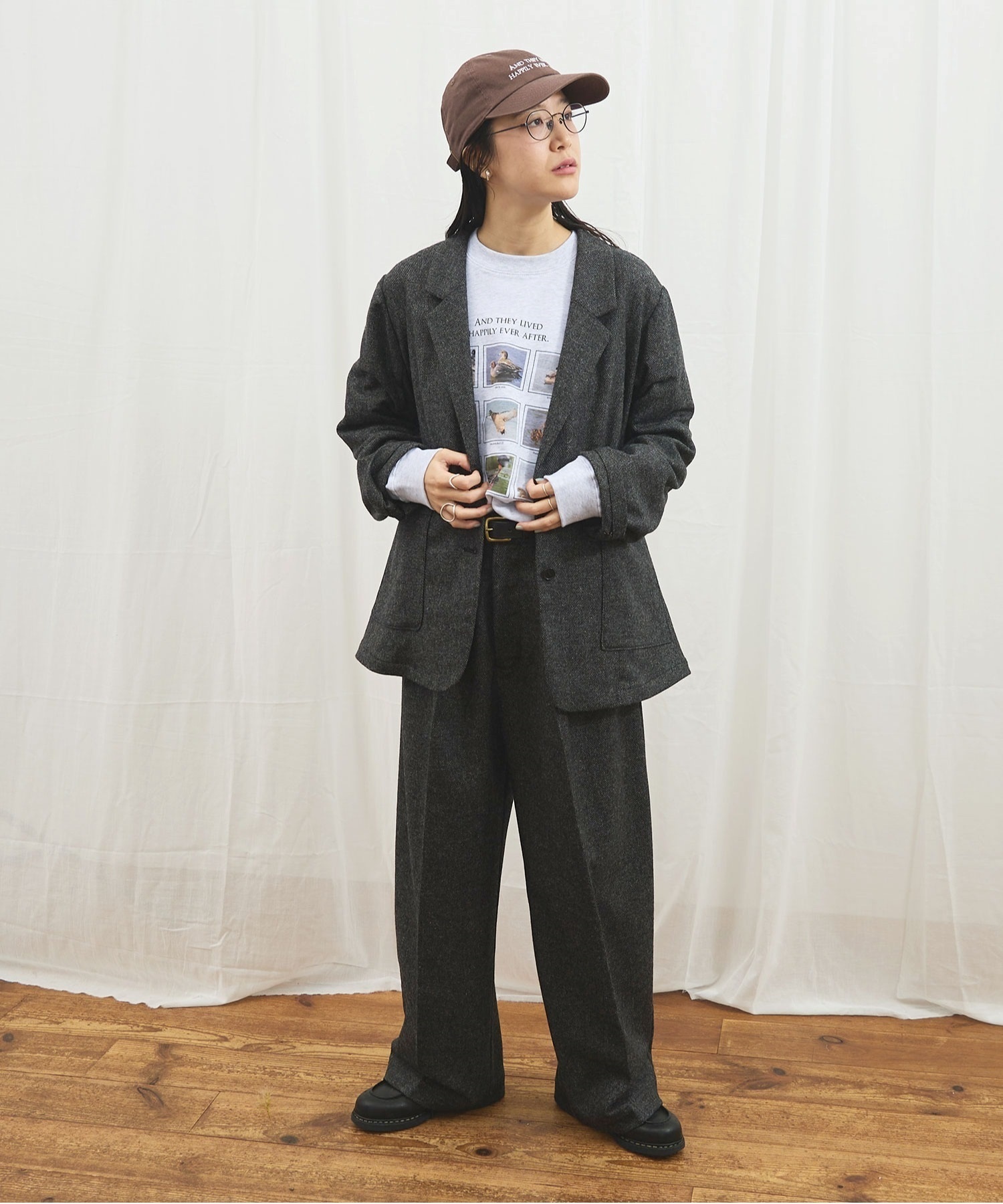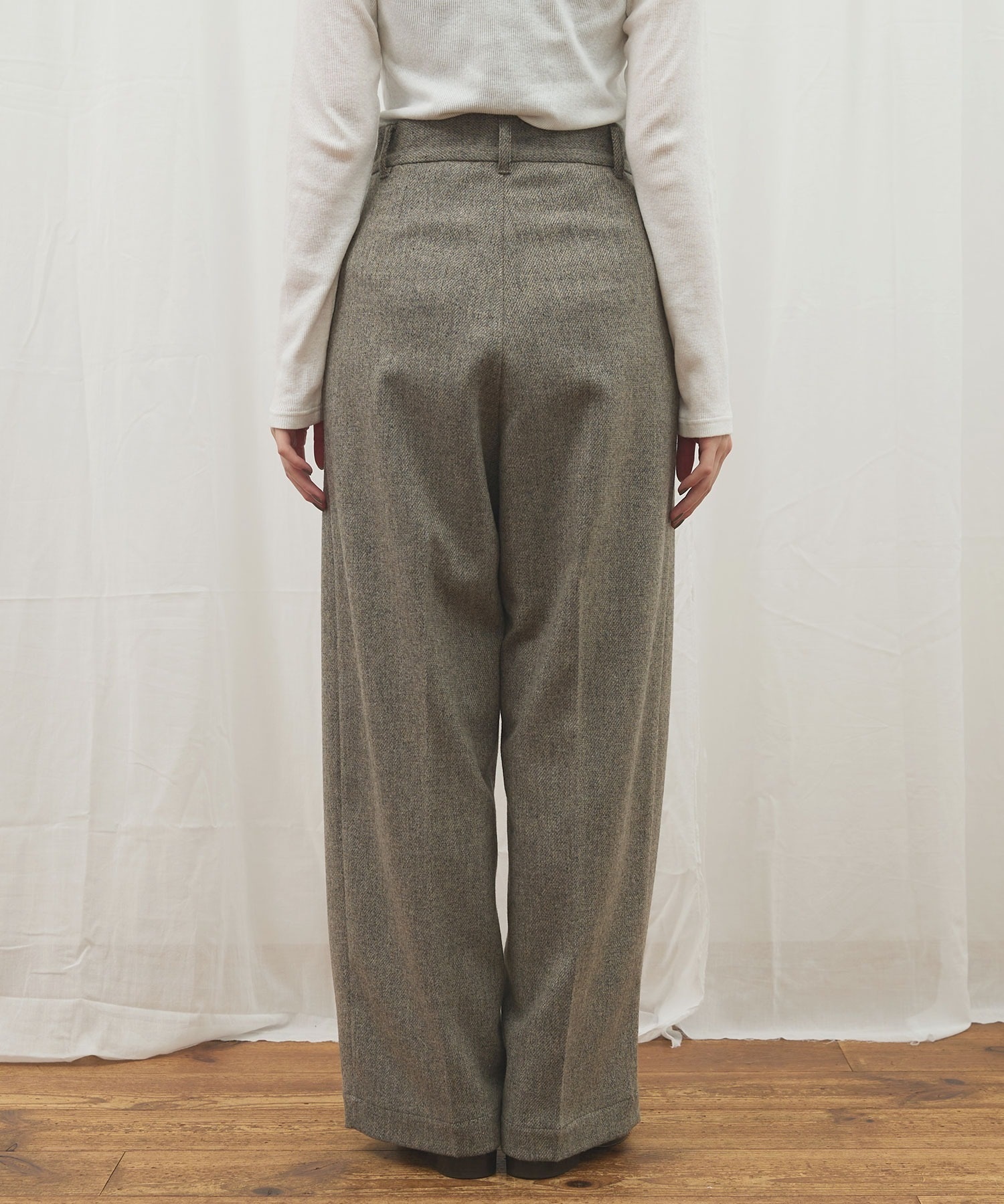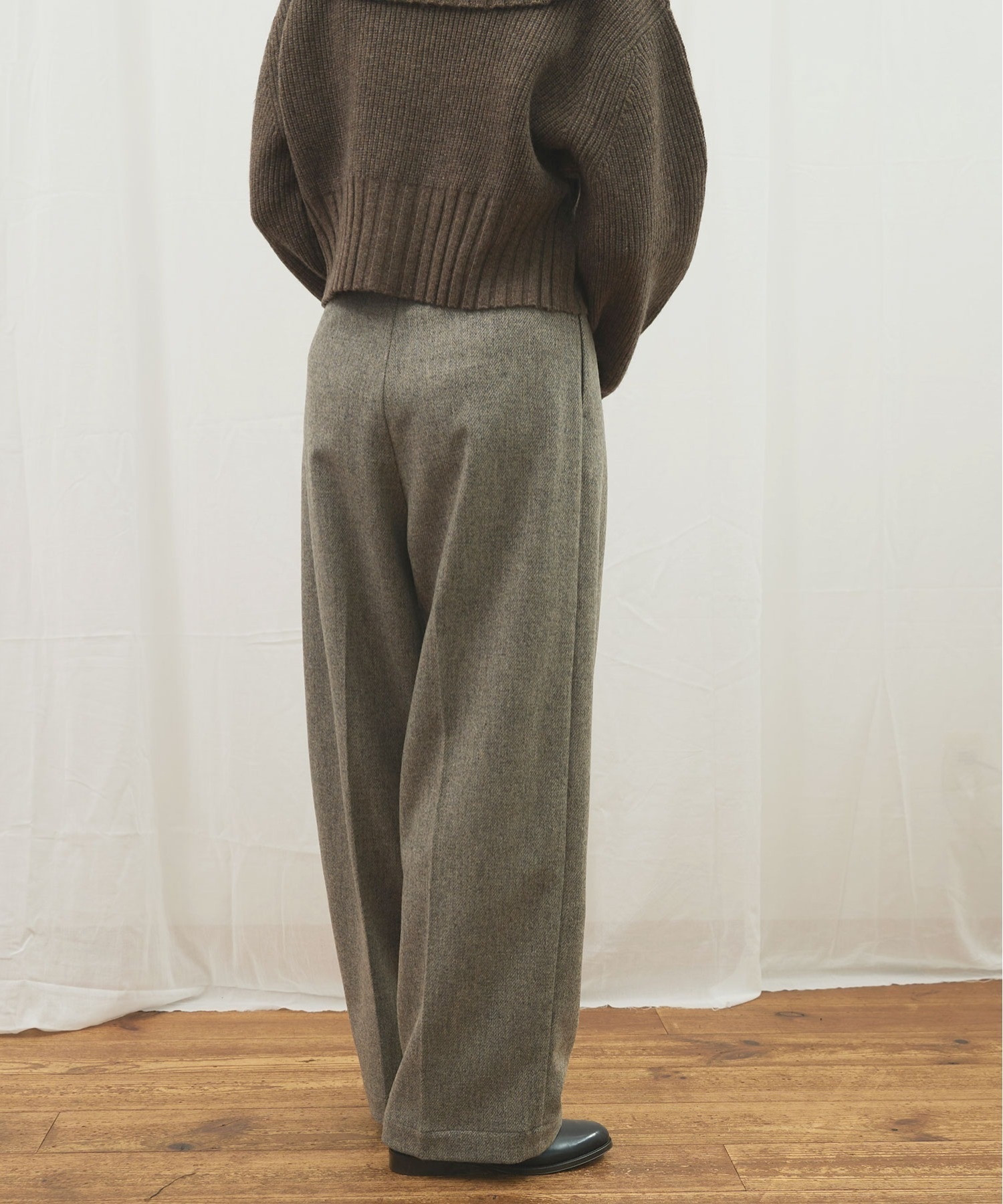 パンツは後ろ姿をすっきりクラシックに仕立て、秋冬の雰囲気を楽しめる1枚。