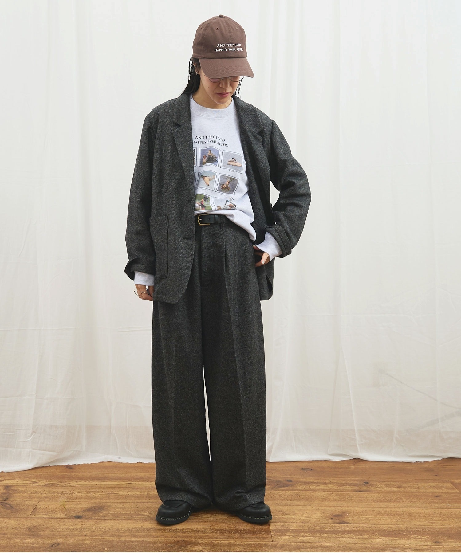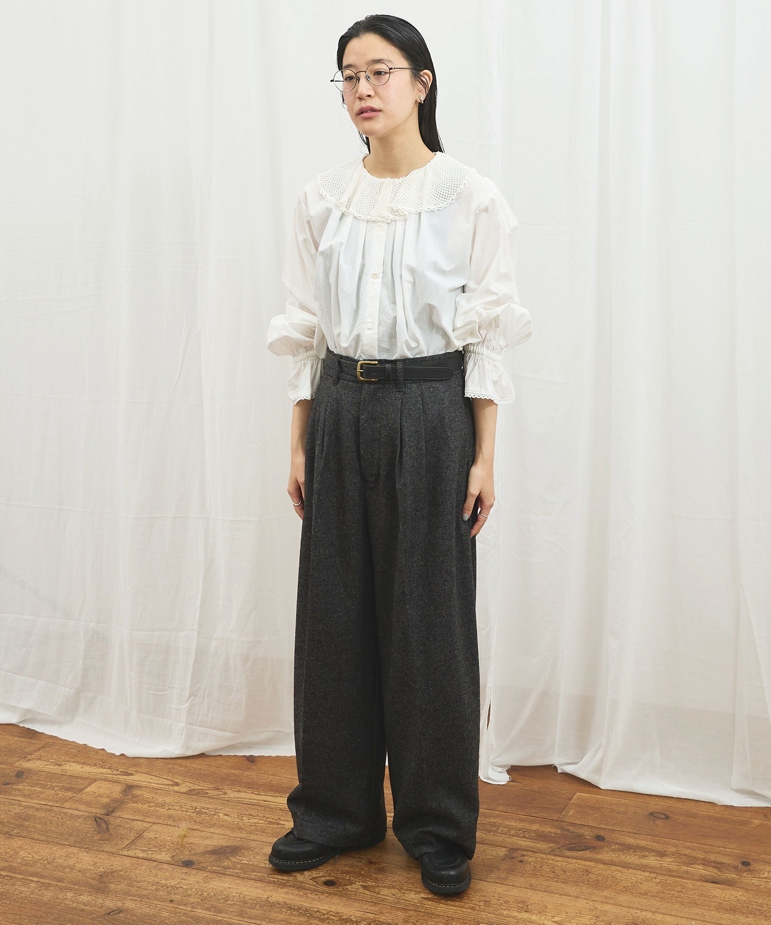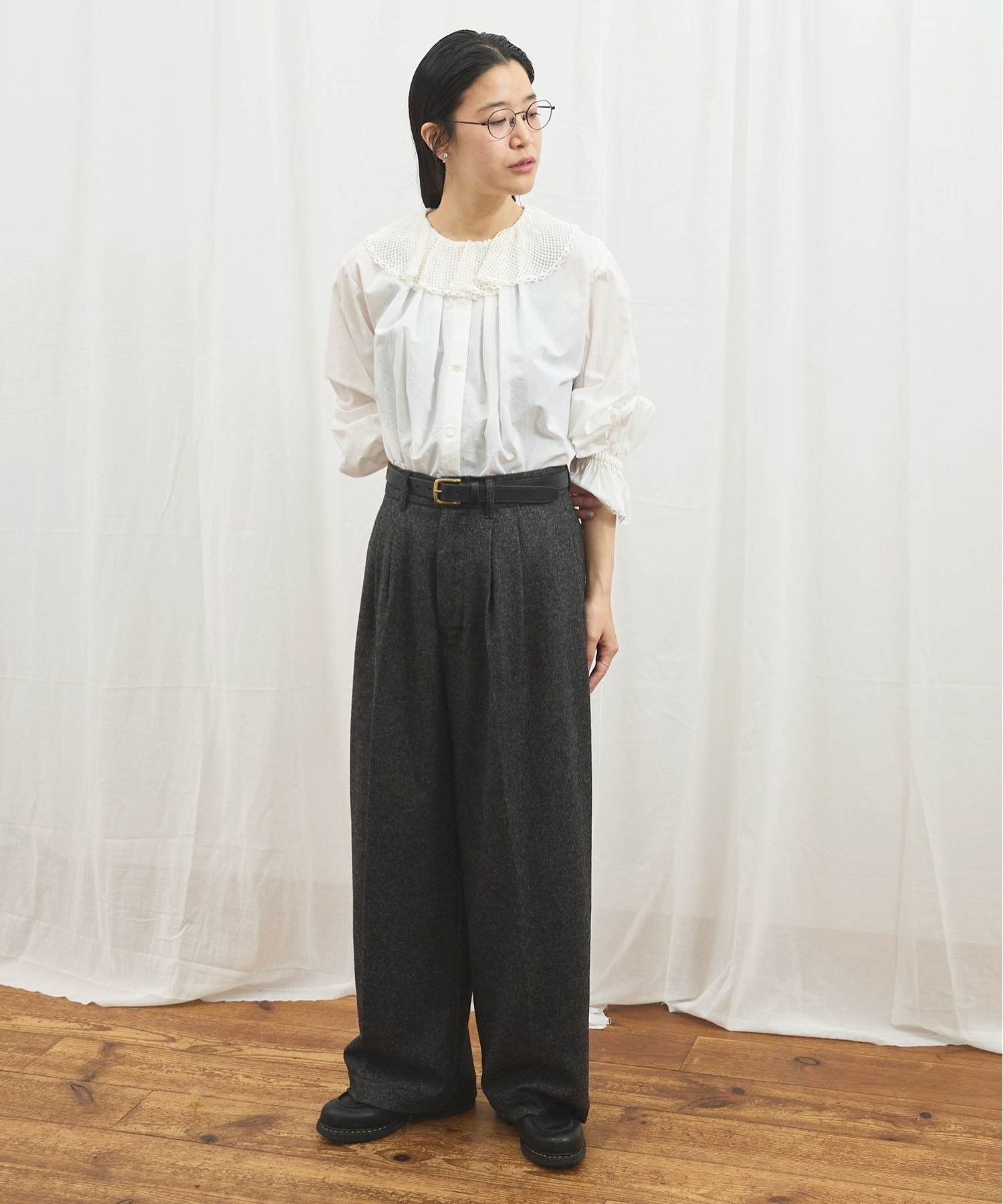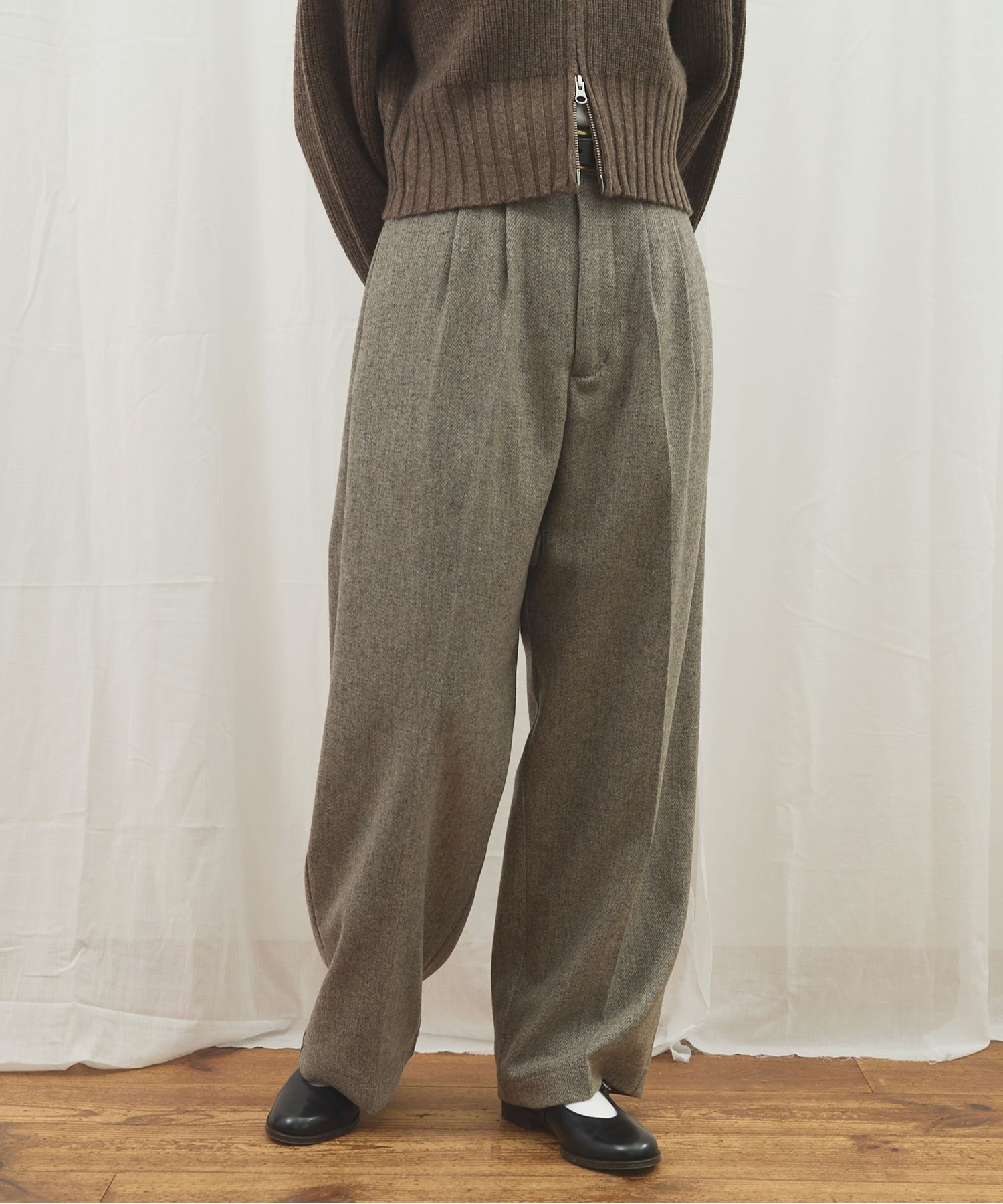 パンツは後ろ姿をすっきりクラシックに仕立て、秋冬の雰囲気を楽しめる1枚。