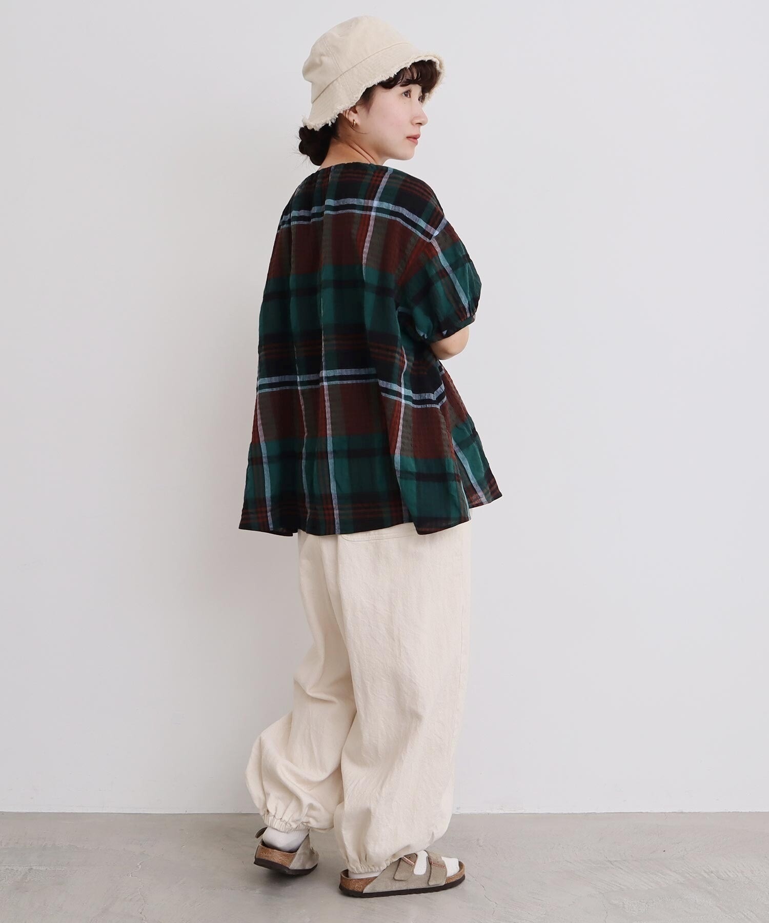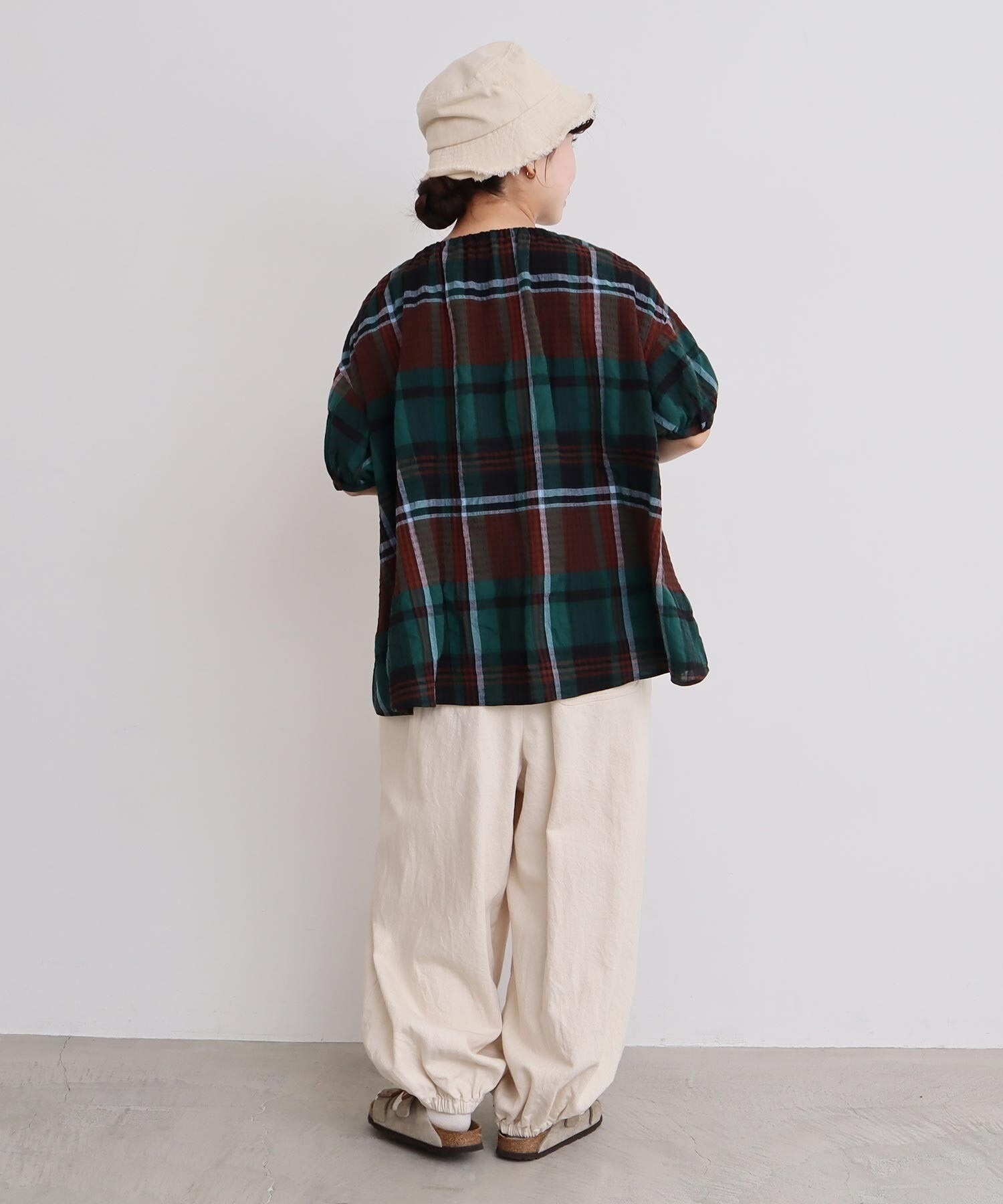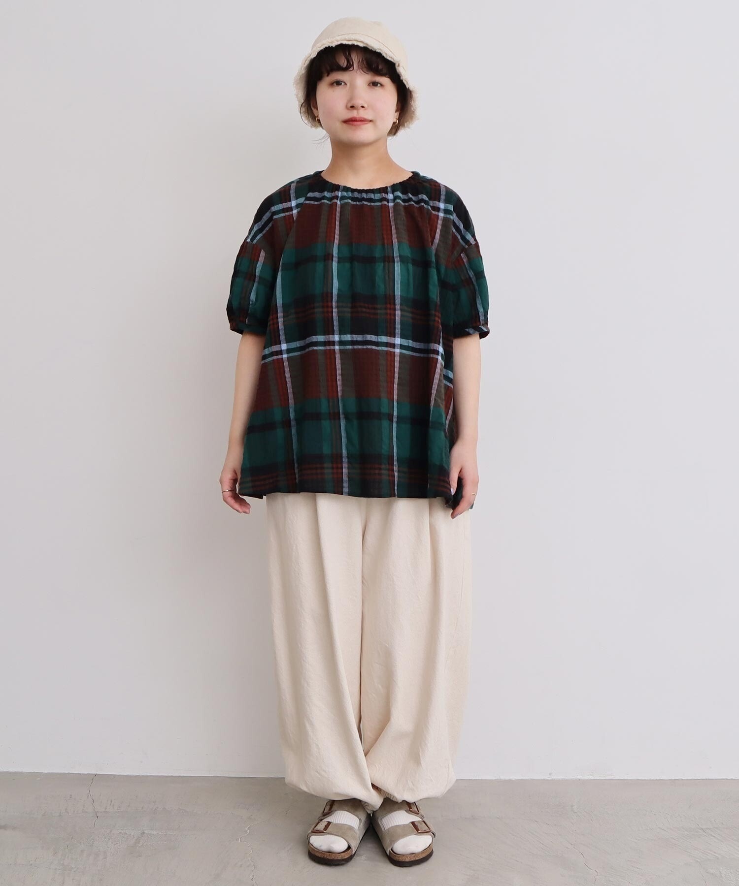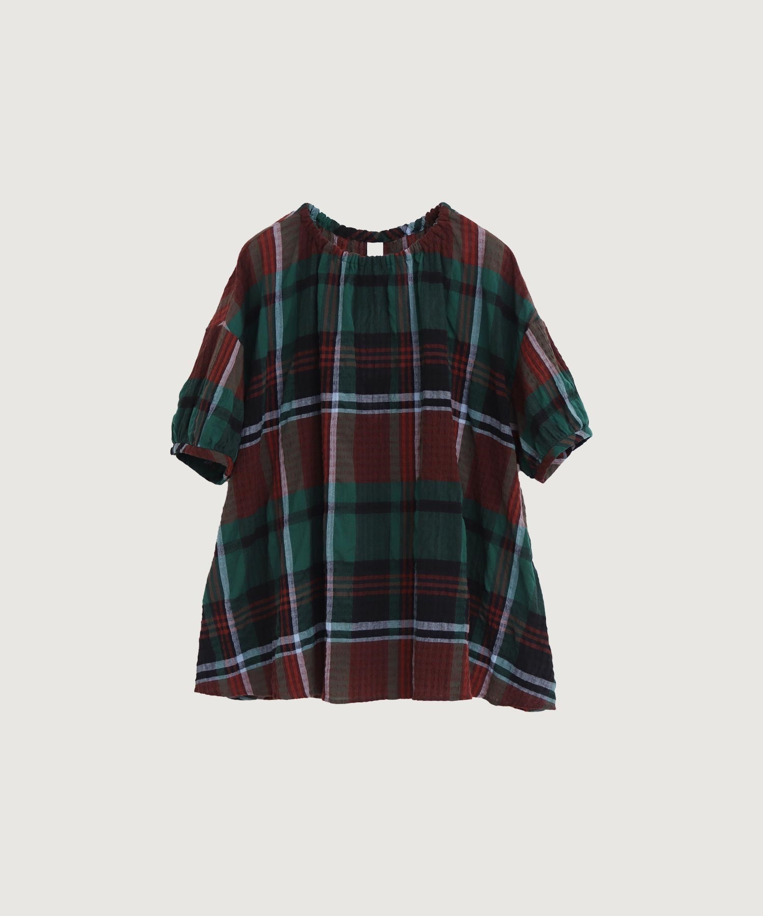 襟ぐりはゴム仕様で、すぽっと被って着られます。