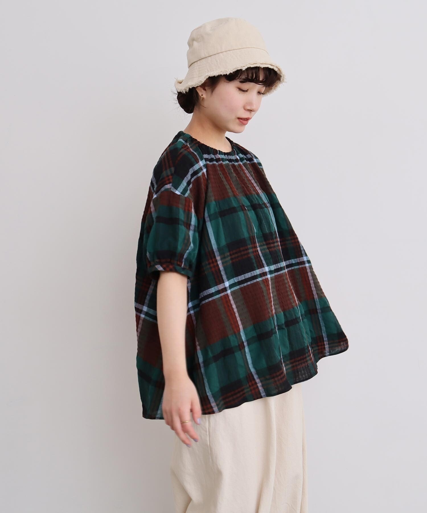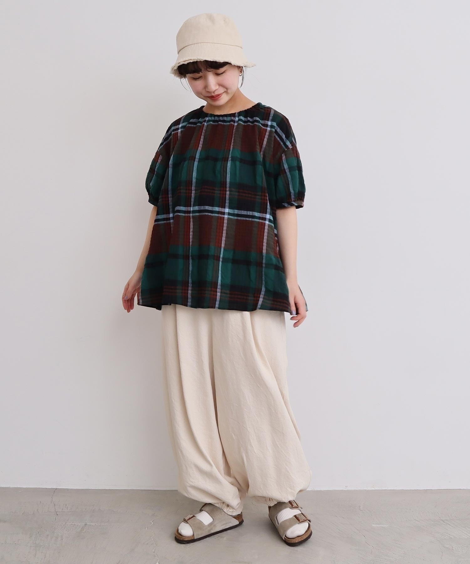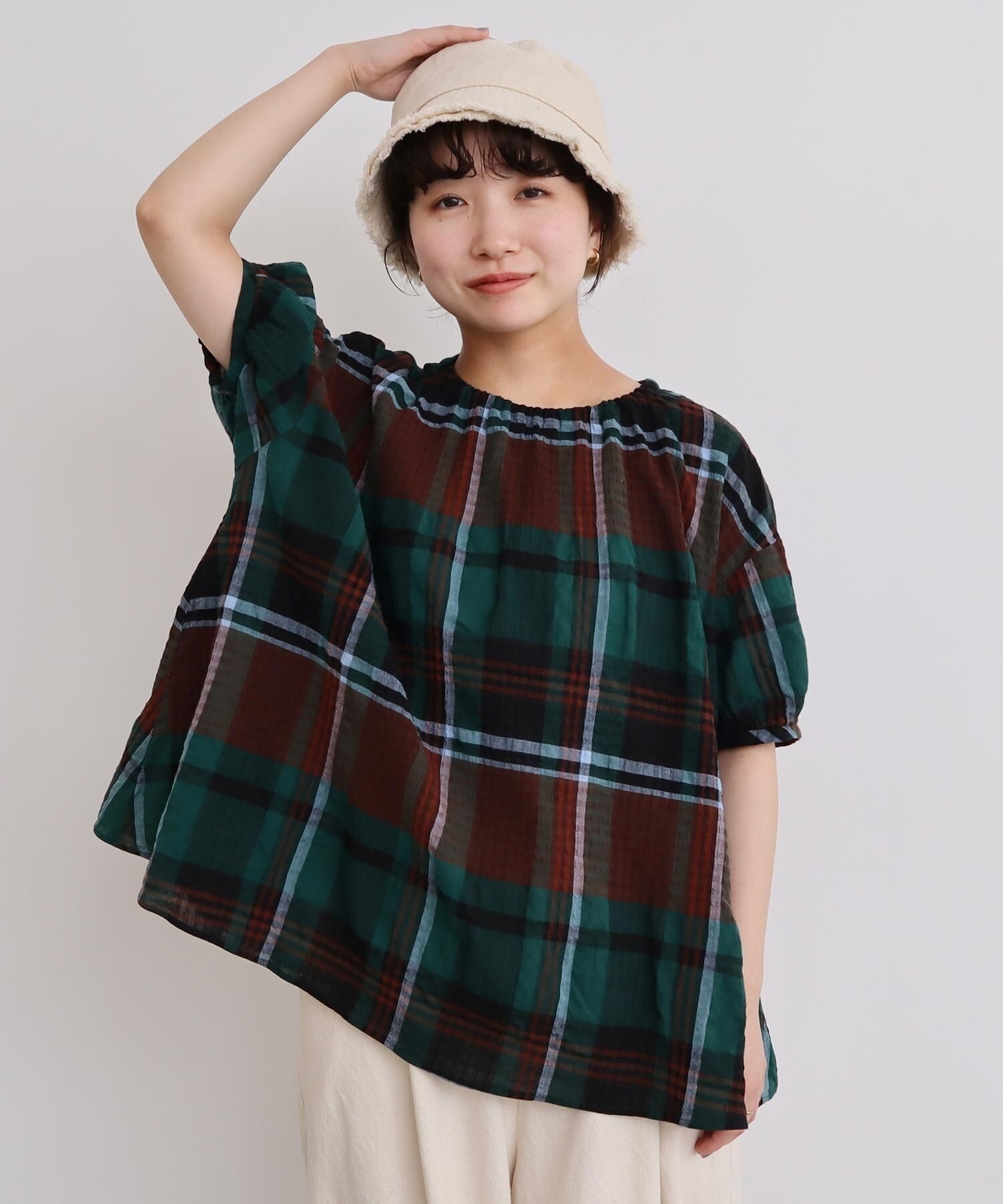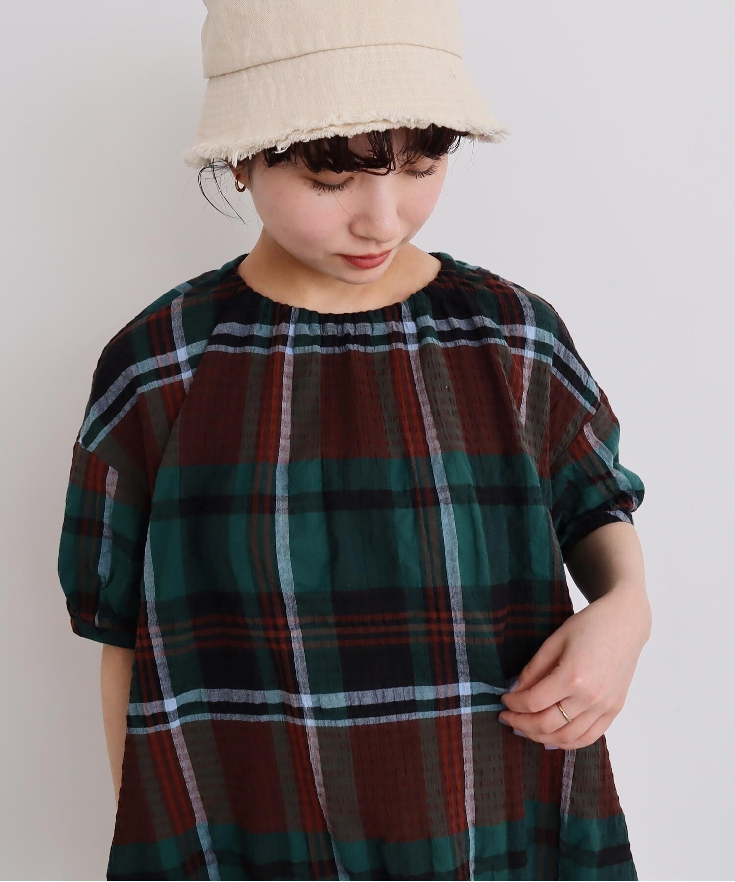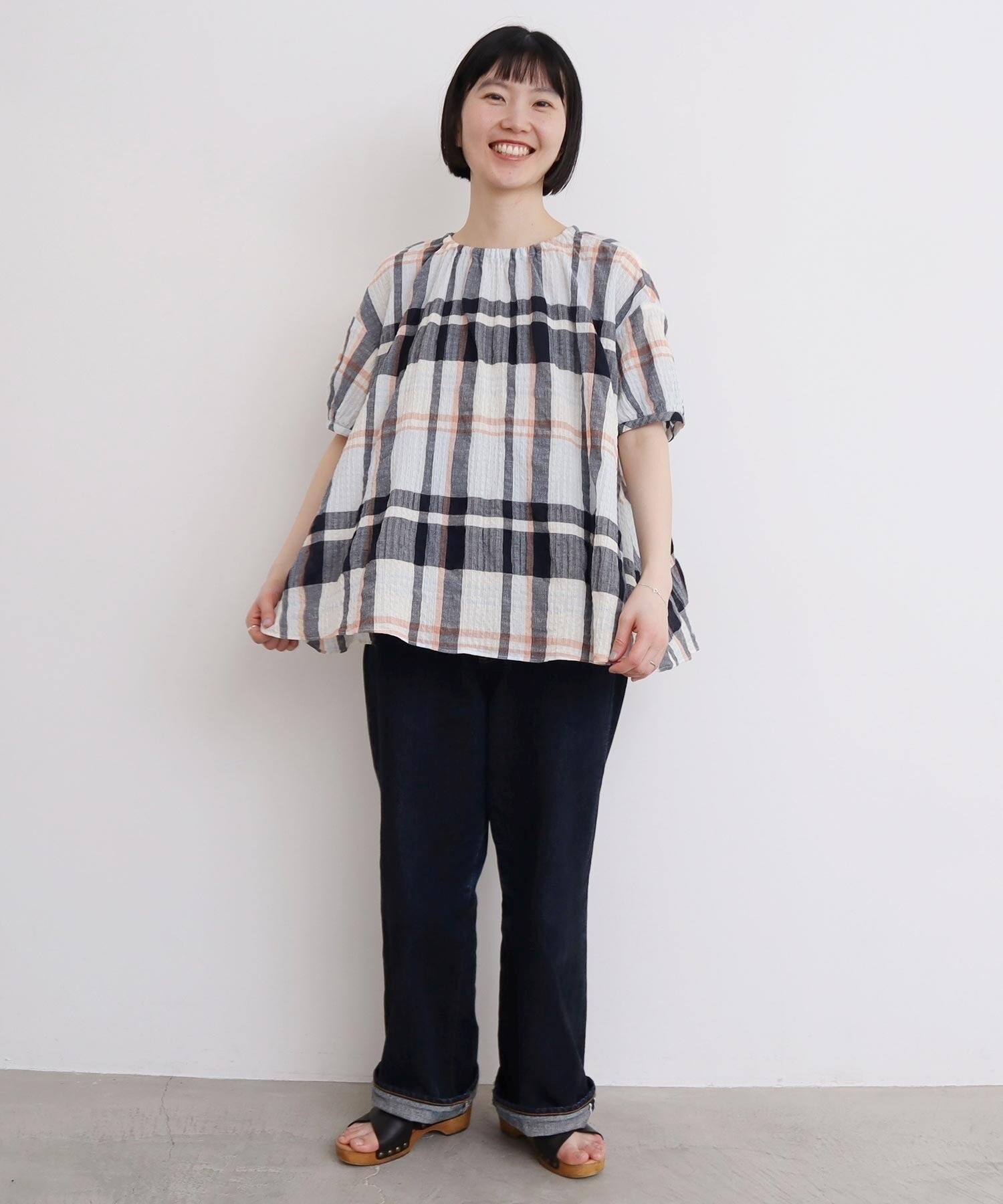 襟ぐりはゴム仕様で、すぽっと被って着られます。