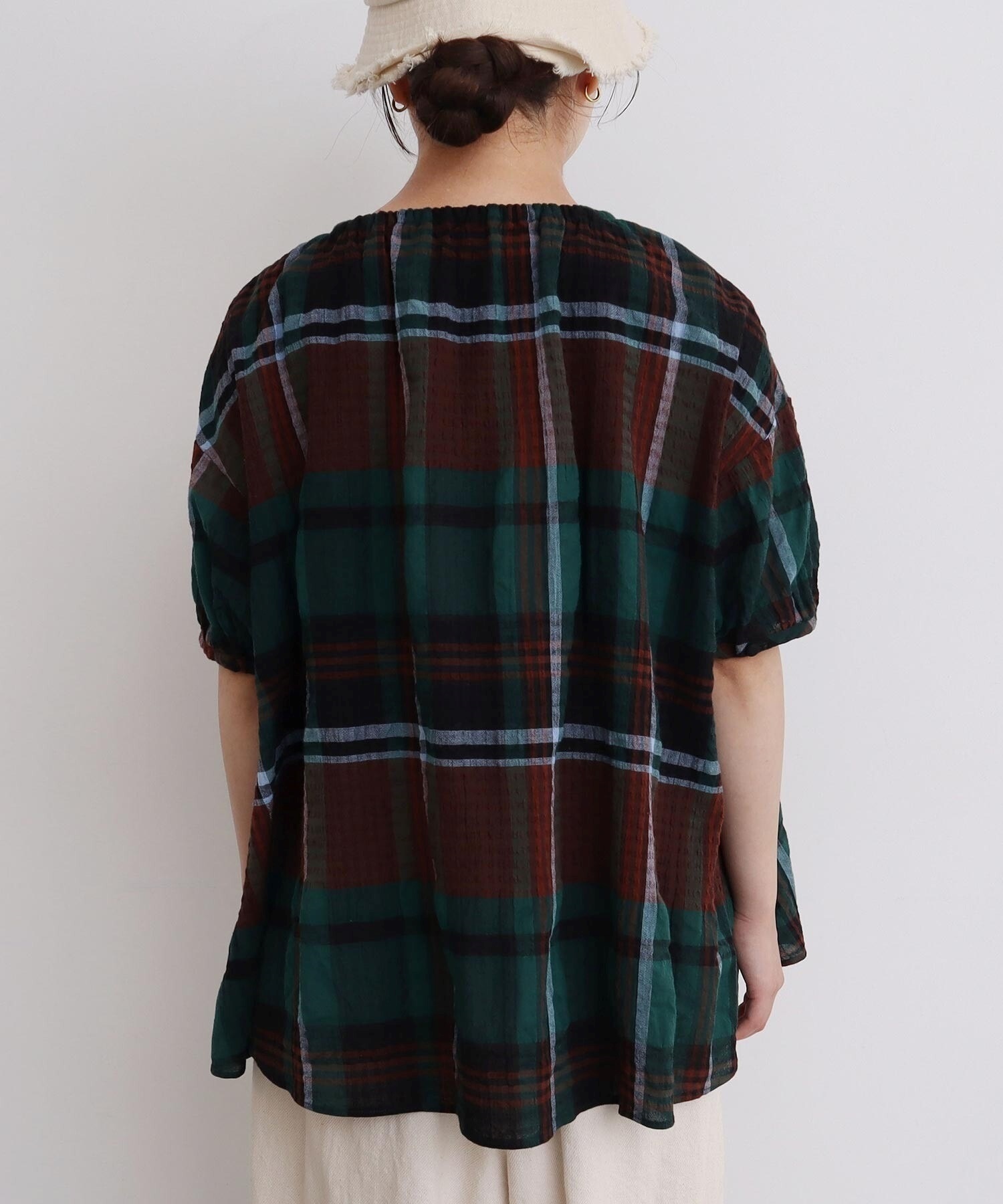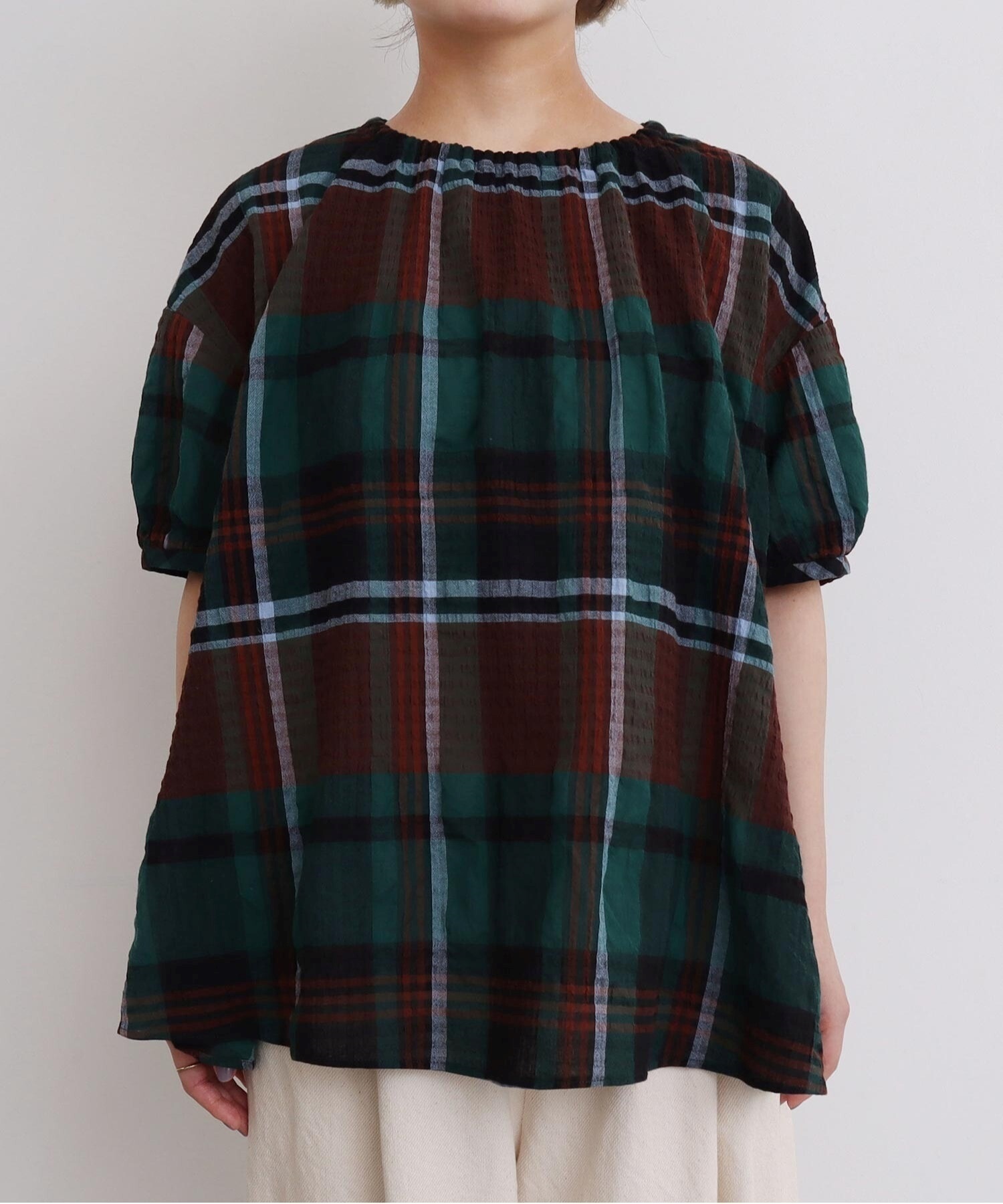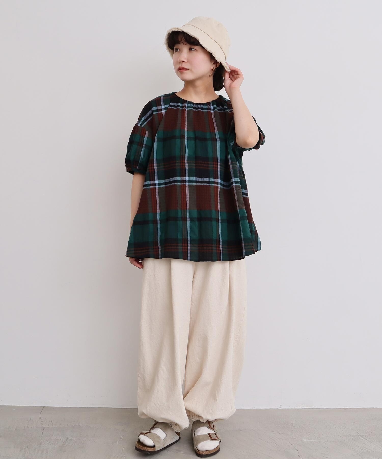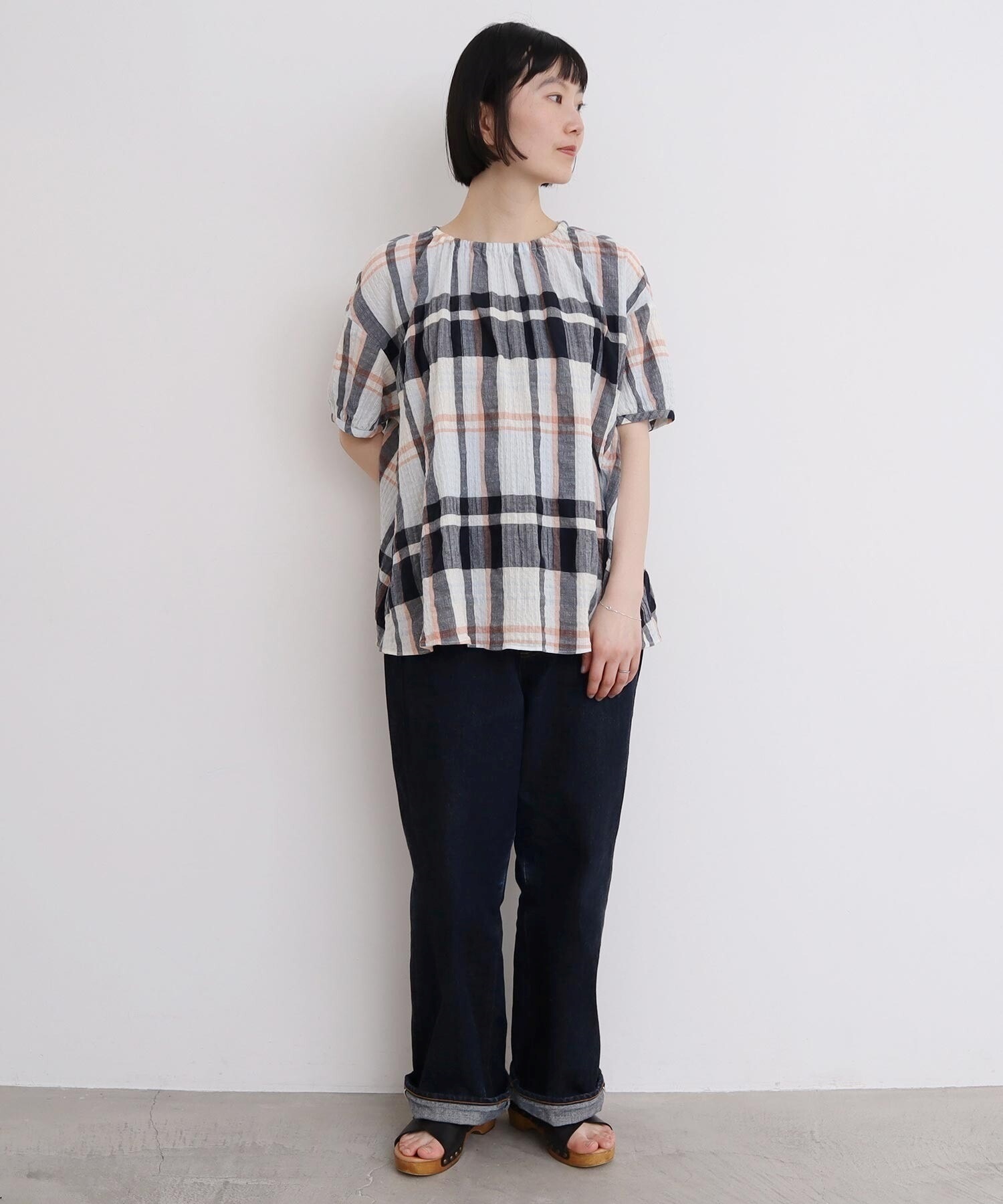 襟ぐりはゴム仕様で、すぽっと被って着られます。