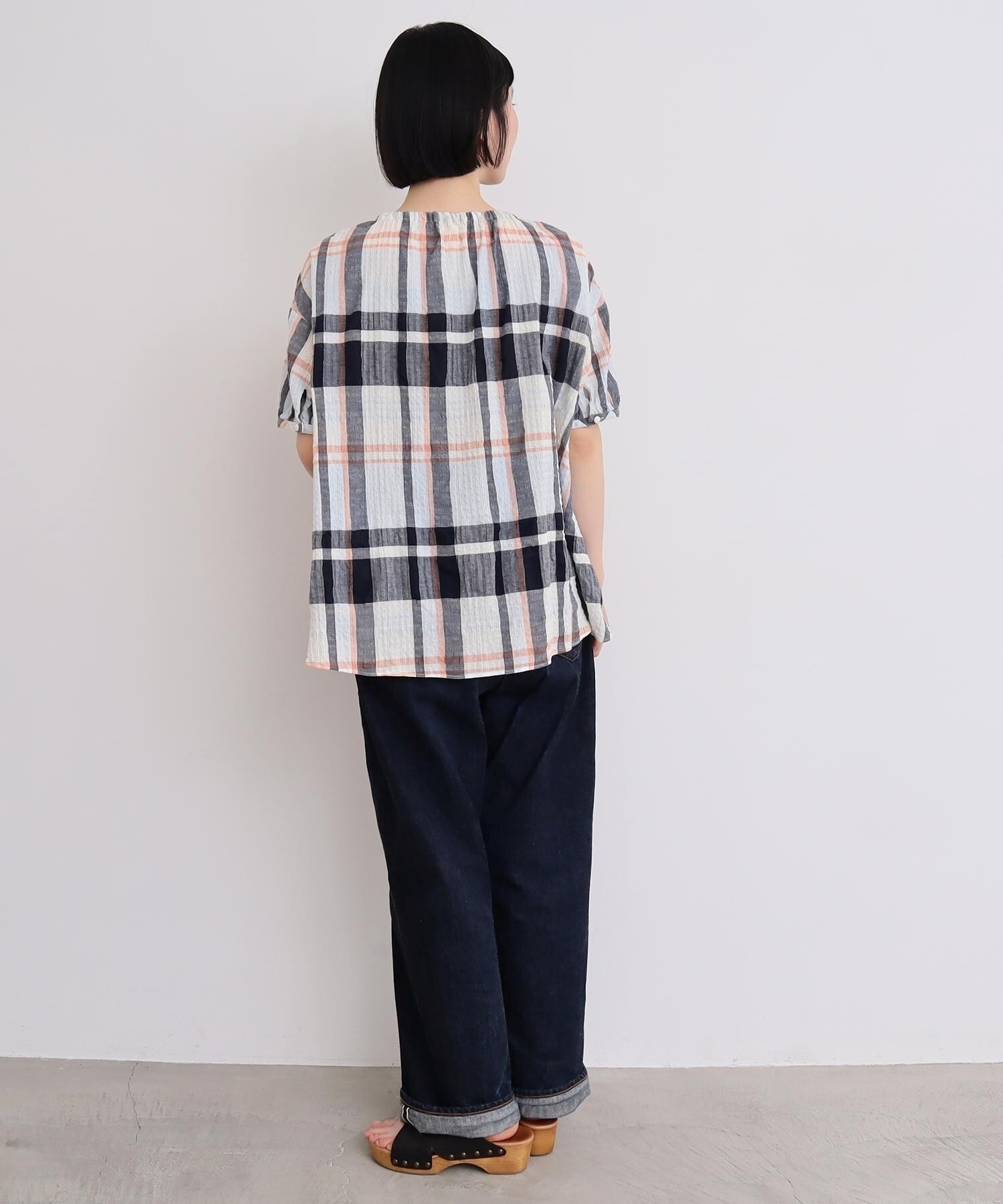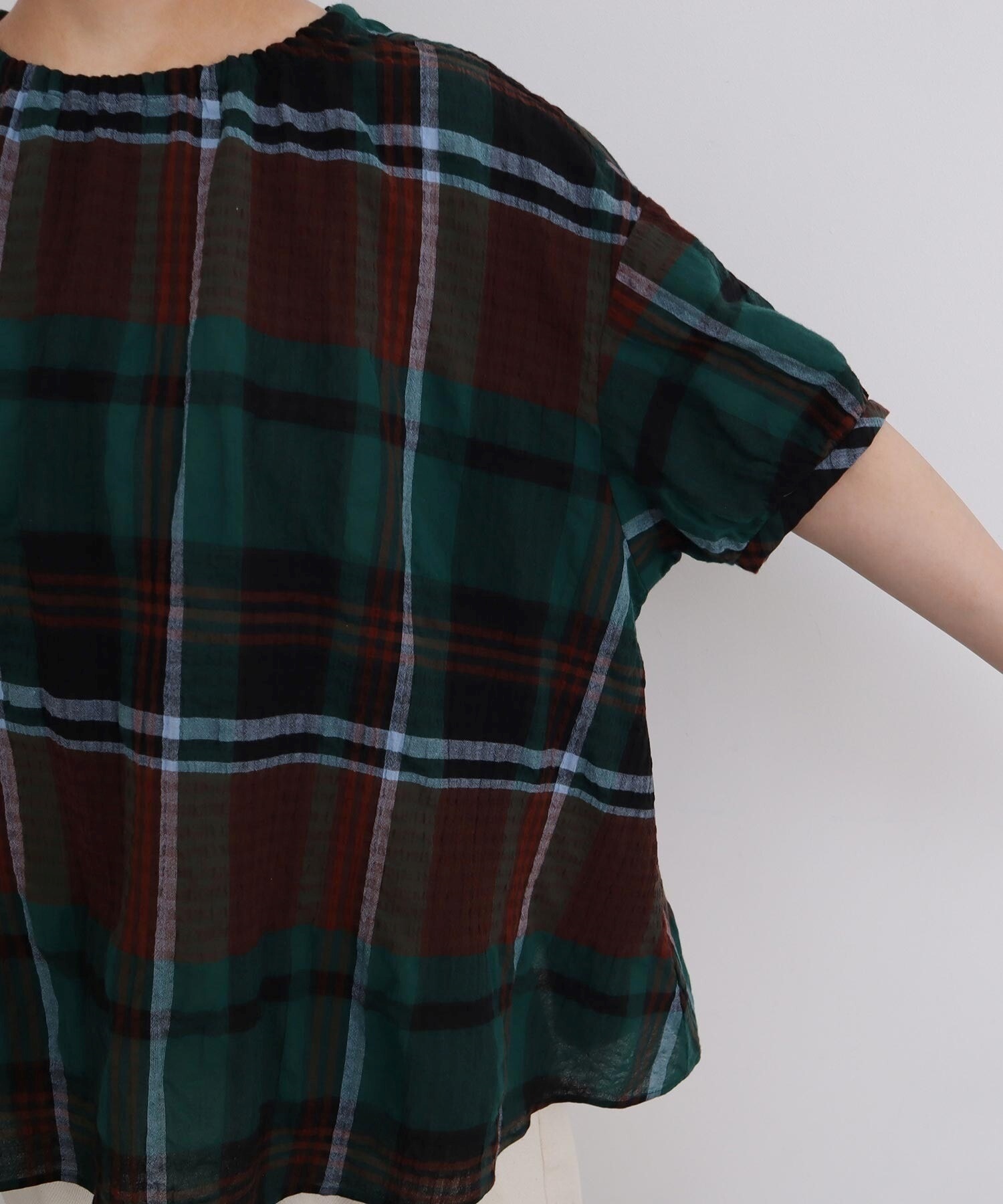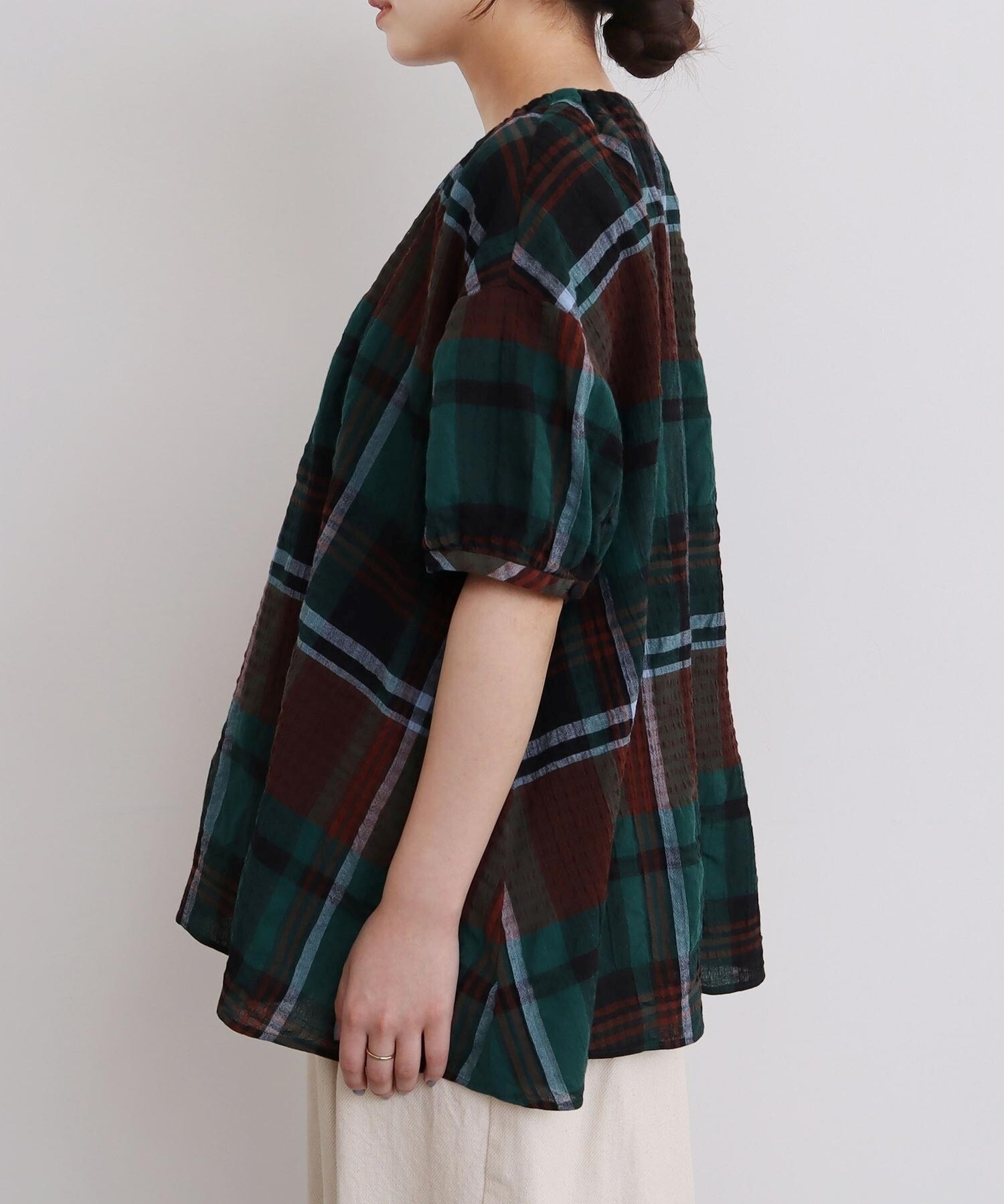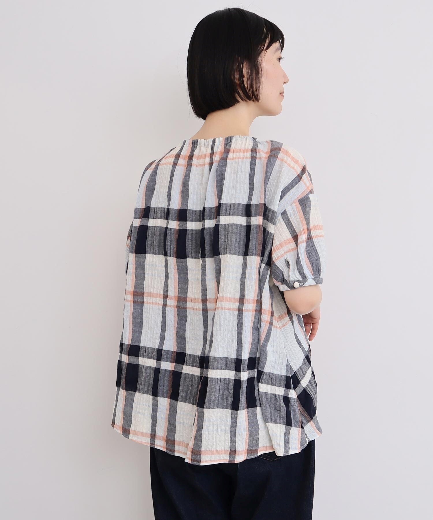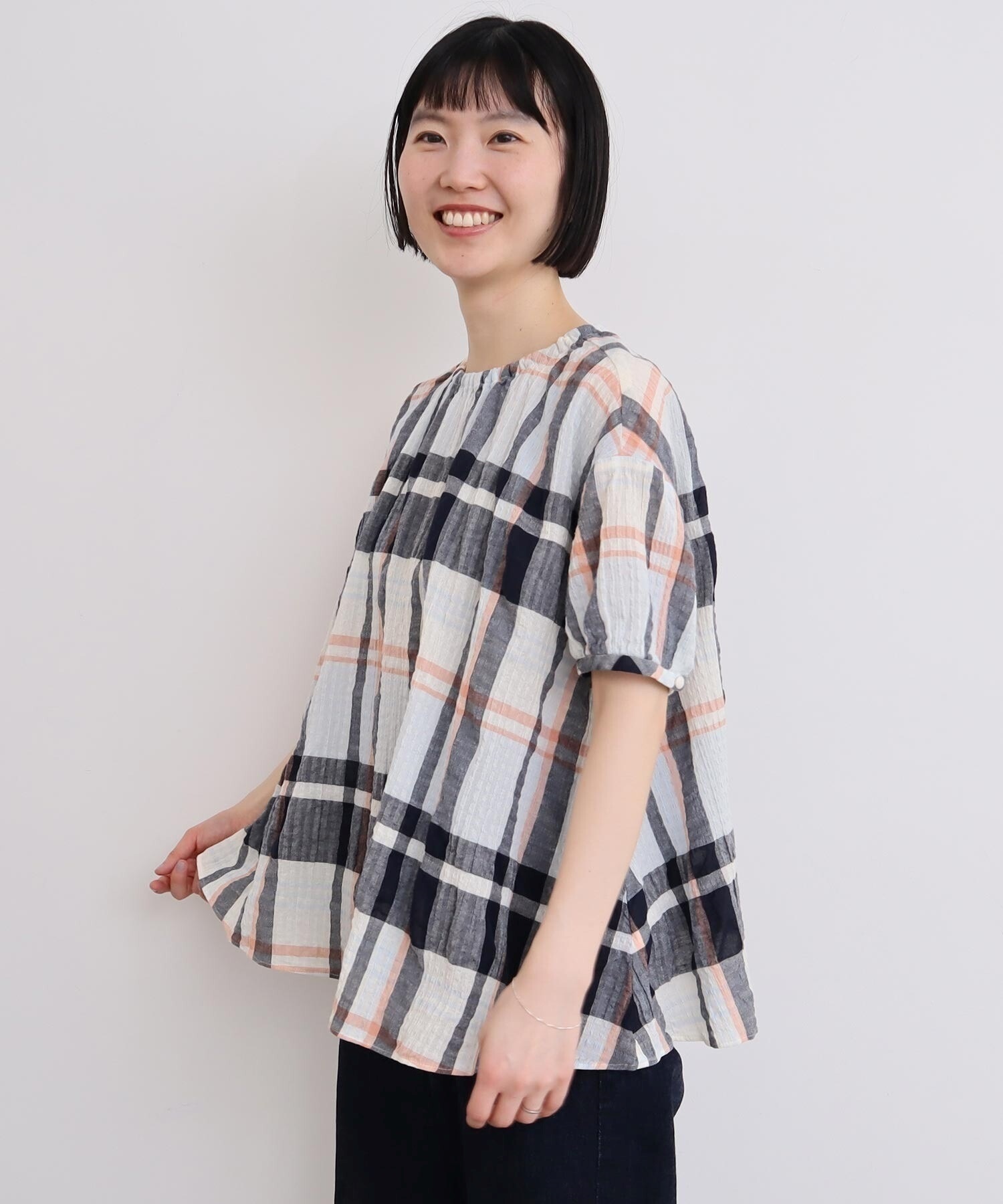 襟ぐりはゴム仕様で、すぽっと被って着られます。