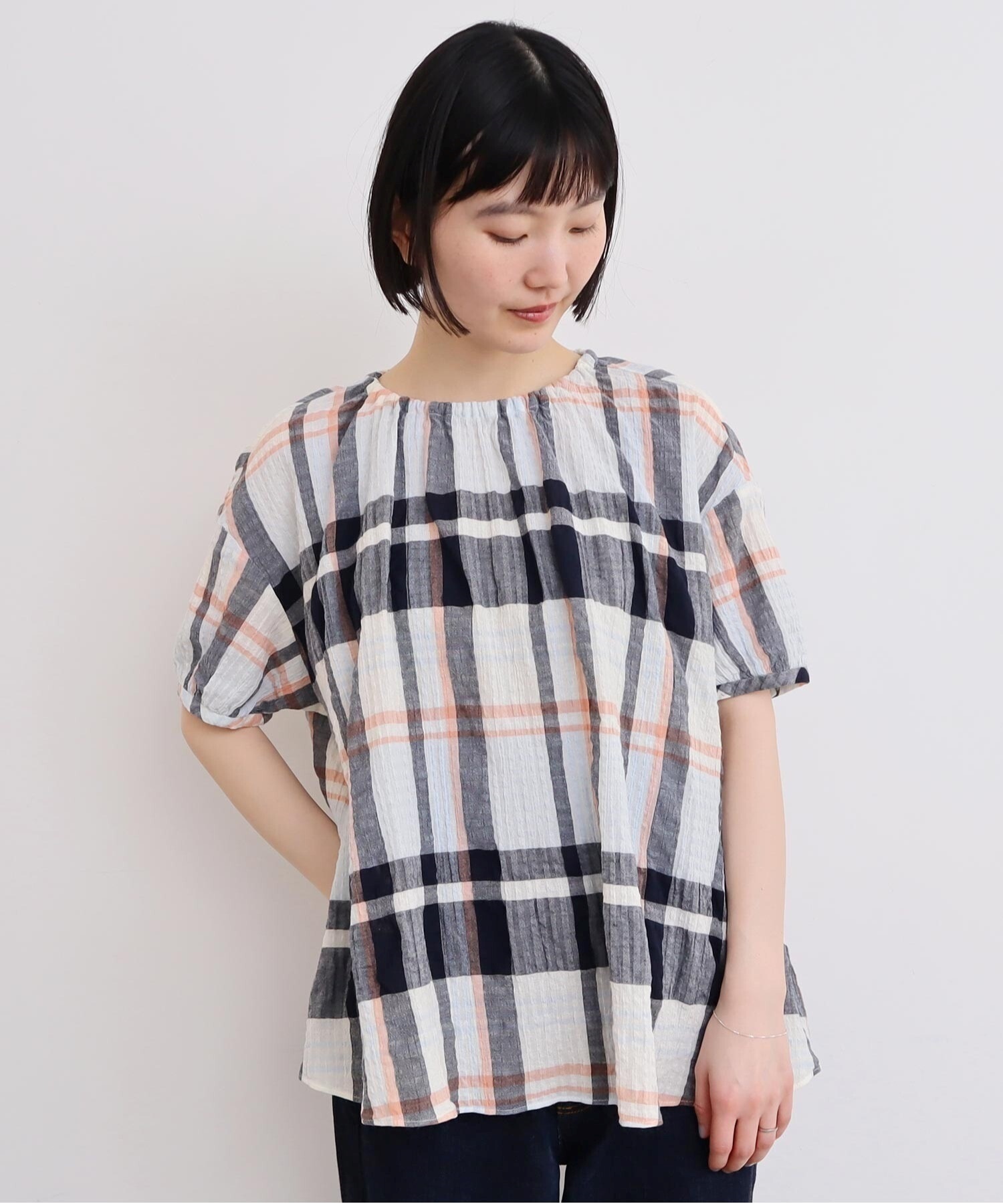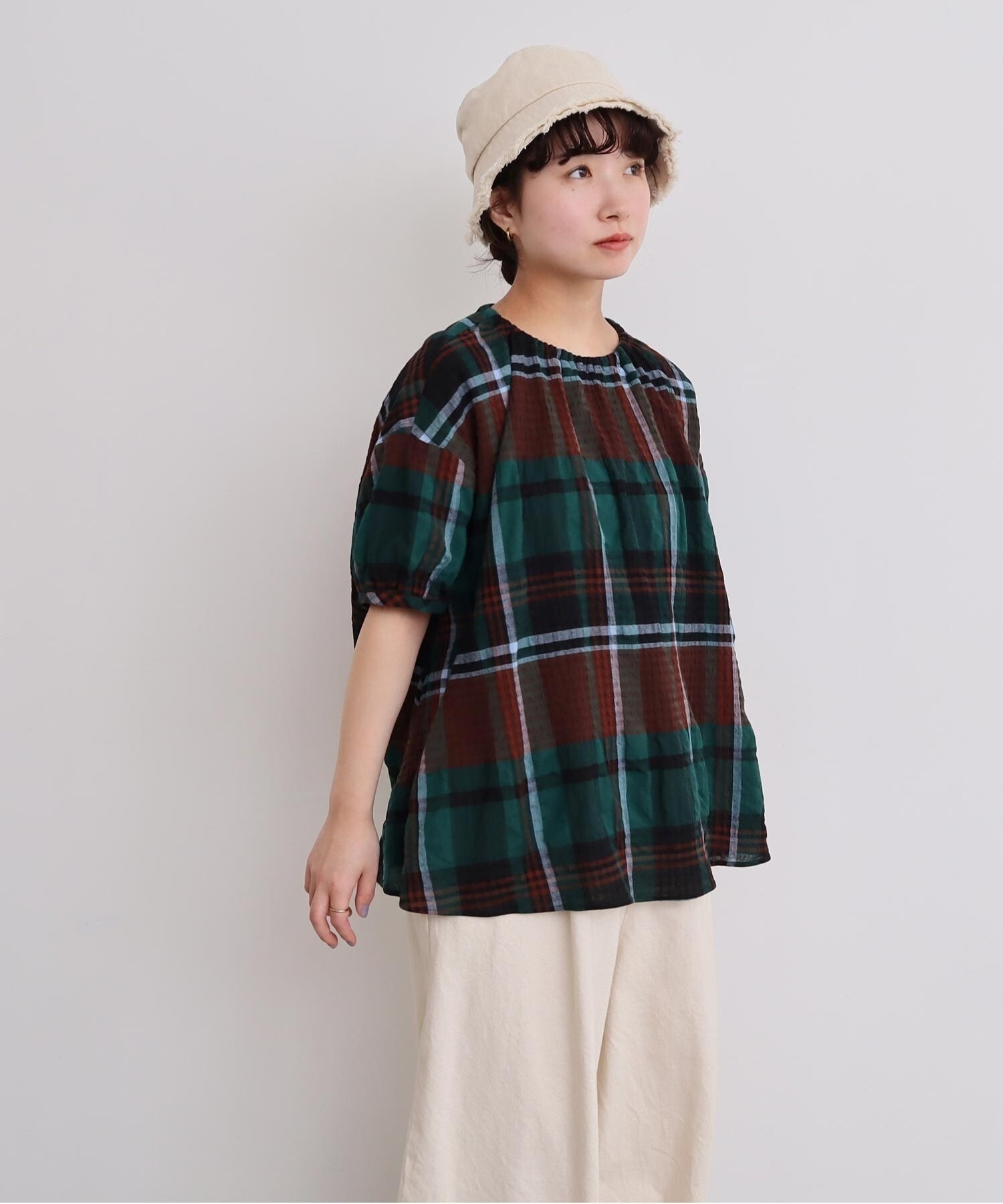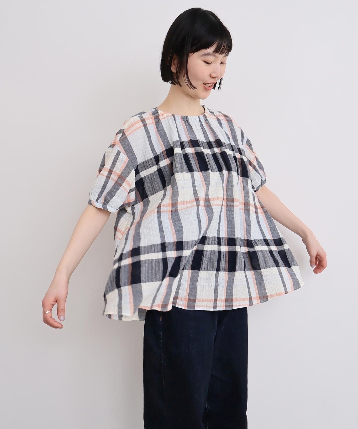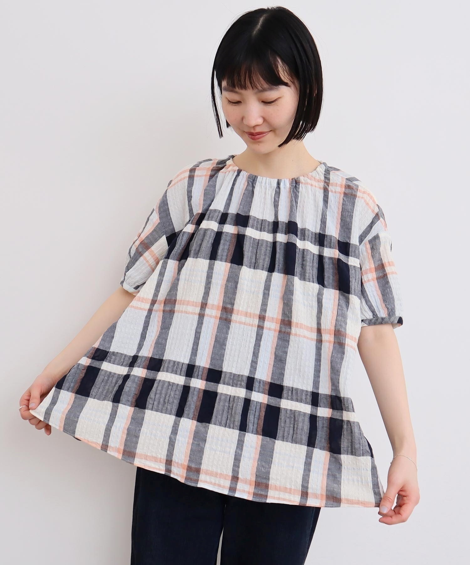 襟ぐりはゴム仕様で、すぽっと被って着られます。