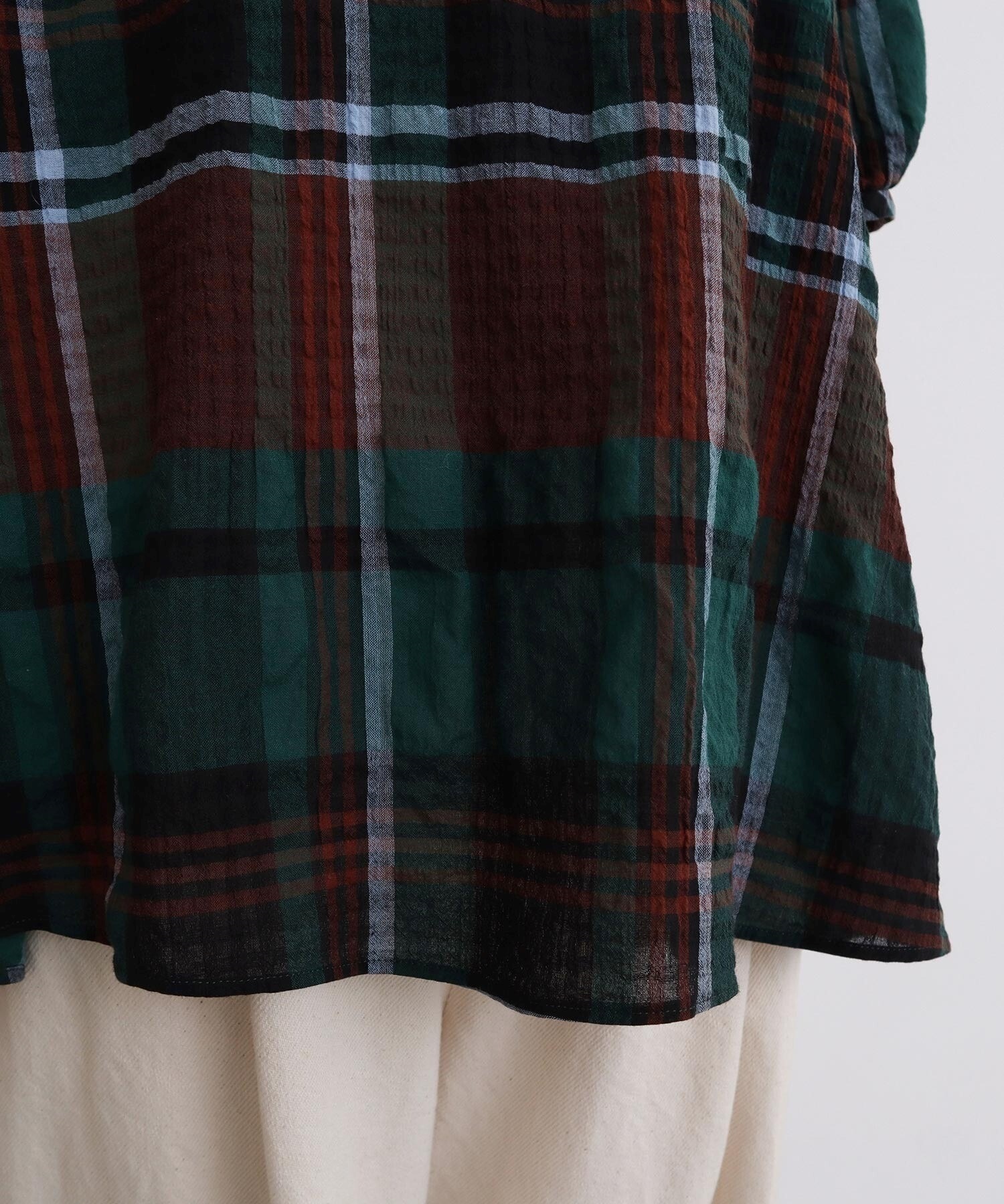 色の変わり目で凸凹が切り替わるよう設計したオリジナルの先染めチェックです。