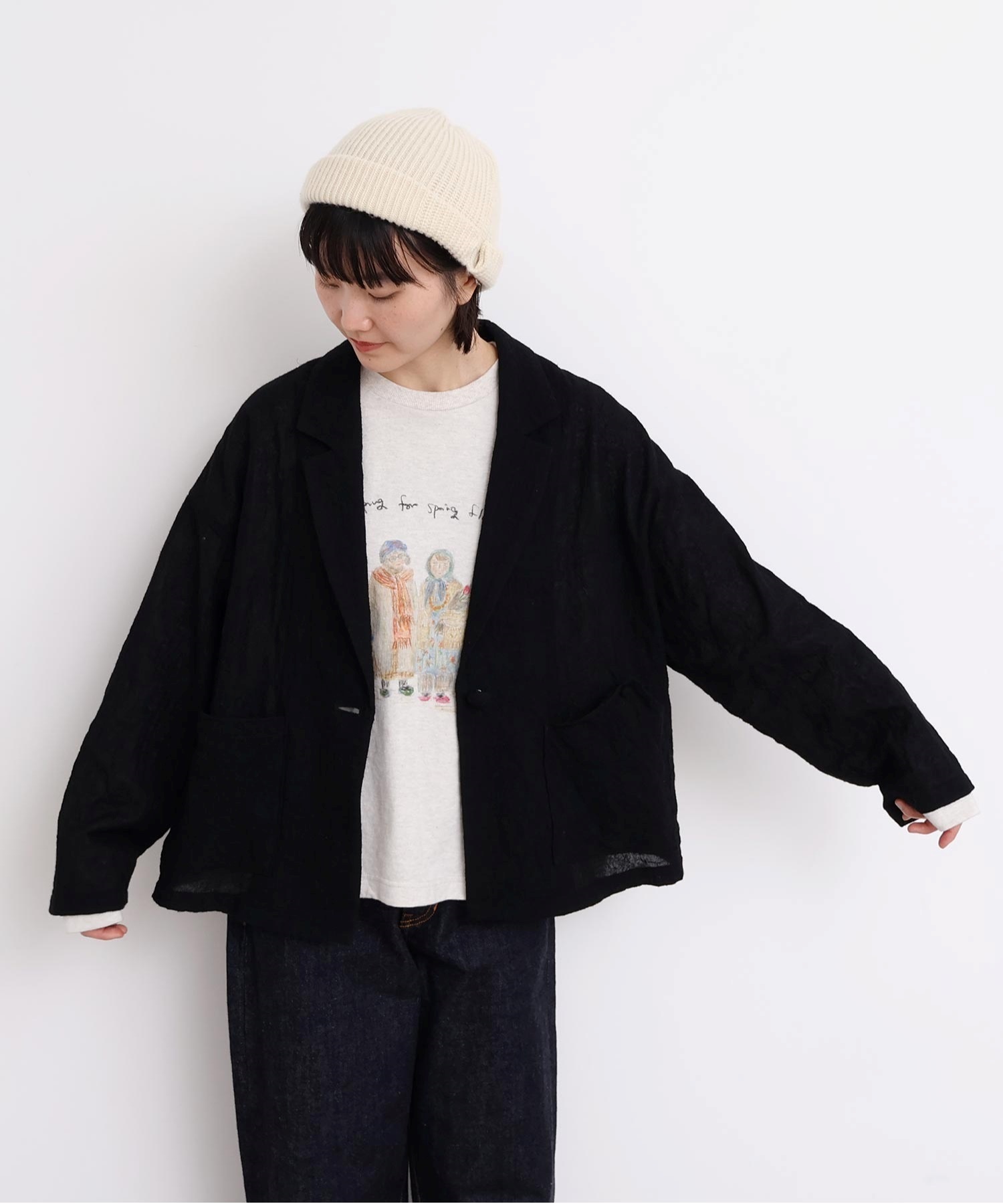 裏地なしで作ったジャケットはよりカジュアルな仕様で、