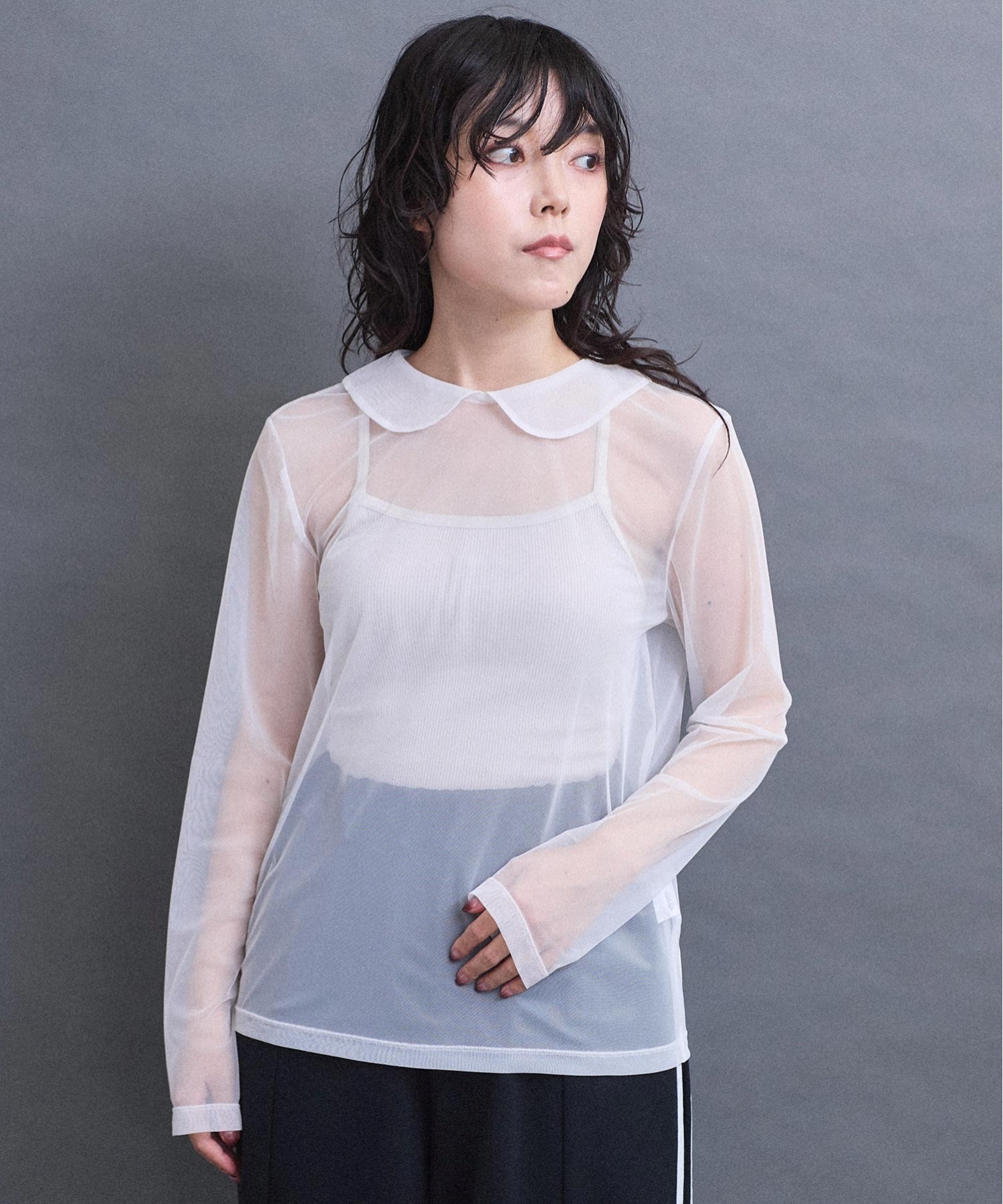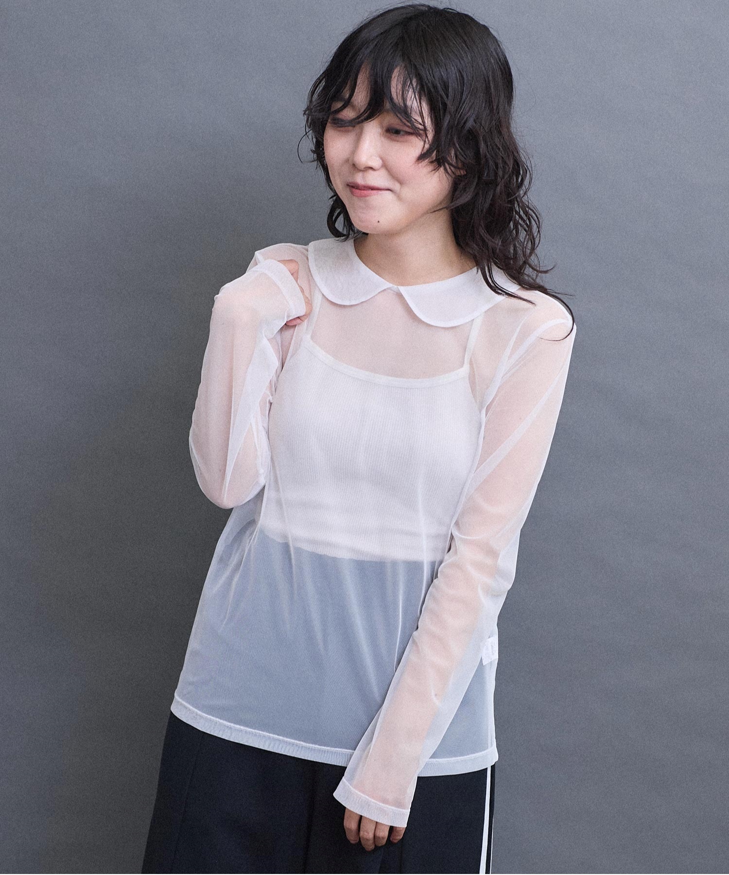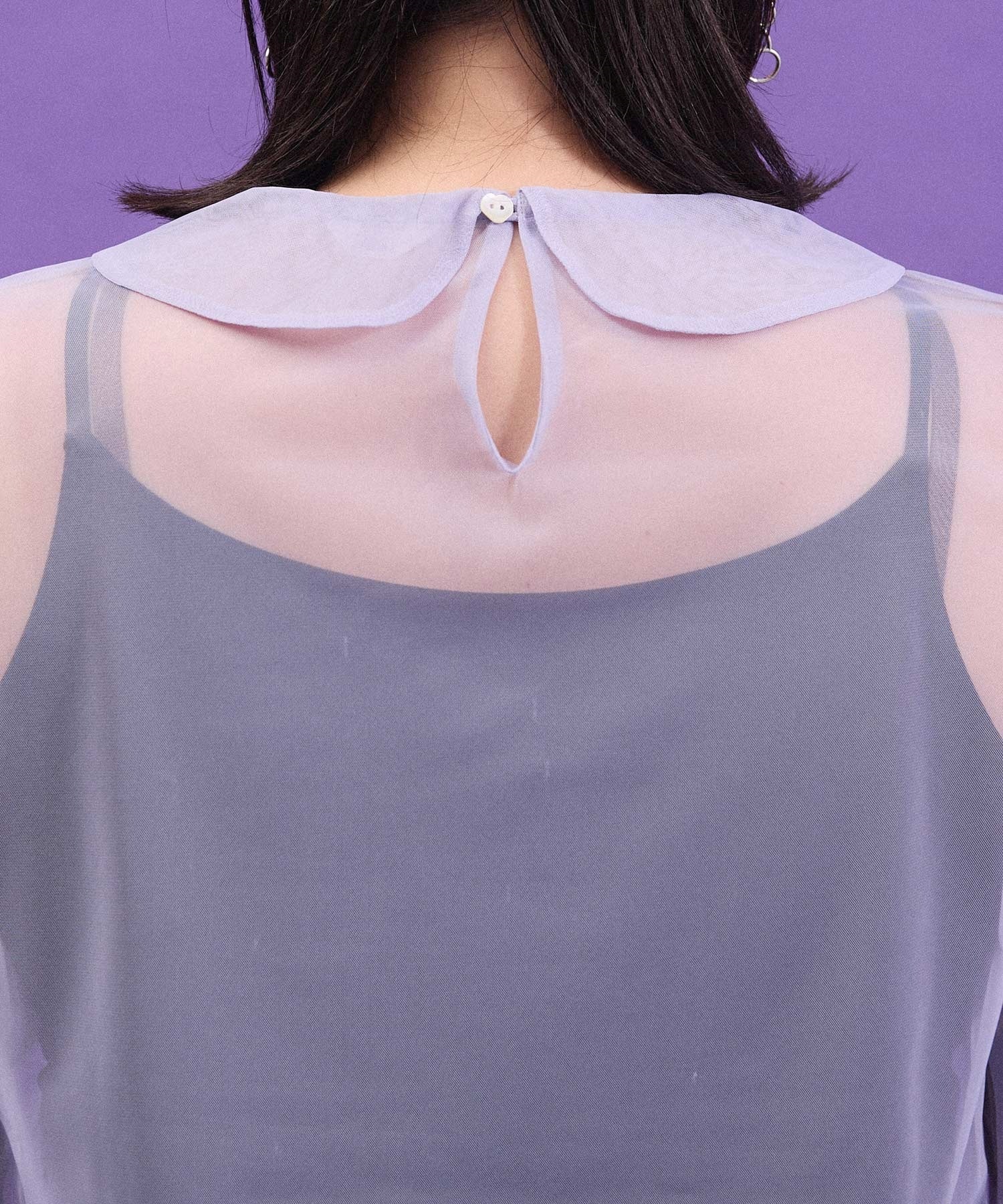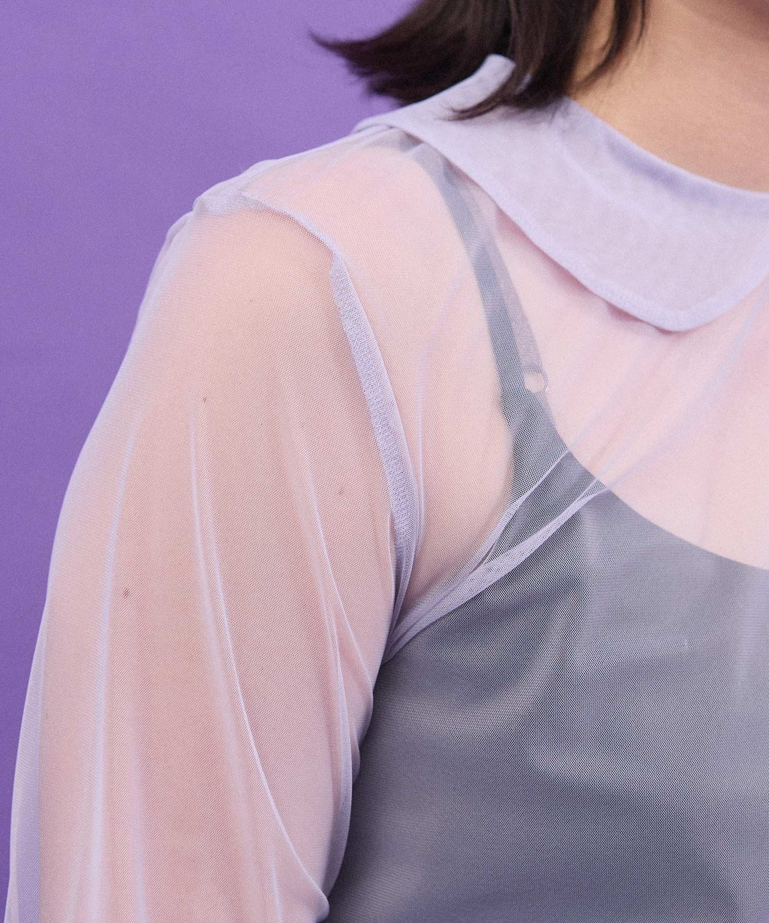 丸衿のチュールプルオーバー。
