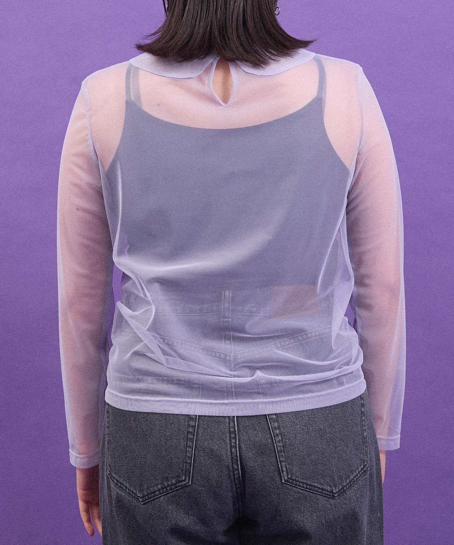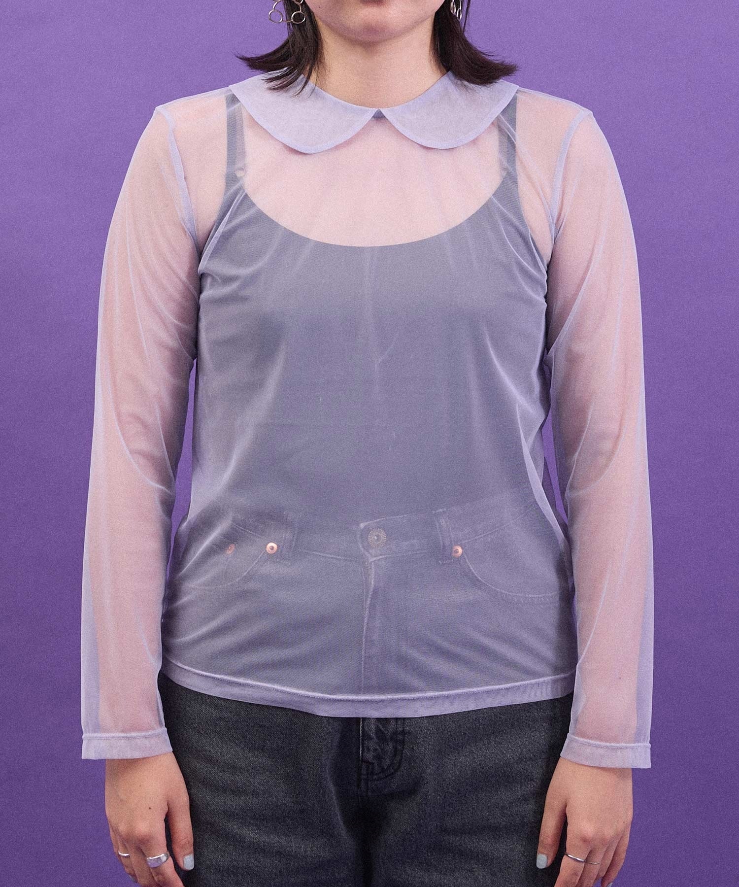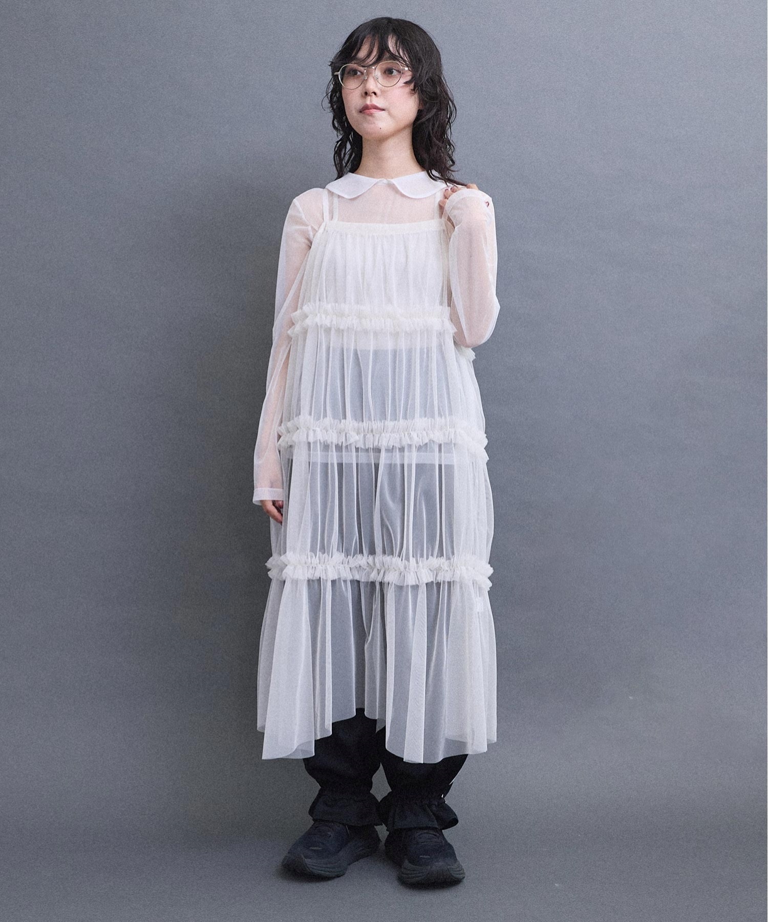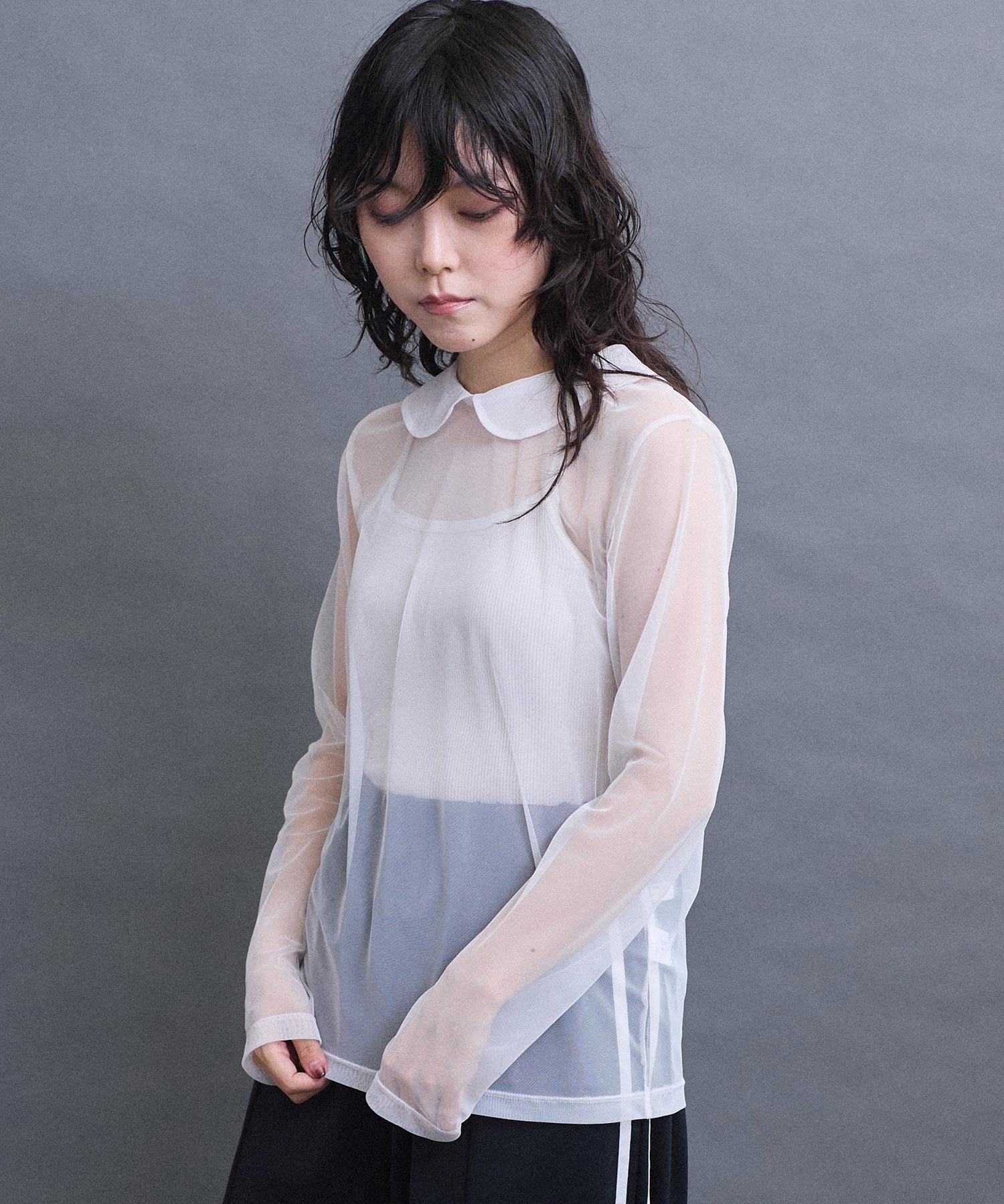 丸衿のチュールプルオーバー。