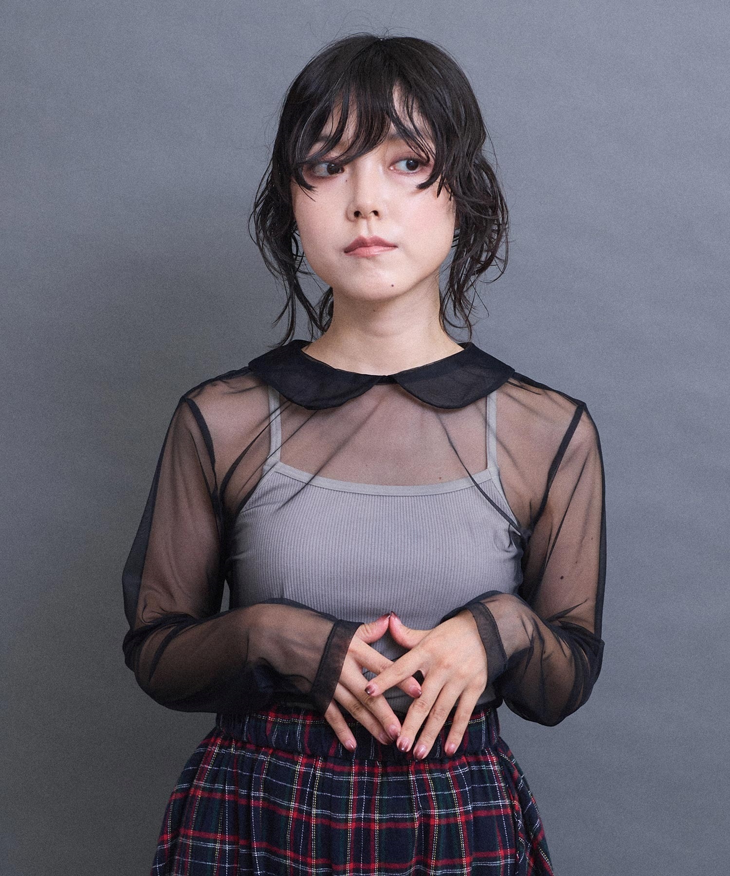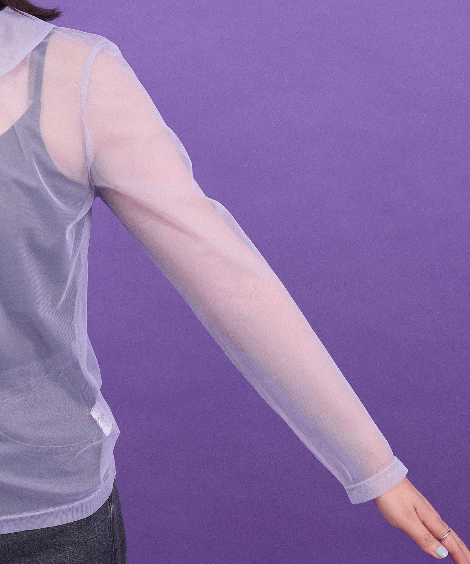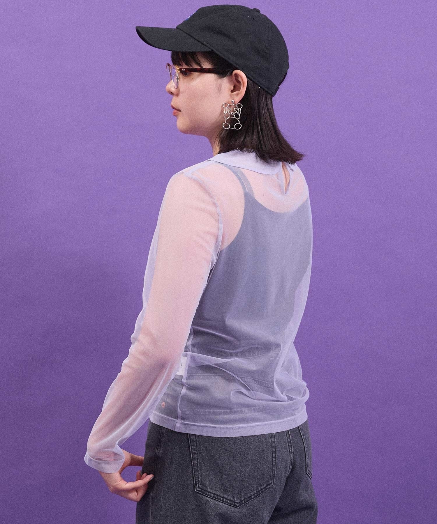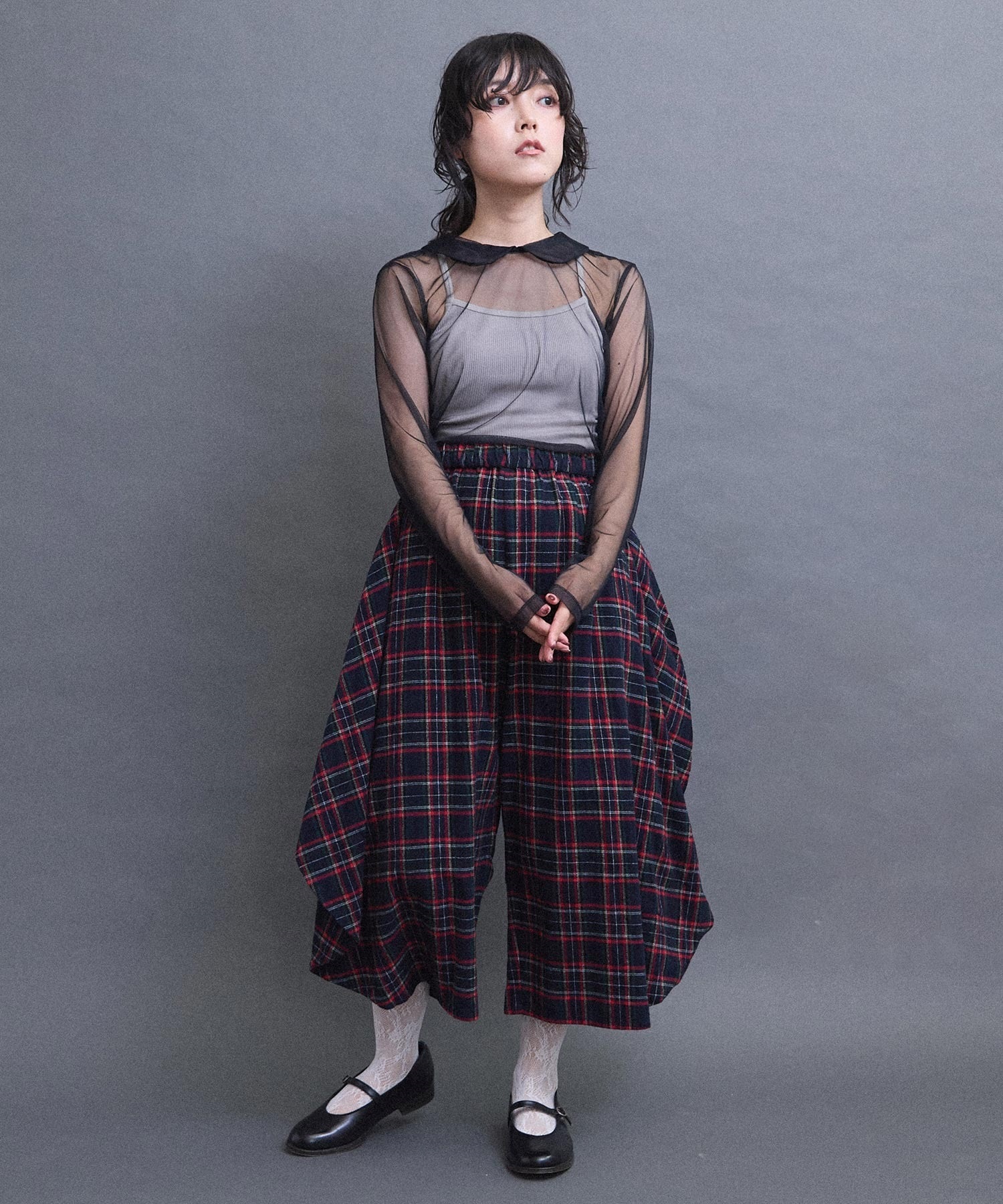 丸衿のチュールプルオーバー。